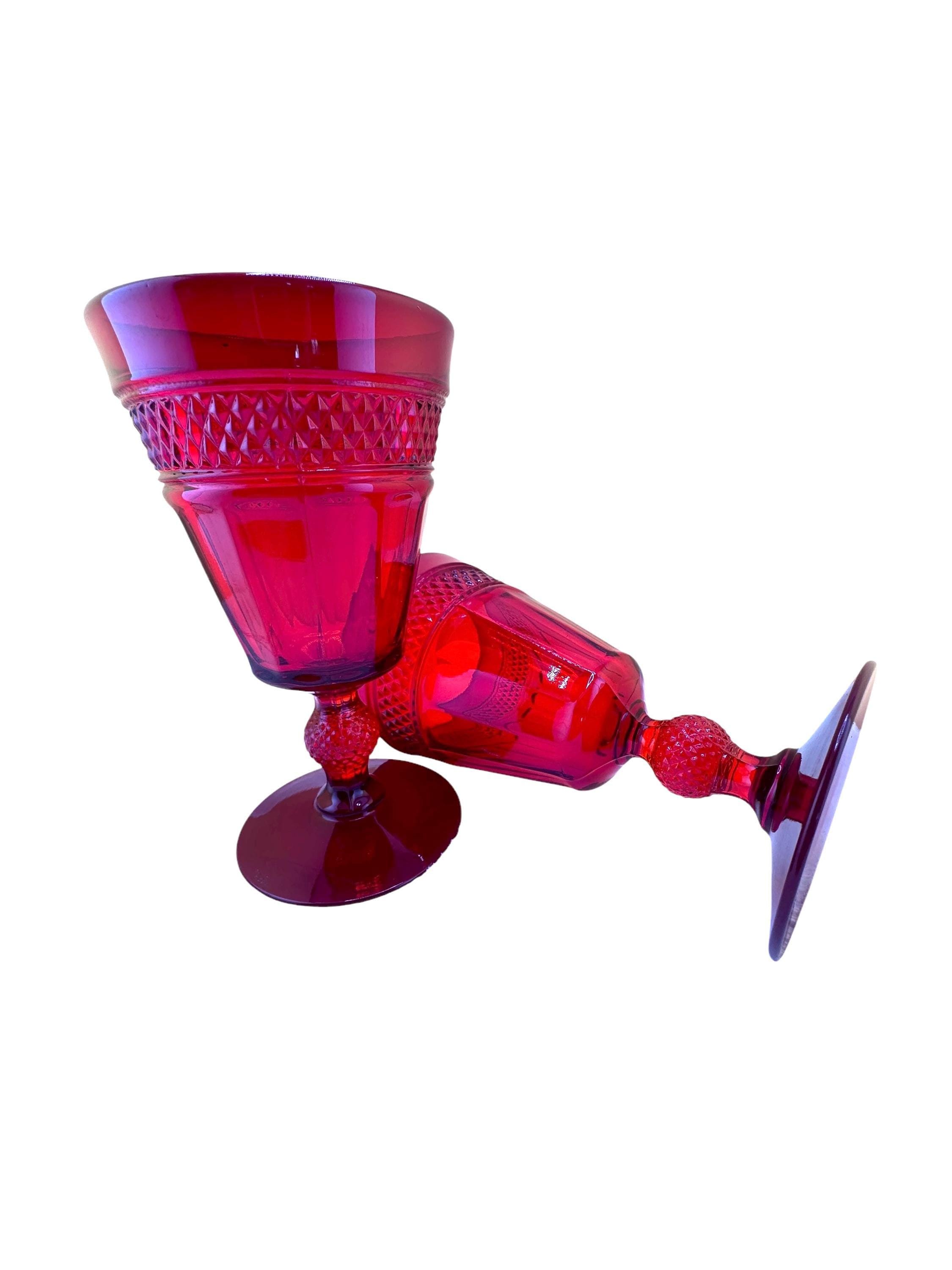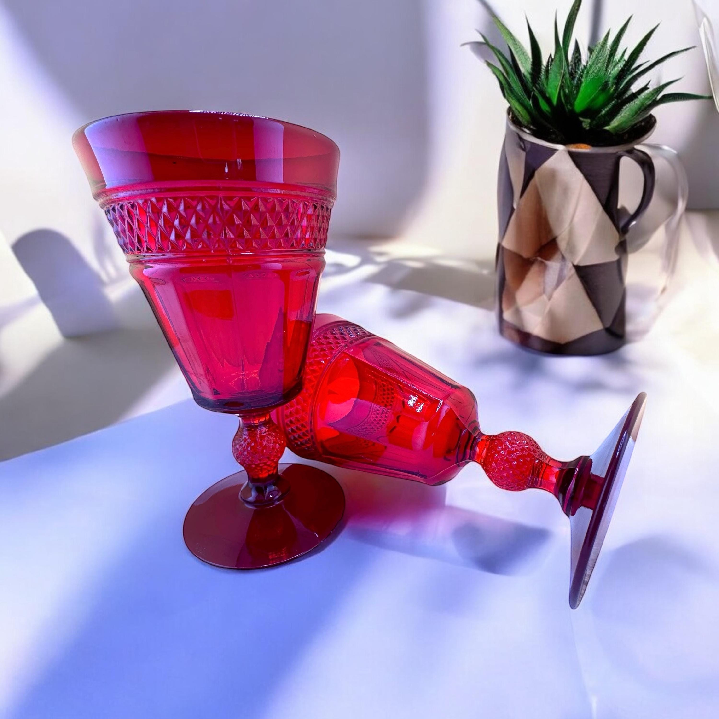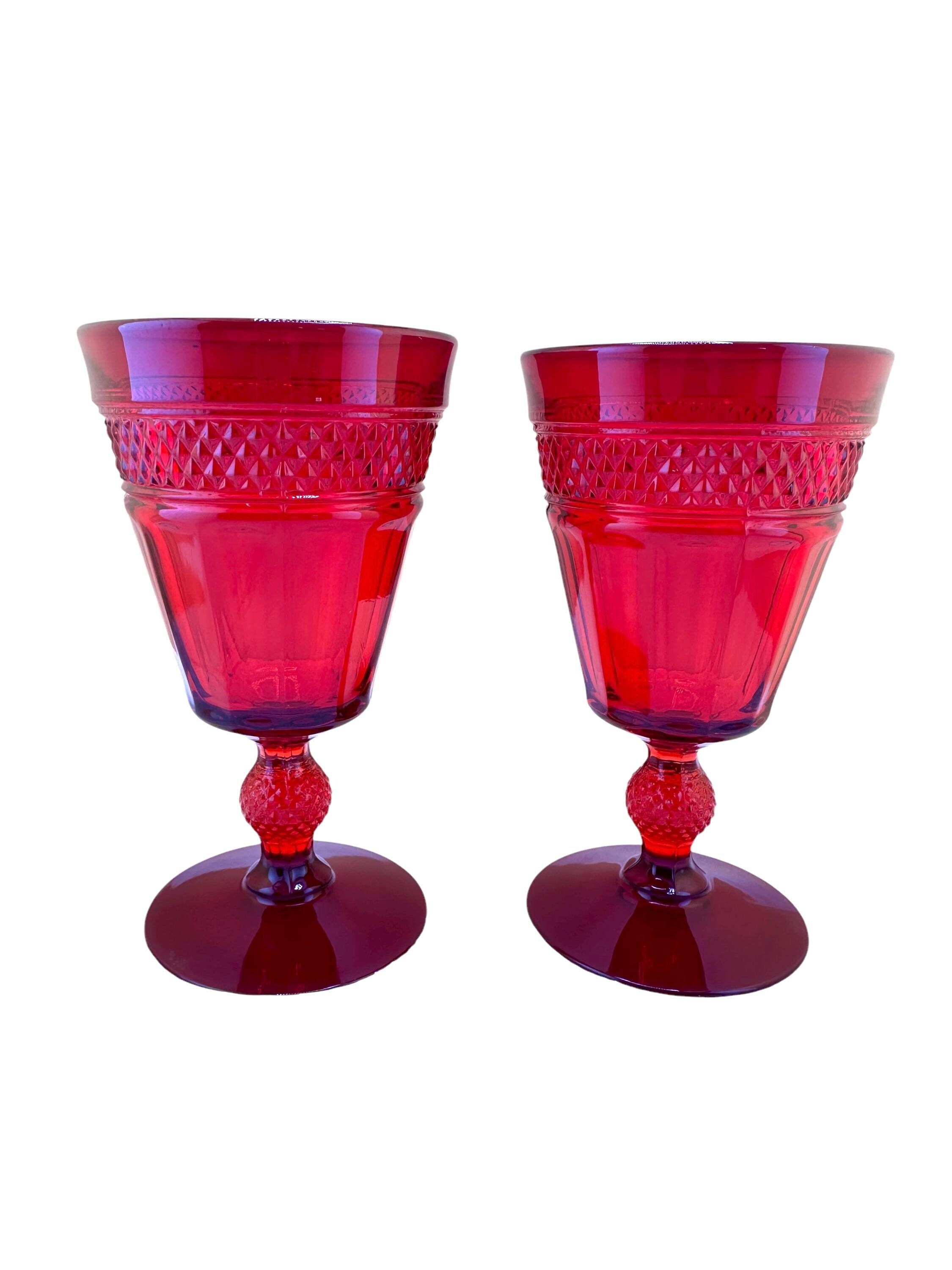 This is for a set of two luxurious Viking Mt Vernon Red Stemmed Water Goblets.