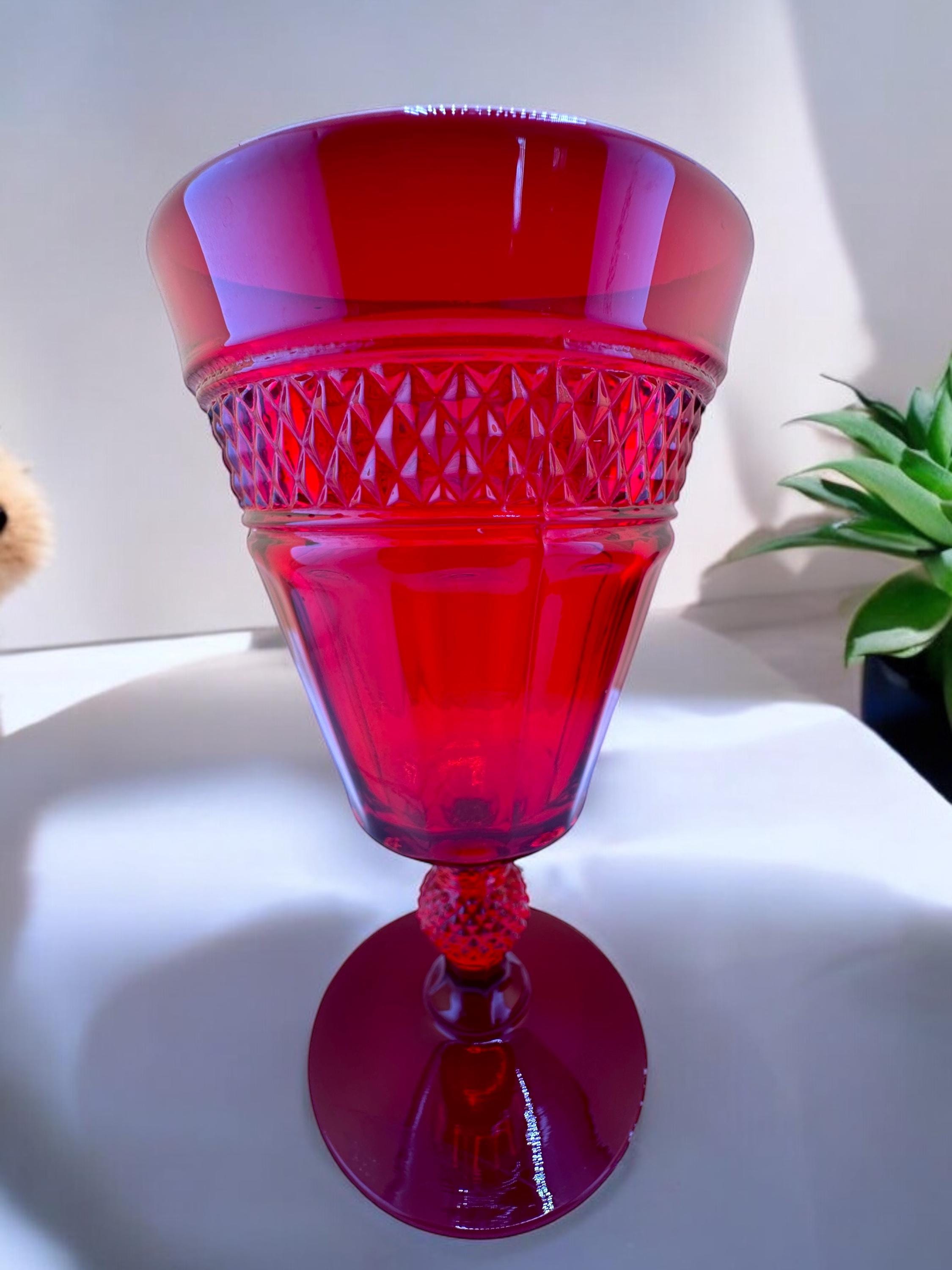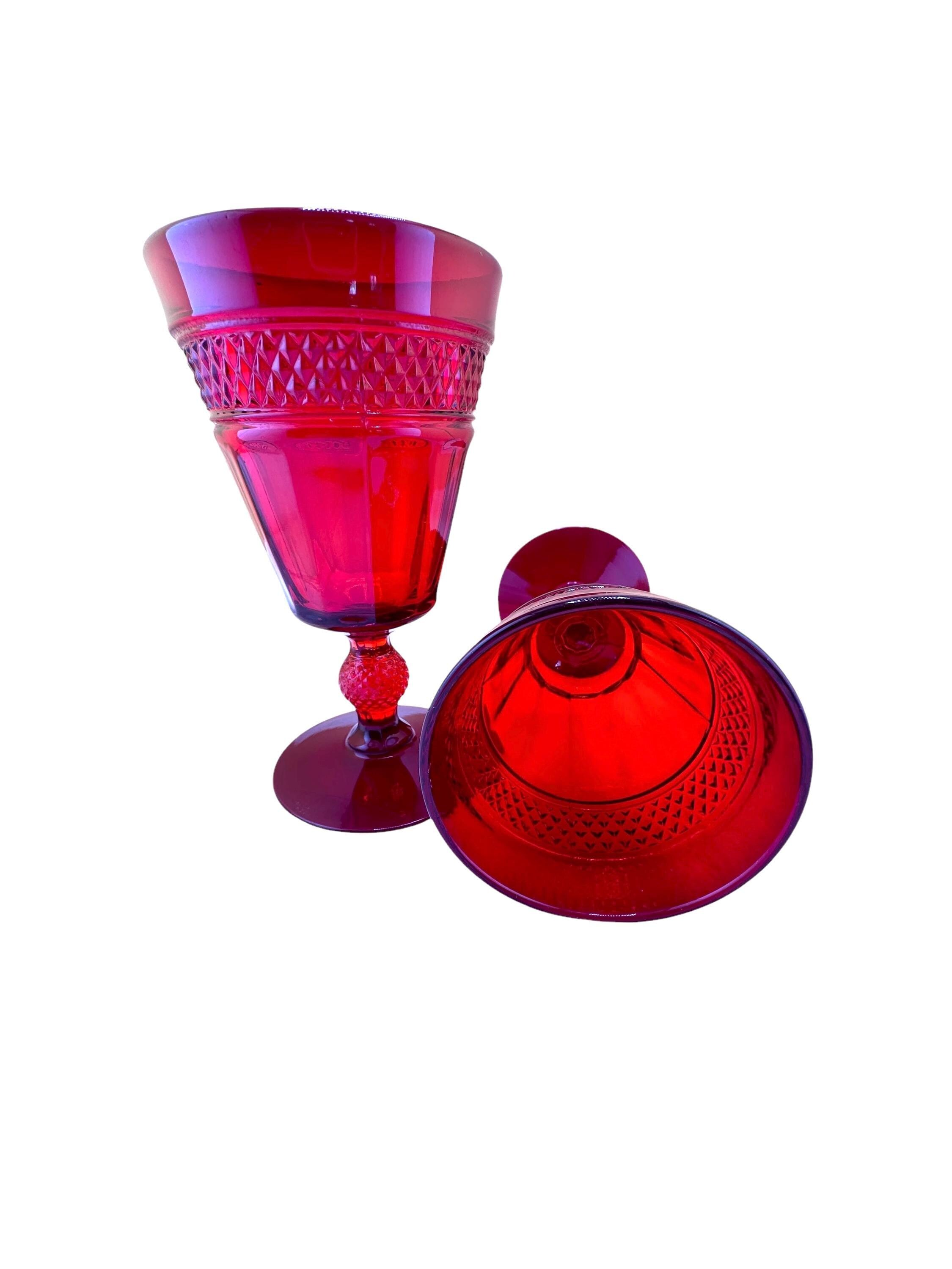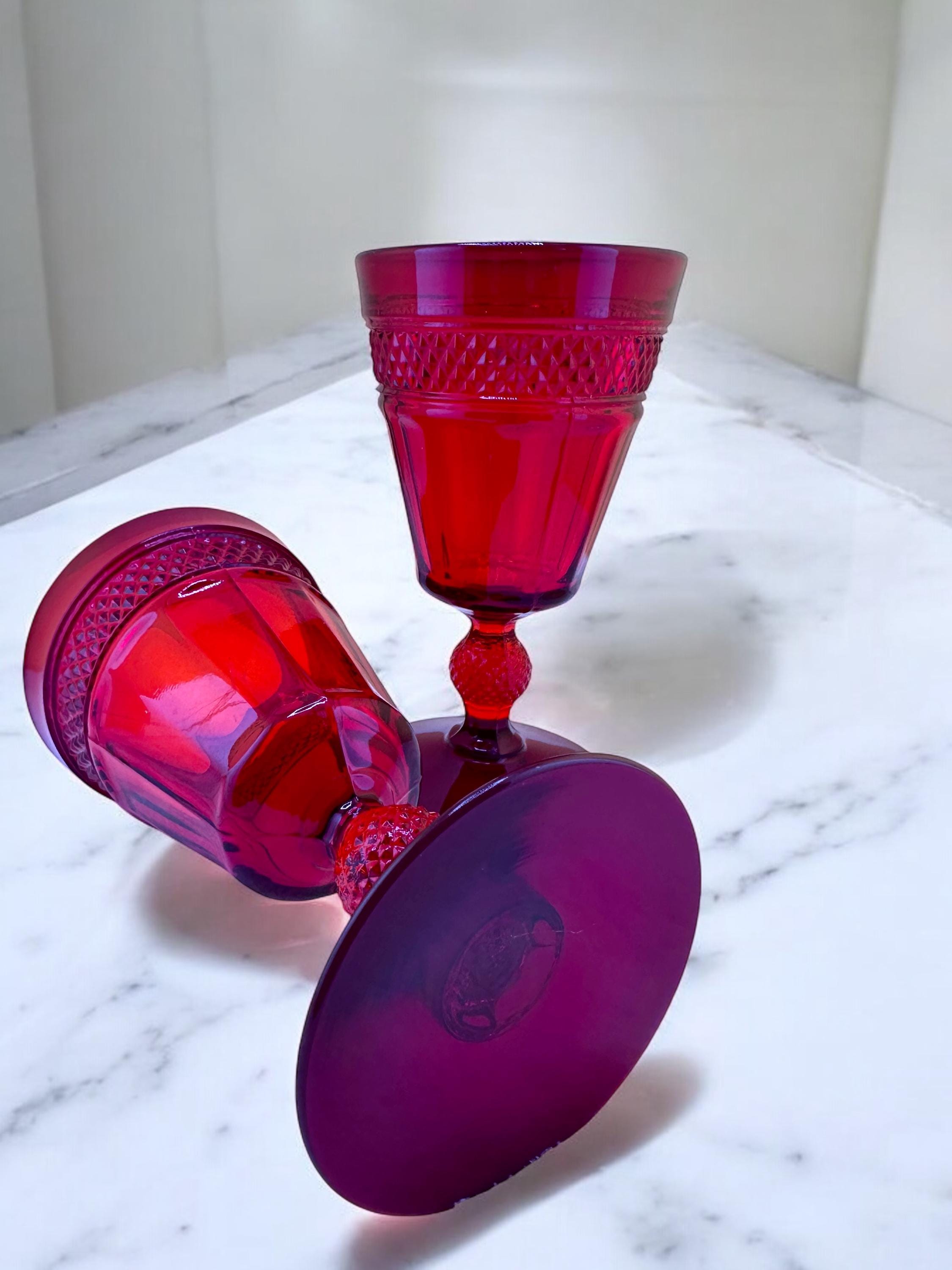 This is for a set of two luxurious Viking Mt Vernon Red Stemmed Water Goblets.