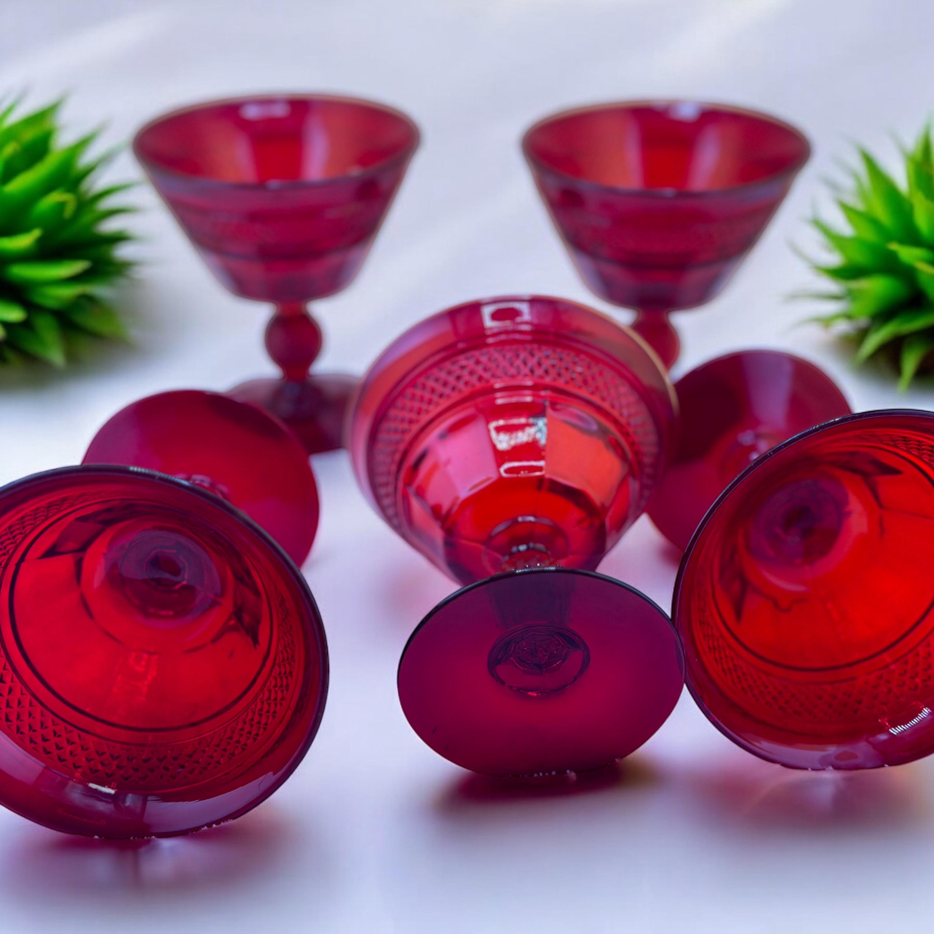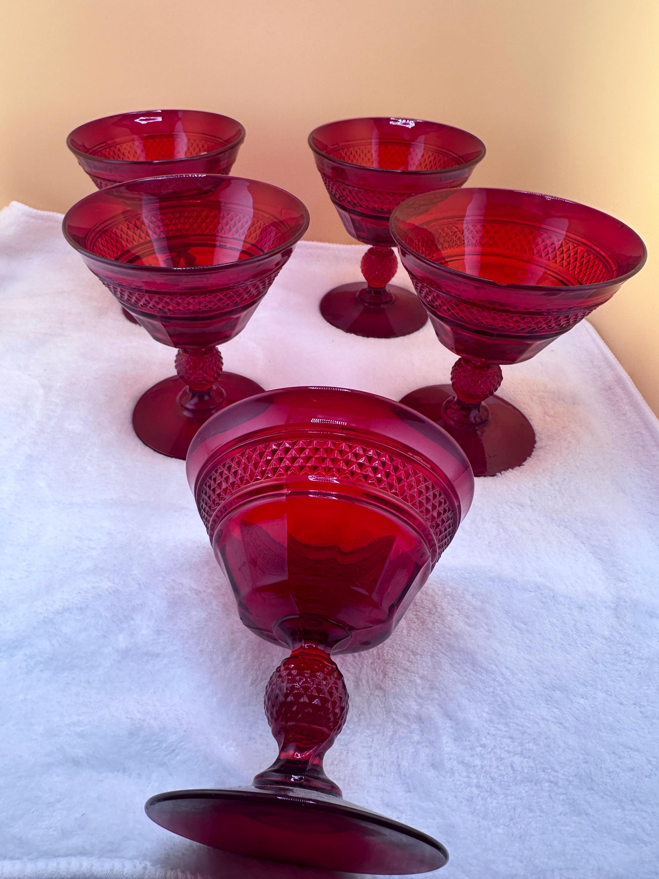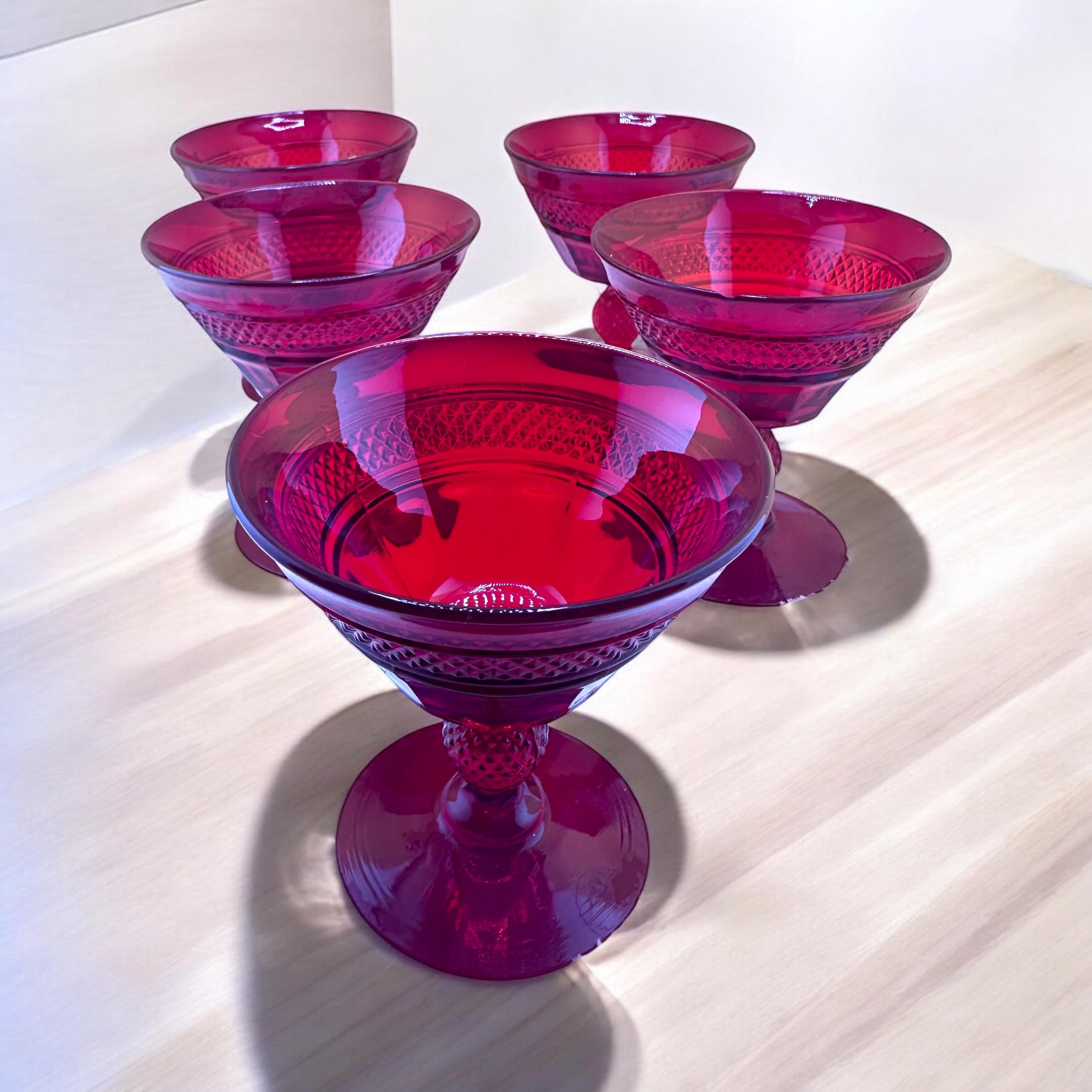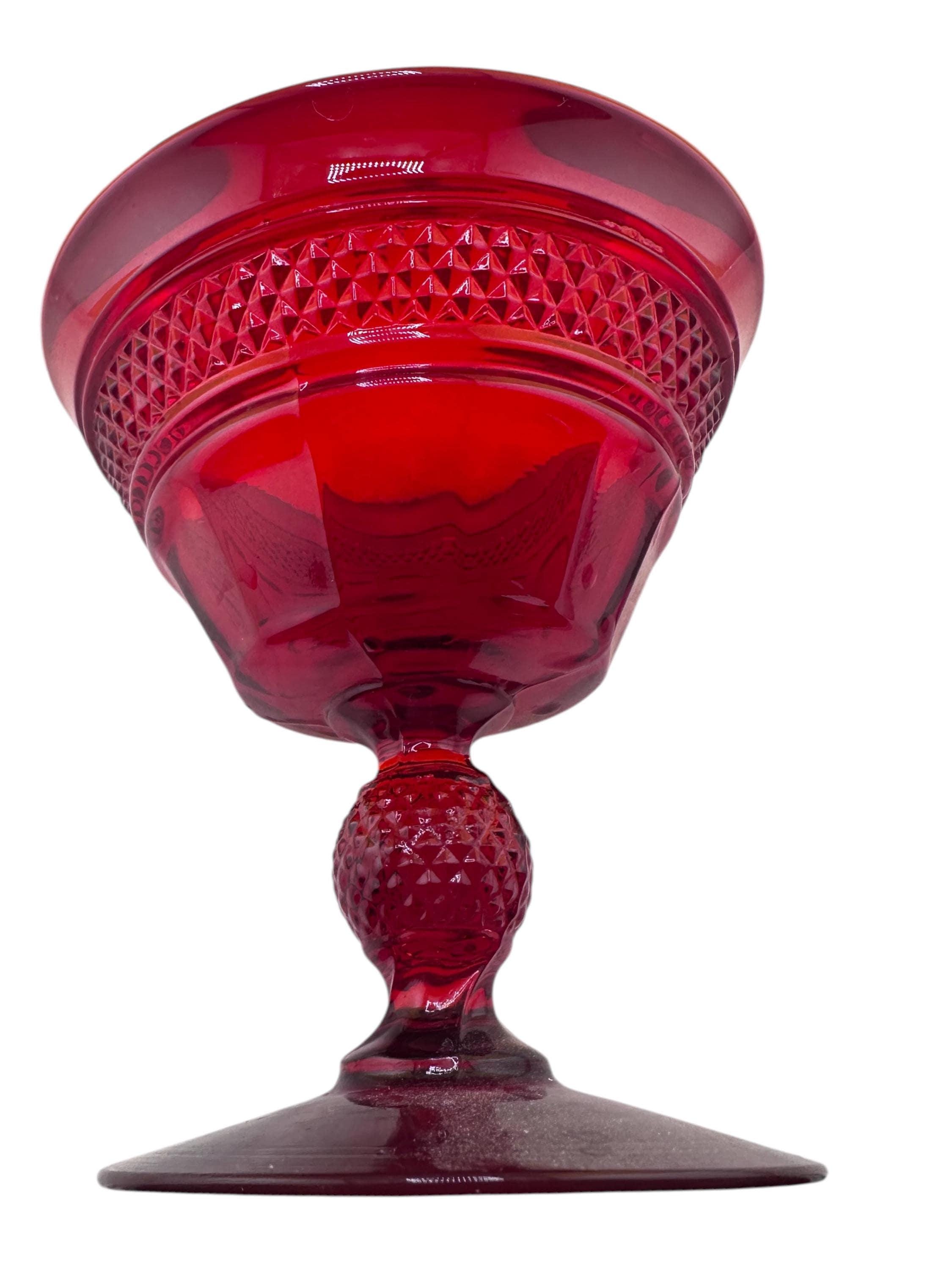 Viking Mt Vernon Red Champagne Goblets: Elegant Cross Hatch Stem, Vintage Glass