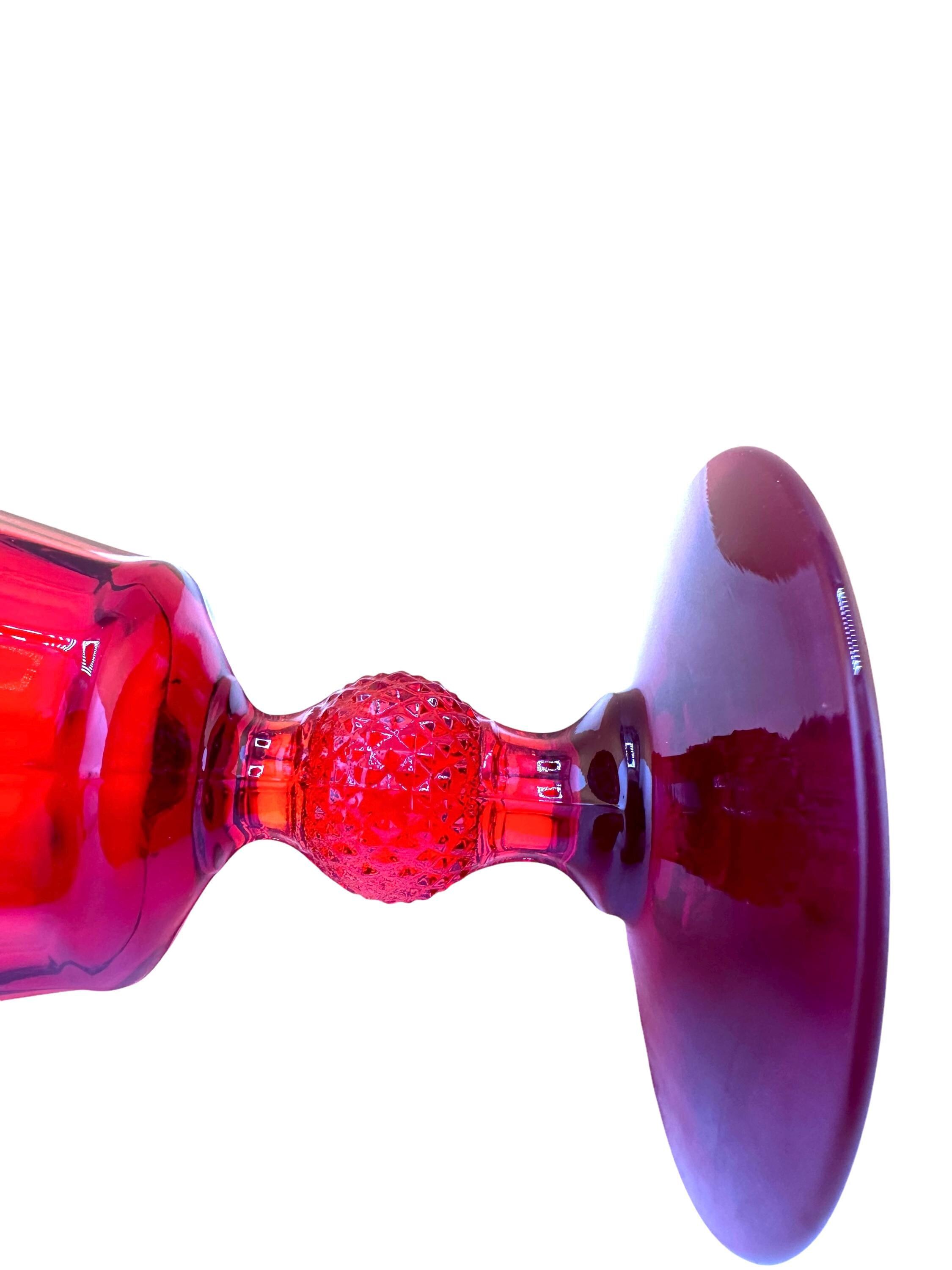 Elevate your celebration with our Mt Vernon Red Viking Champagne Goblets, beautifully designed with an elegant cross-hatch stem that exudes vintage charm. Crafted for collectors and everyday toastmasters alike, these stunning champagne goblets will add a pop of color and sophistication to any gathering—make them yours today and toast to life's special moments! This is for a set of luxuorious Viking Mt Vernon champagne or tall sherbet glasses in ruby red.