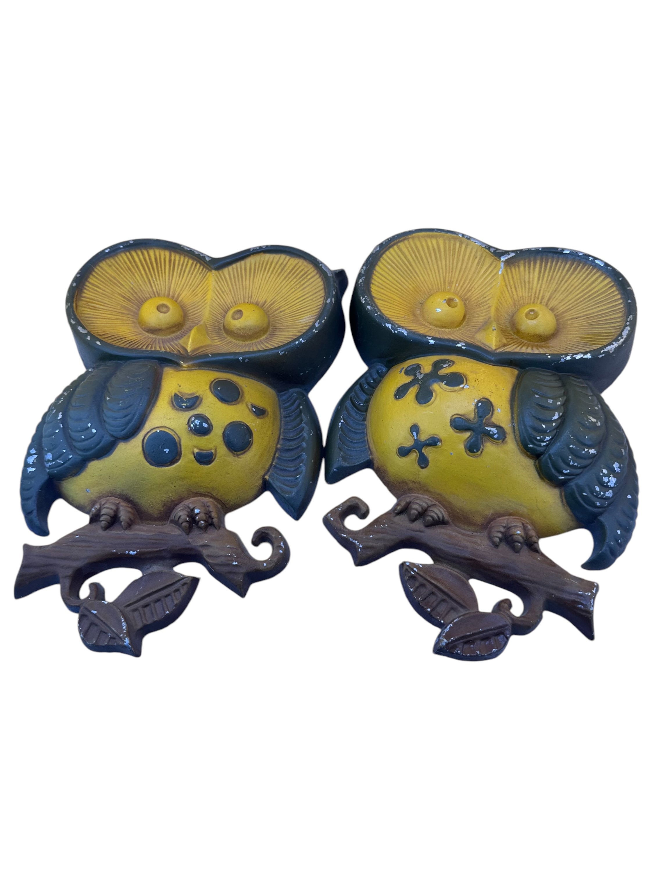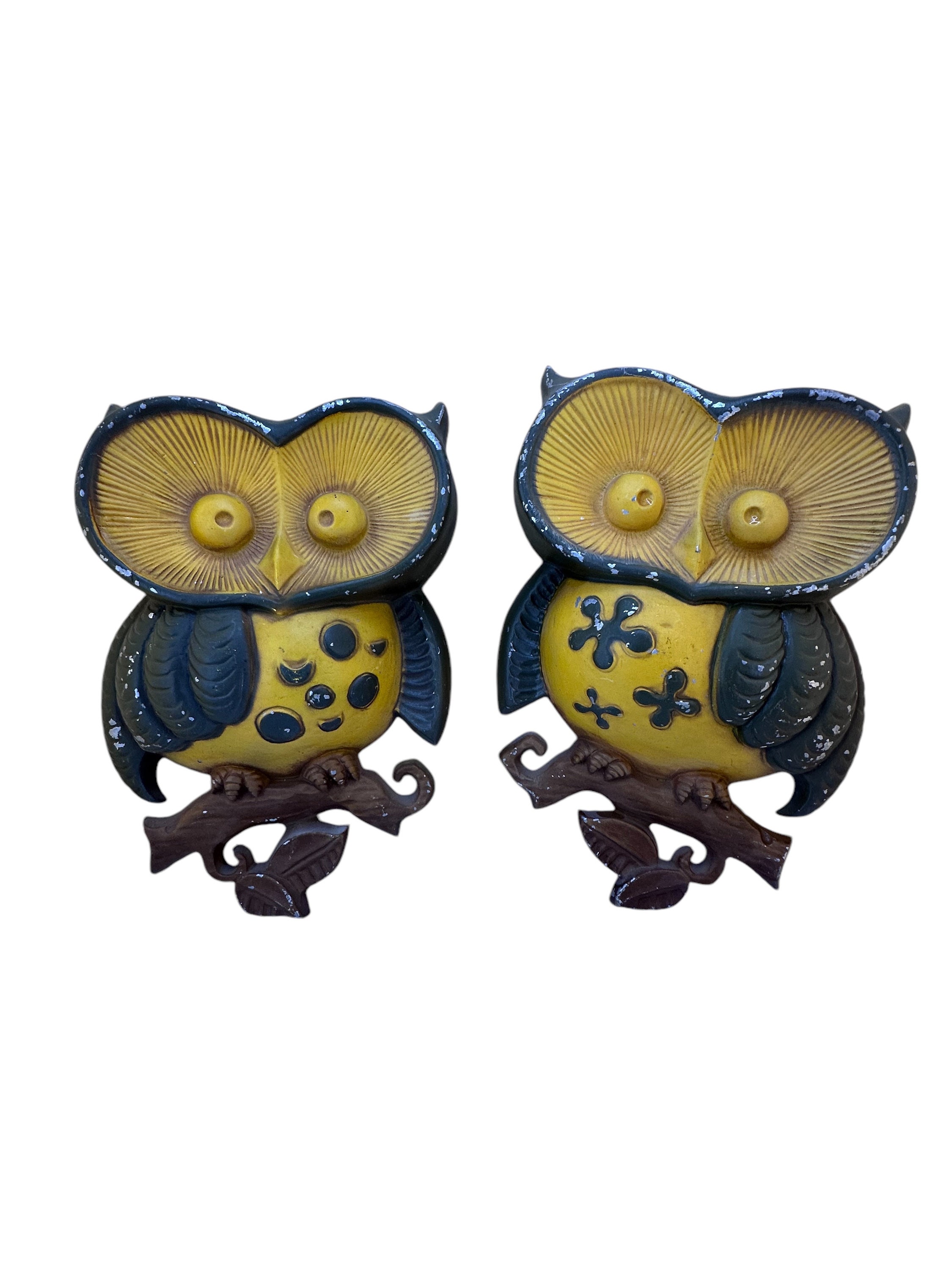 Vintage Metal Owl Wall Art Decor - Sexton USA - Pair