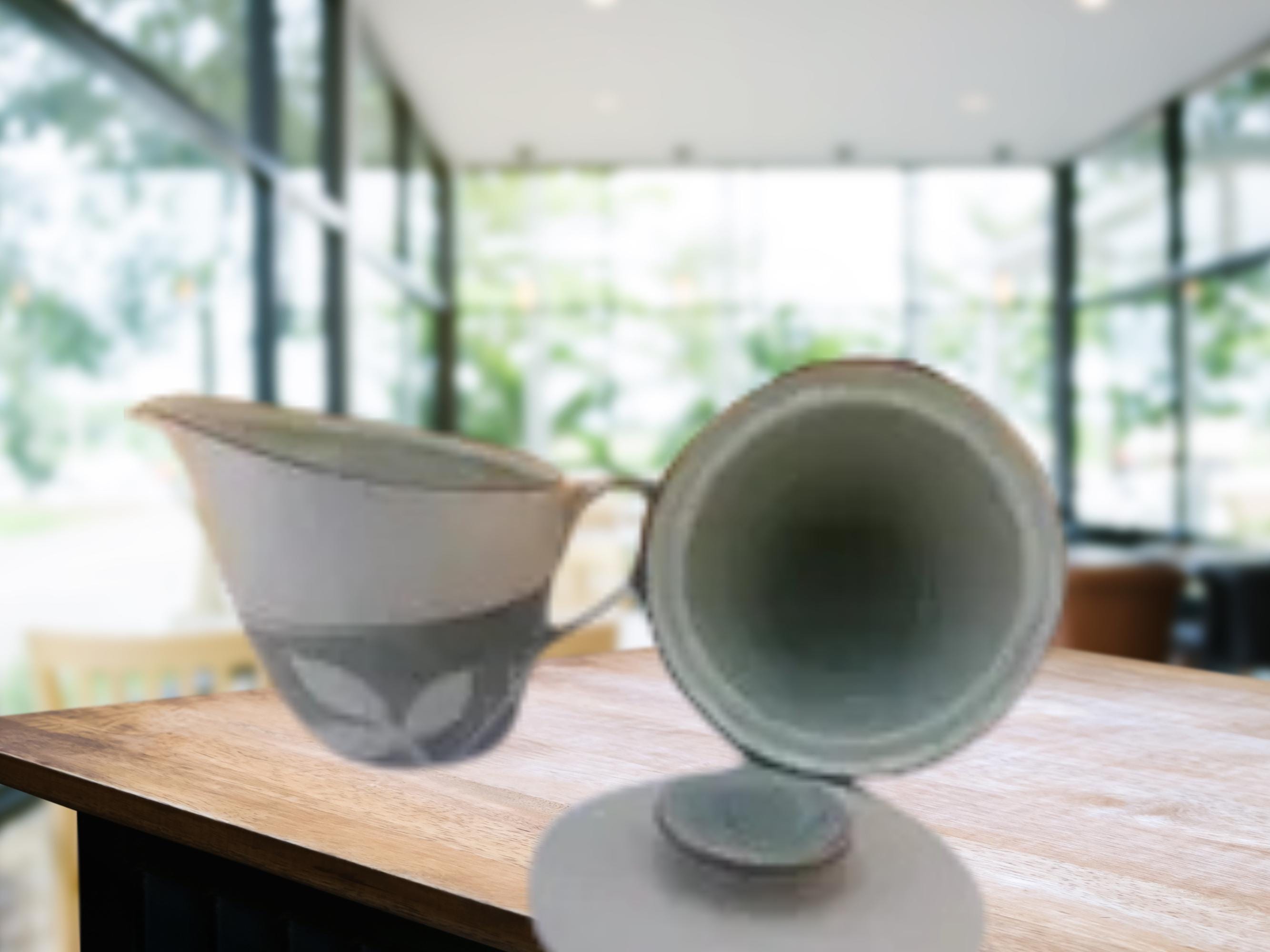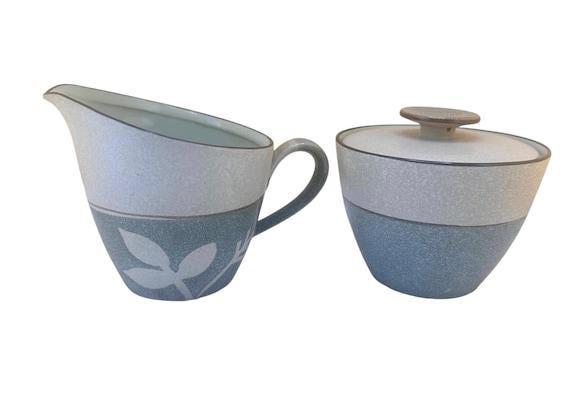Japanese Ucago Stoneware Cream and Sugar Bowl: Medallion Leaf Design
