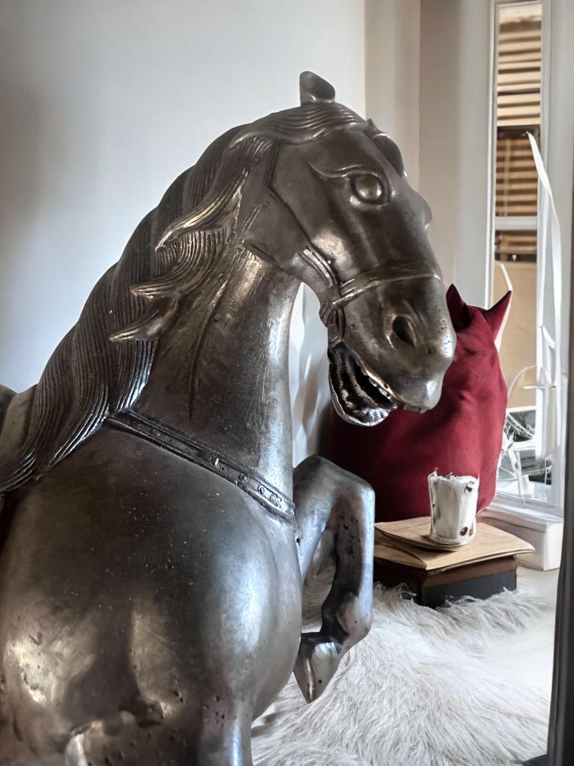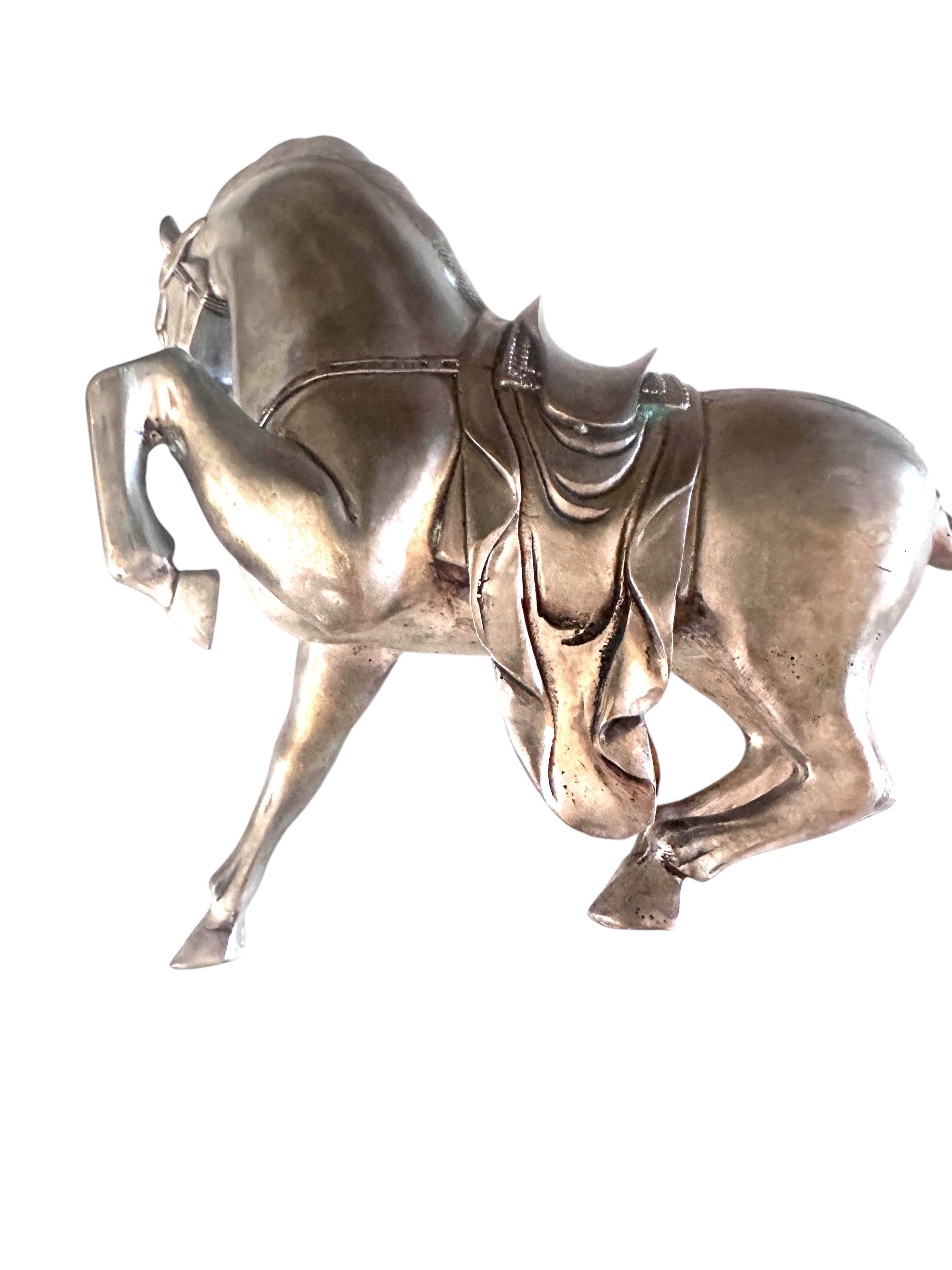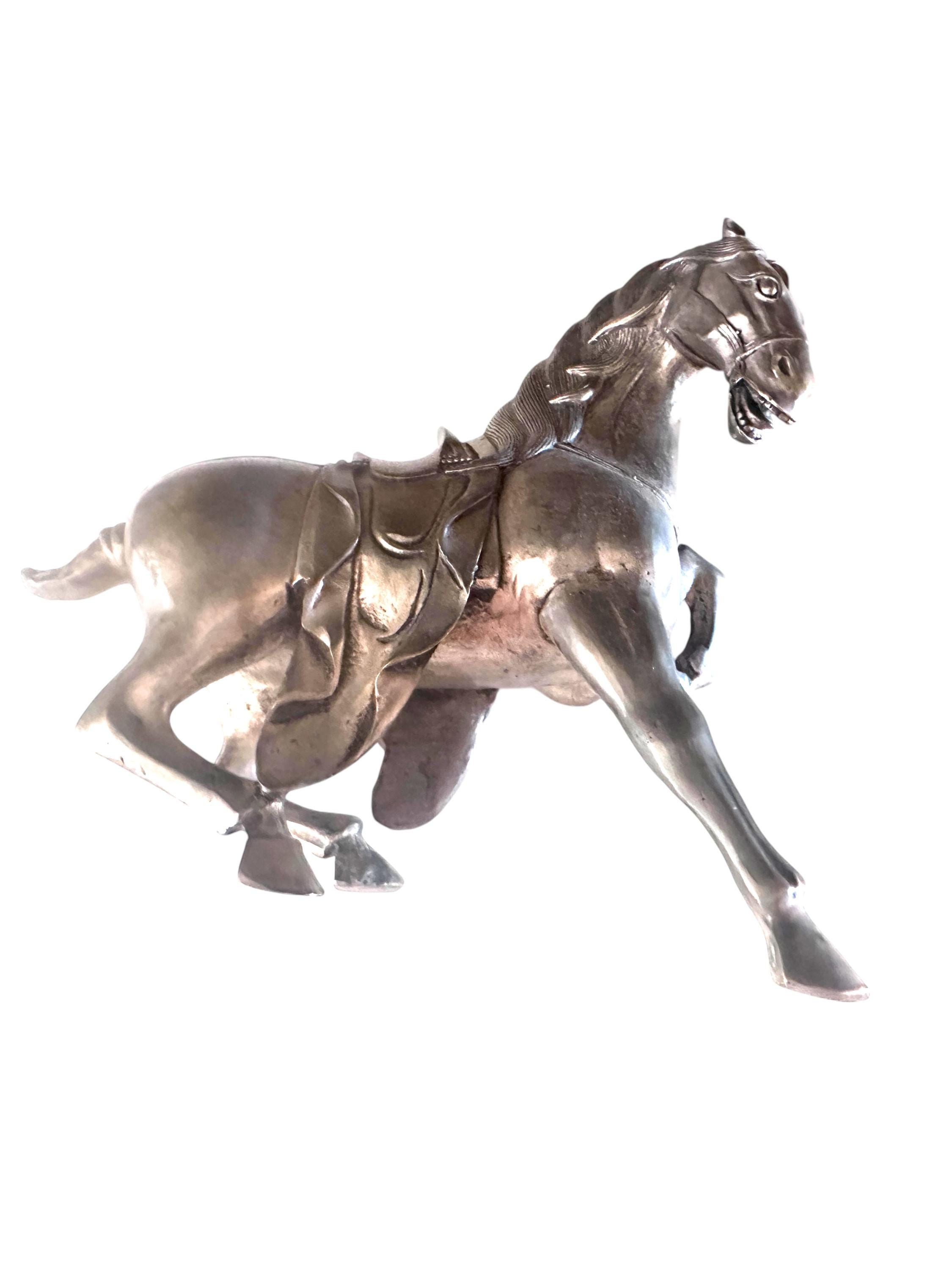 Celebrate the spirit of equine beauty with our stunning Silver Metal Horse Sculpture, a unique animal collectible that adds elegance to any home decor. Perfect as a horse gift for him, this exquisite piece not only showcases the majesty of stallions but also evokes a sense of connection to nature—add it to your collection today and let your passion for horses shine!Elevate your home decor with this exquisite silver colored metal horse sculpture, a rare vintage Fengshui piece that beautifully embodies grace and prosperity, making it a perfect collectible horse lover gift.