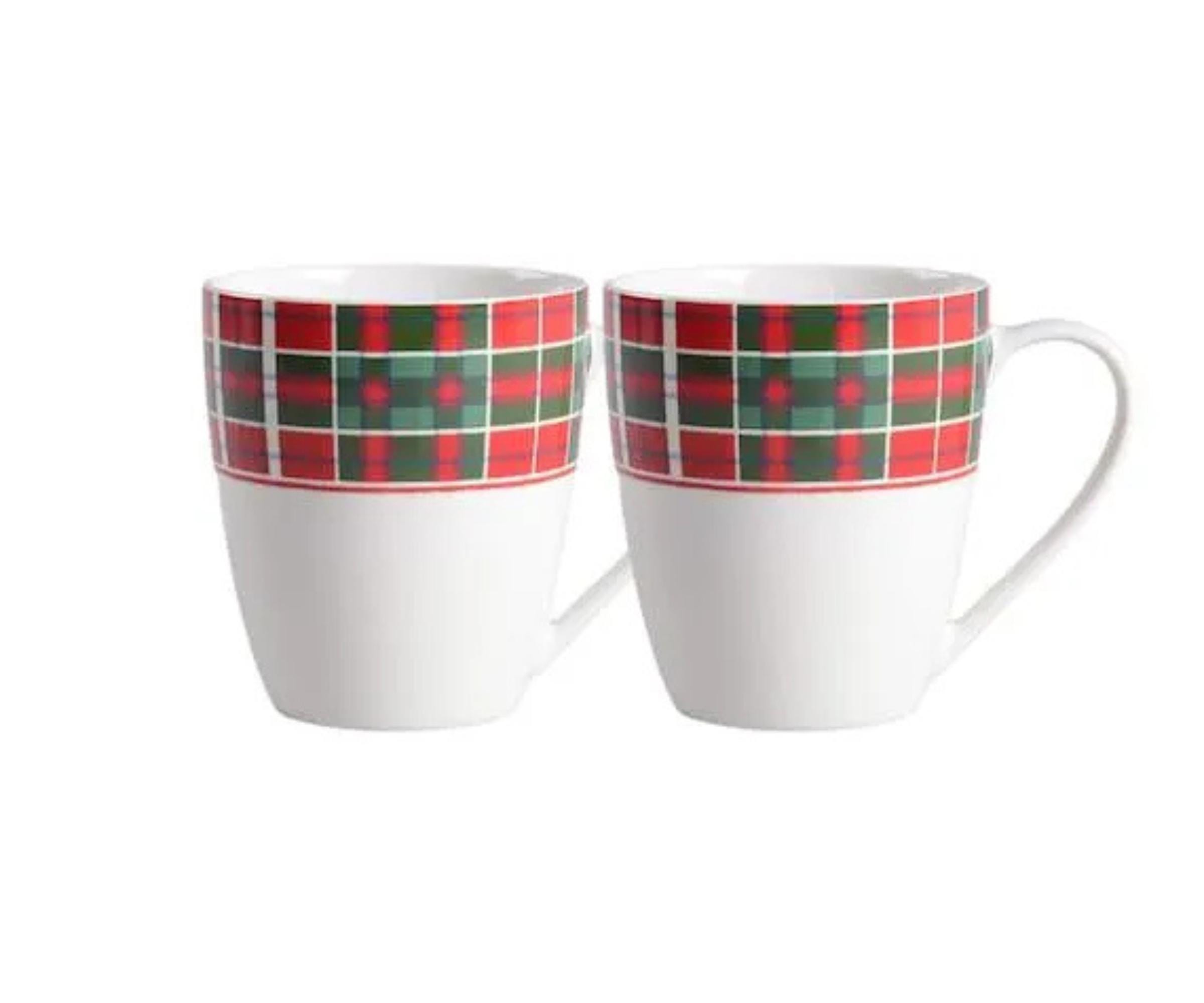 Lenox Vintage Plaid Christmas Coffee Mugs - Holiday Drinkware Set of 2