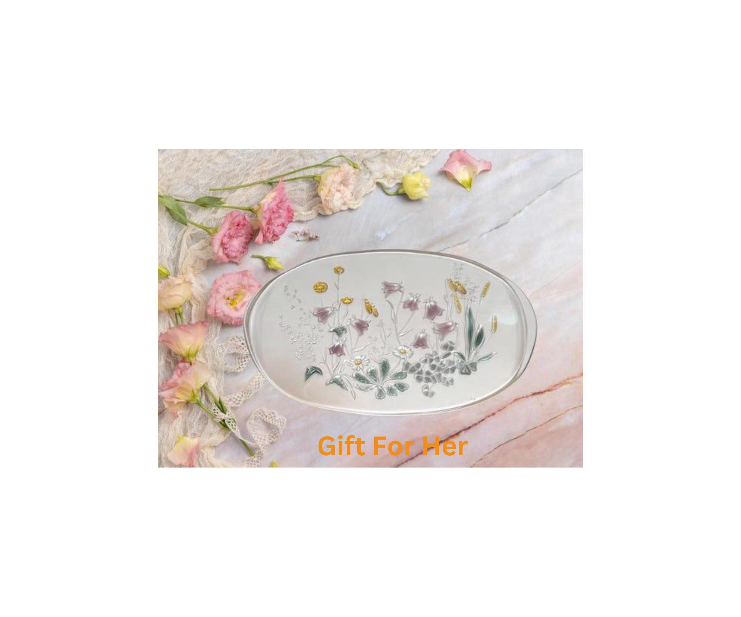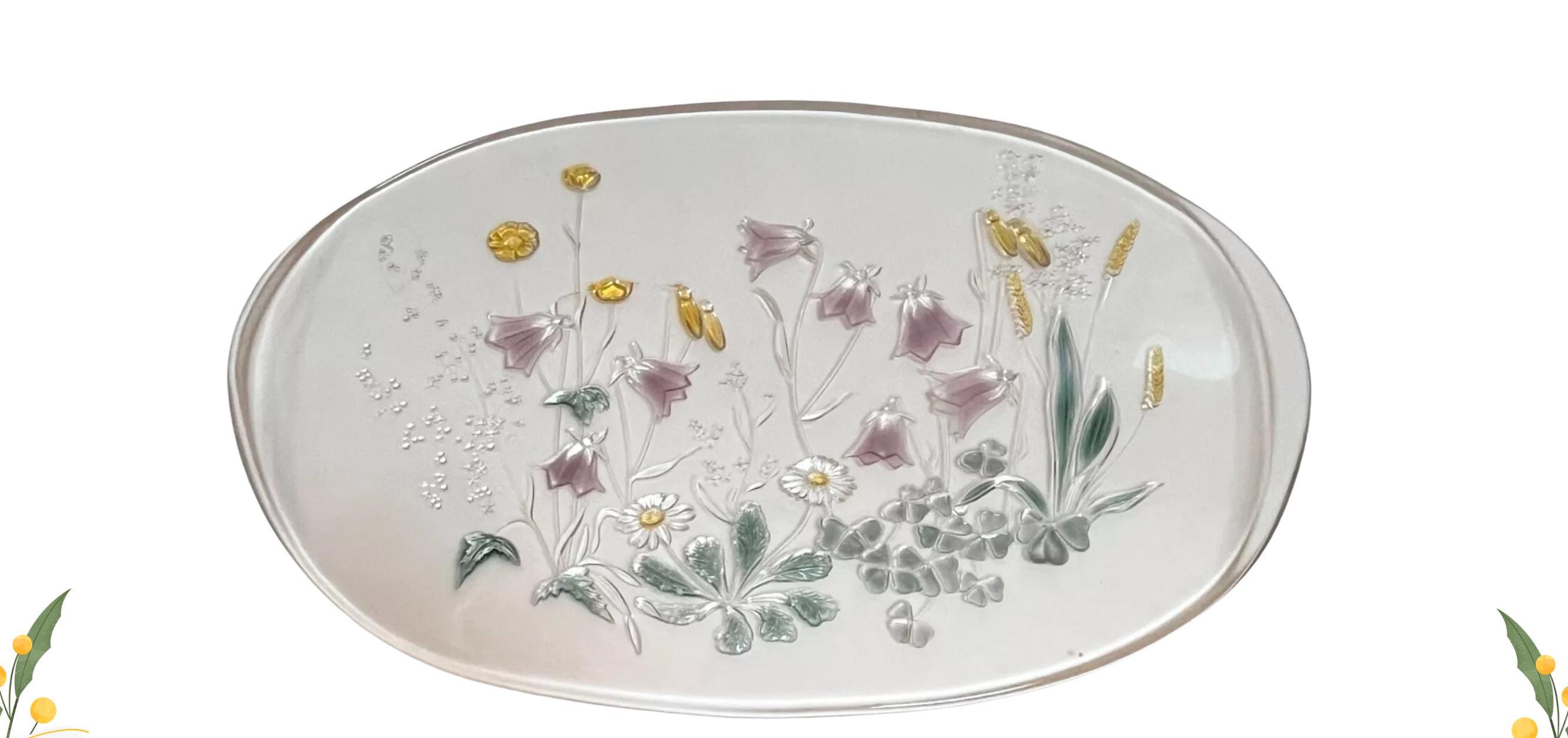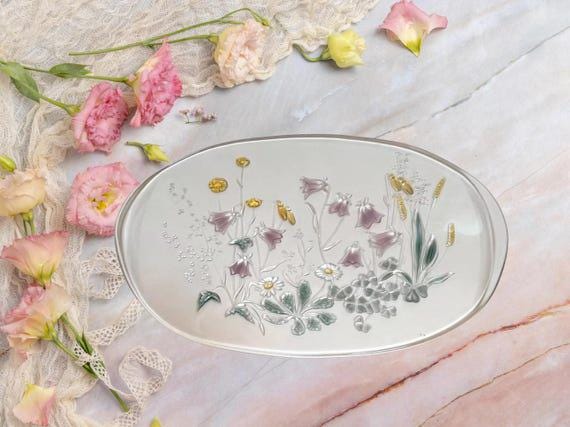 Mikasa Cinderella Canape Tray: Floral Embossed Glass Serving Platter