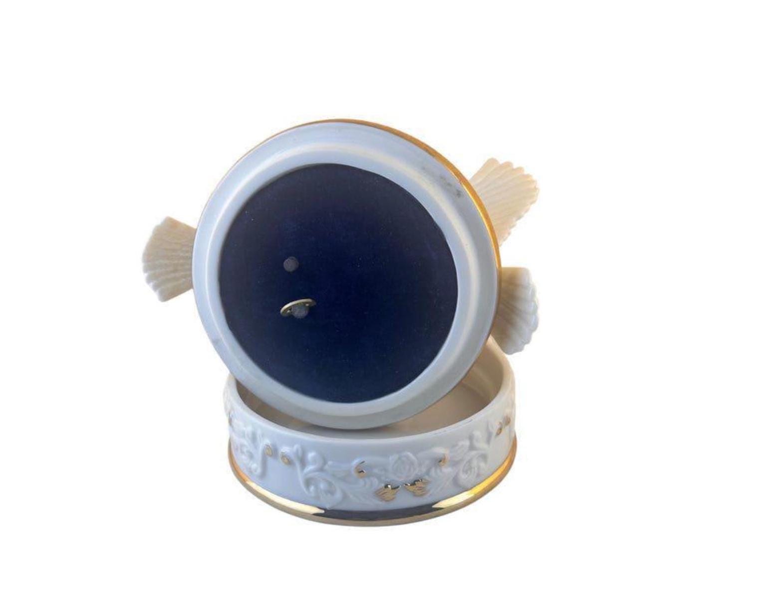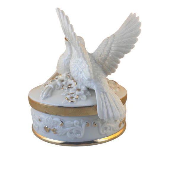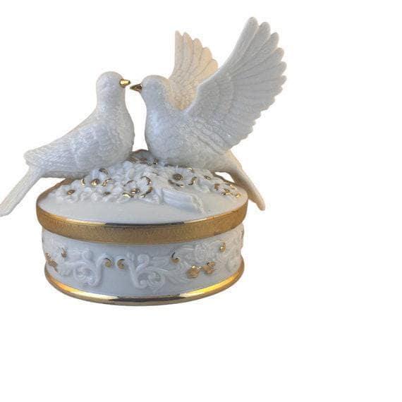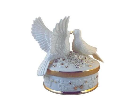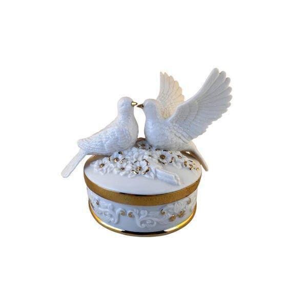Vintage Porcelain Turtle Doves Music Box: Gold Encrusted Keepsake