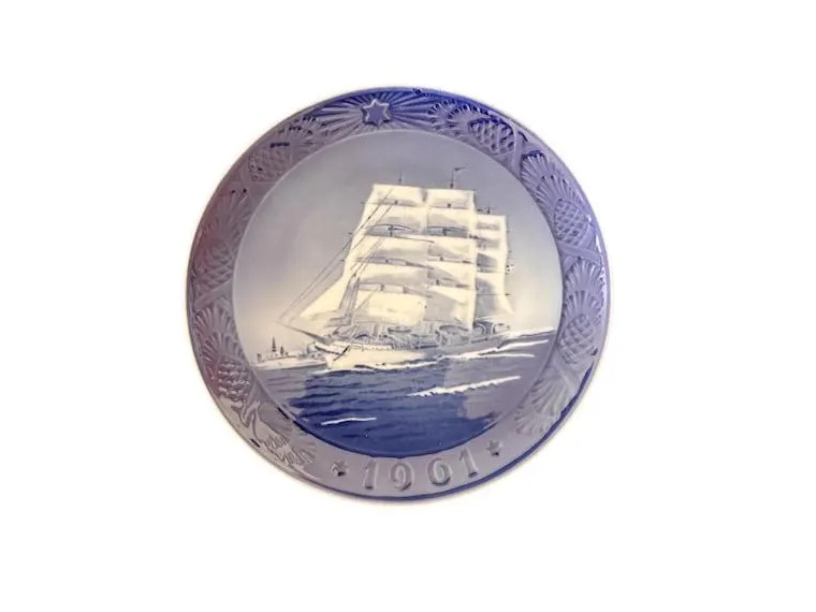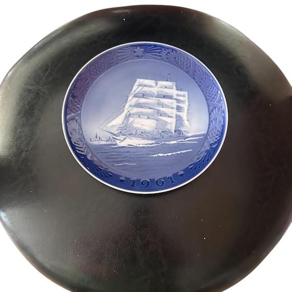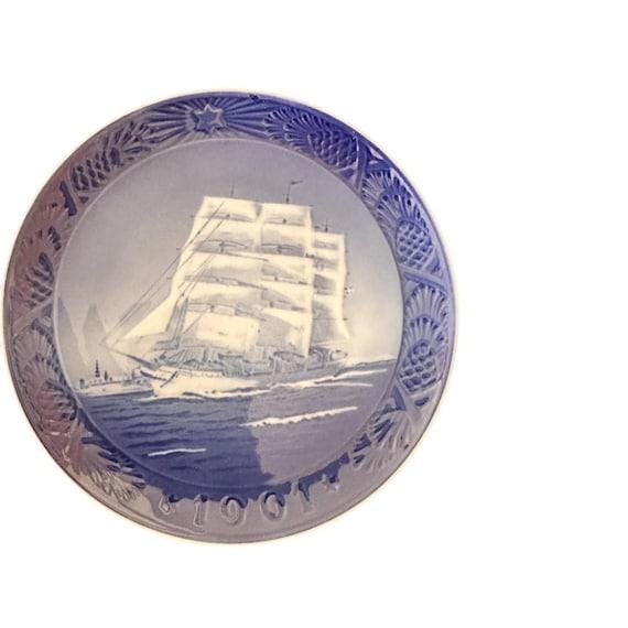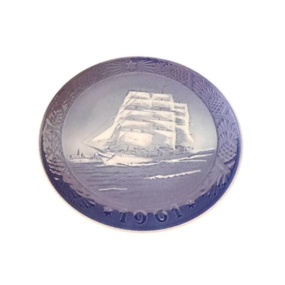 Royal Copenhagen Blue Porcelain Plate - The Training Ship 1961 Christmas Dish, Nautical Decor & Denmark Collectible