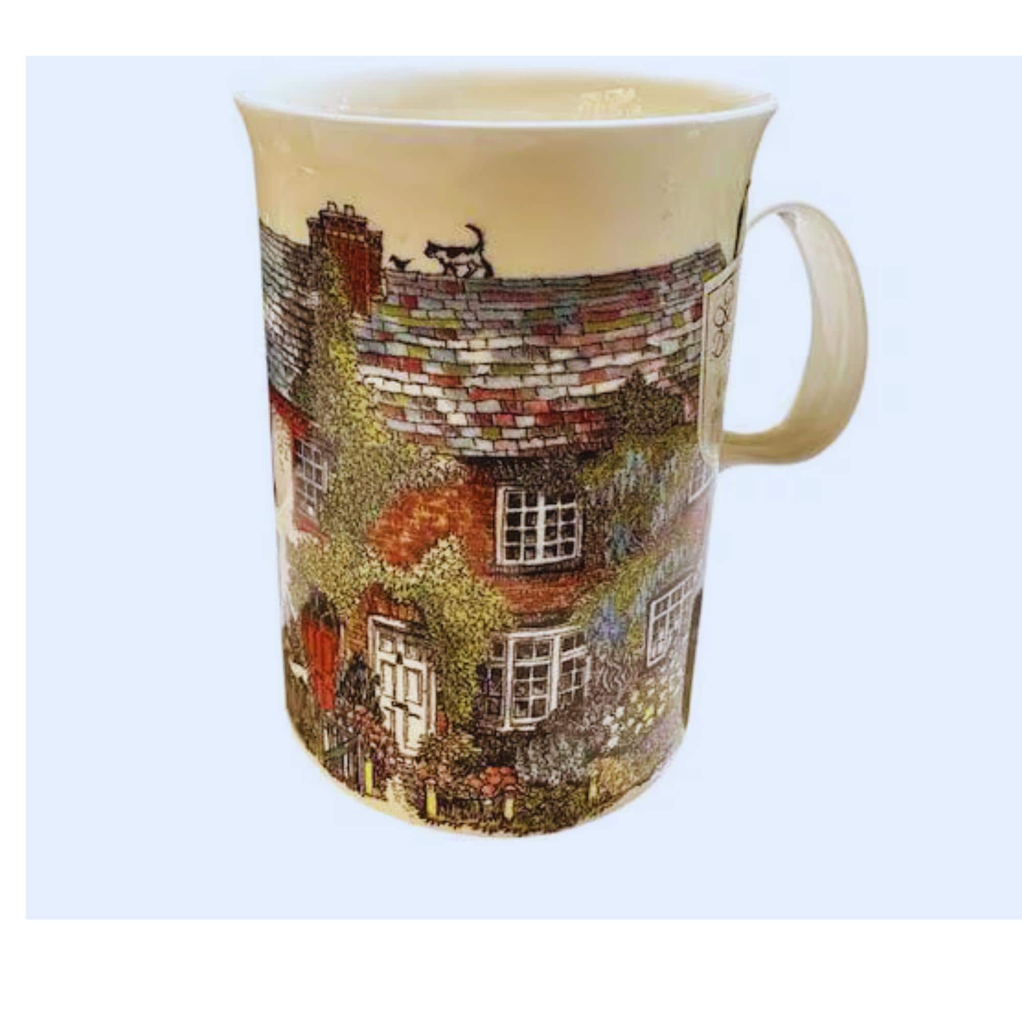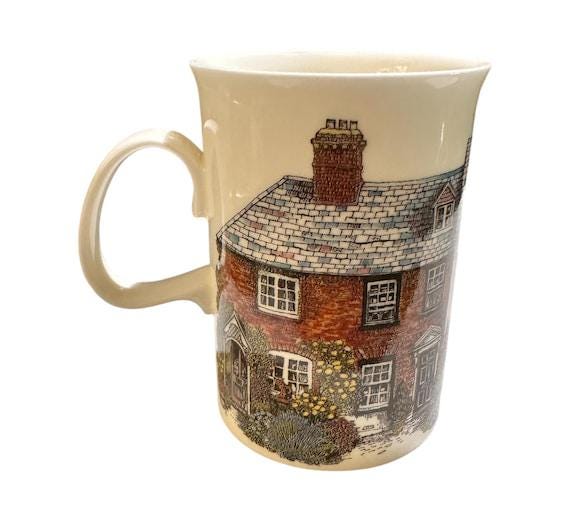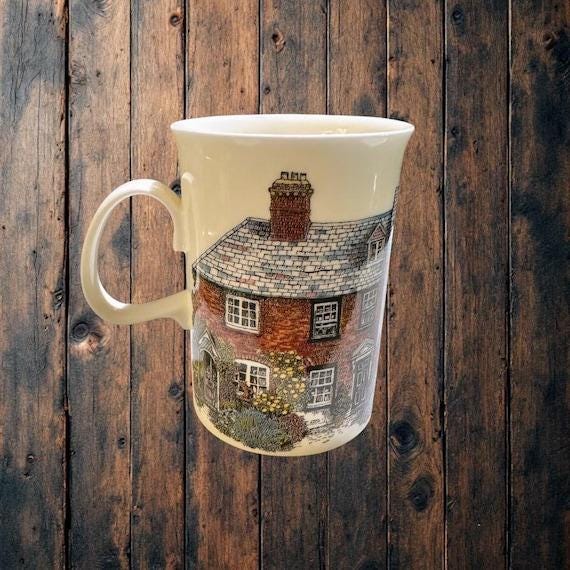 Vintage Dunoon bone china coffee mug, expertly crafted from fine bone china and adorned with delightful cottages by Sue Scullard. Perfect as a unique gift for her, this enchanting piece not only adds a touch of nostalgia to your kitchen but also evokes feelings of warmth and coziness—grab yours today and savor every sip!