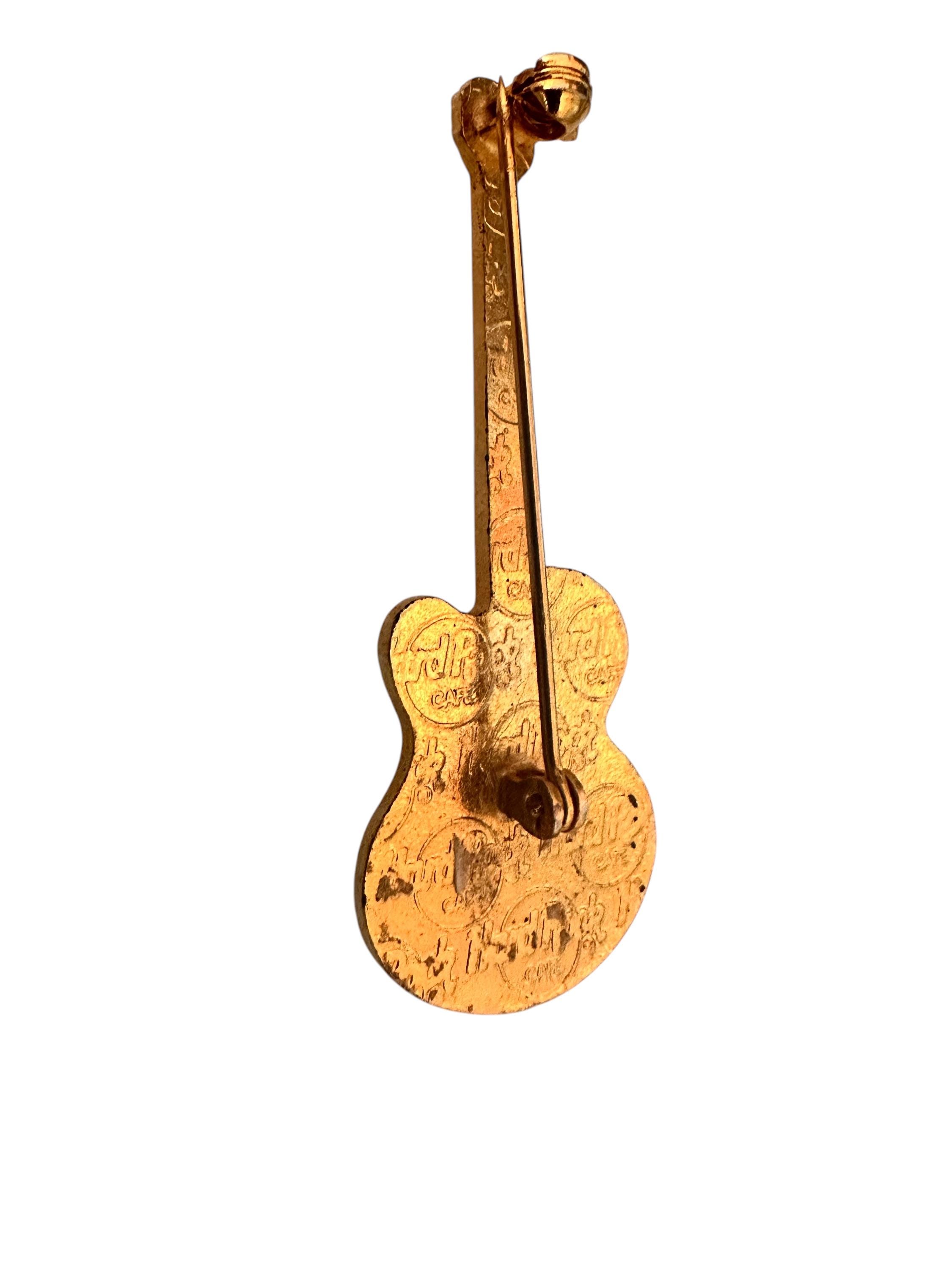 Hard Rock Guitar pin Singapore. Colorful red, yellow and gold acoustic guitar lapel pin. Great gift for vintage collector.