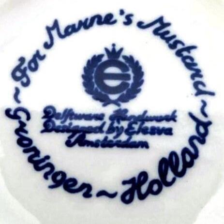 The bottom of the vintage mustard jar reads For Marne's Mustard Delftware