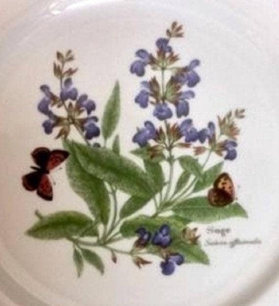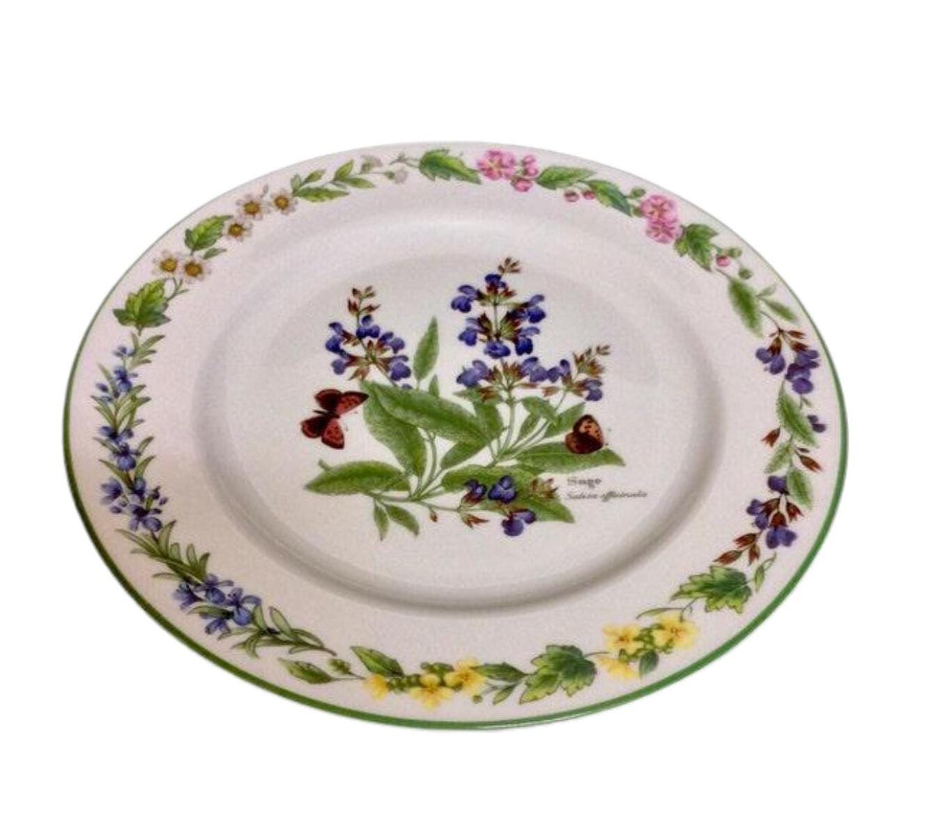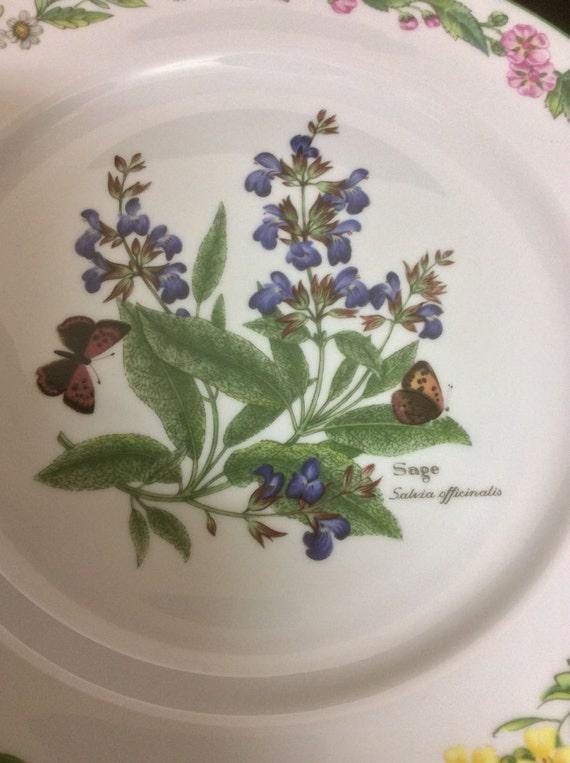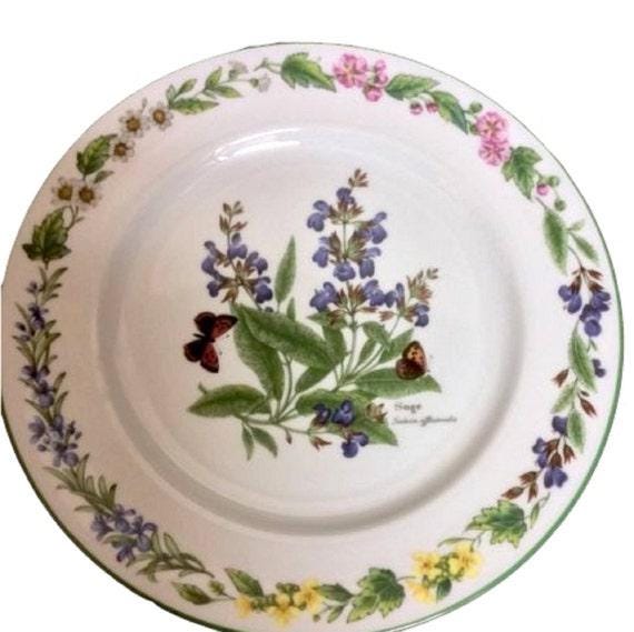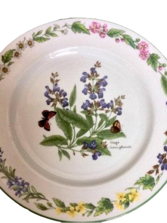 Beautiful vintage salad plate in the Royal Worcester Herbs pattern. It is now available for purchase at Tucson Tiques Collectibles. The design on this plate is the herb called sage. It is has green trim. This vintage plate is dishwasher, microwave, and freezer safe. How sweet is that?