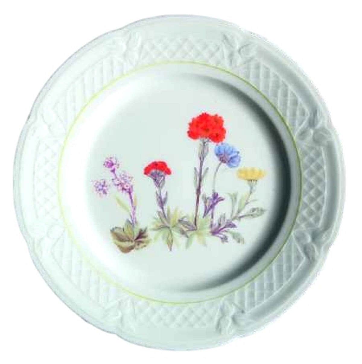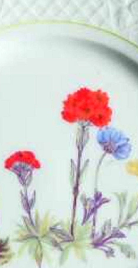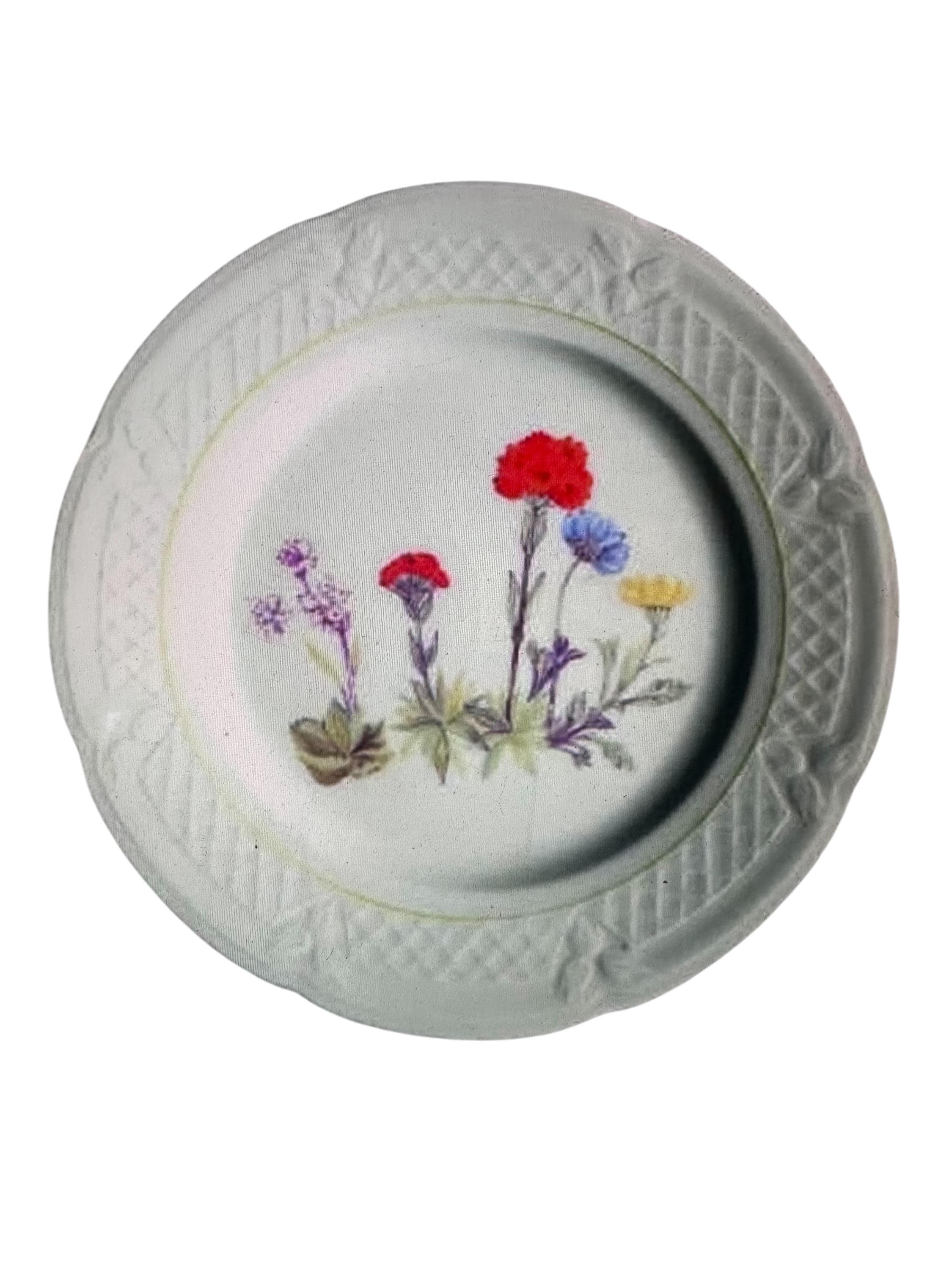 Louis Lourioux Wildflower Porcelain Salad Plate Made in France, Basket Weave Rim