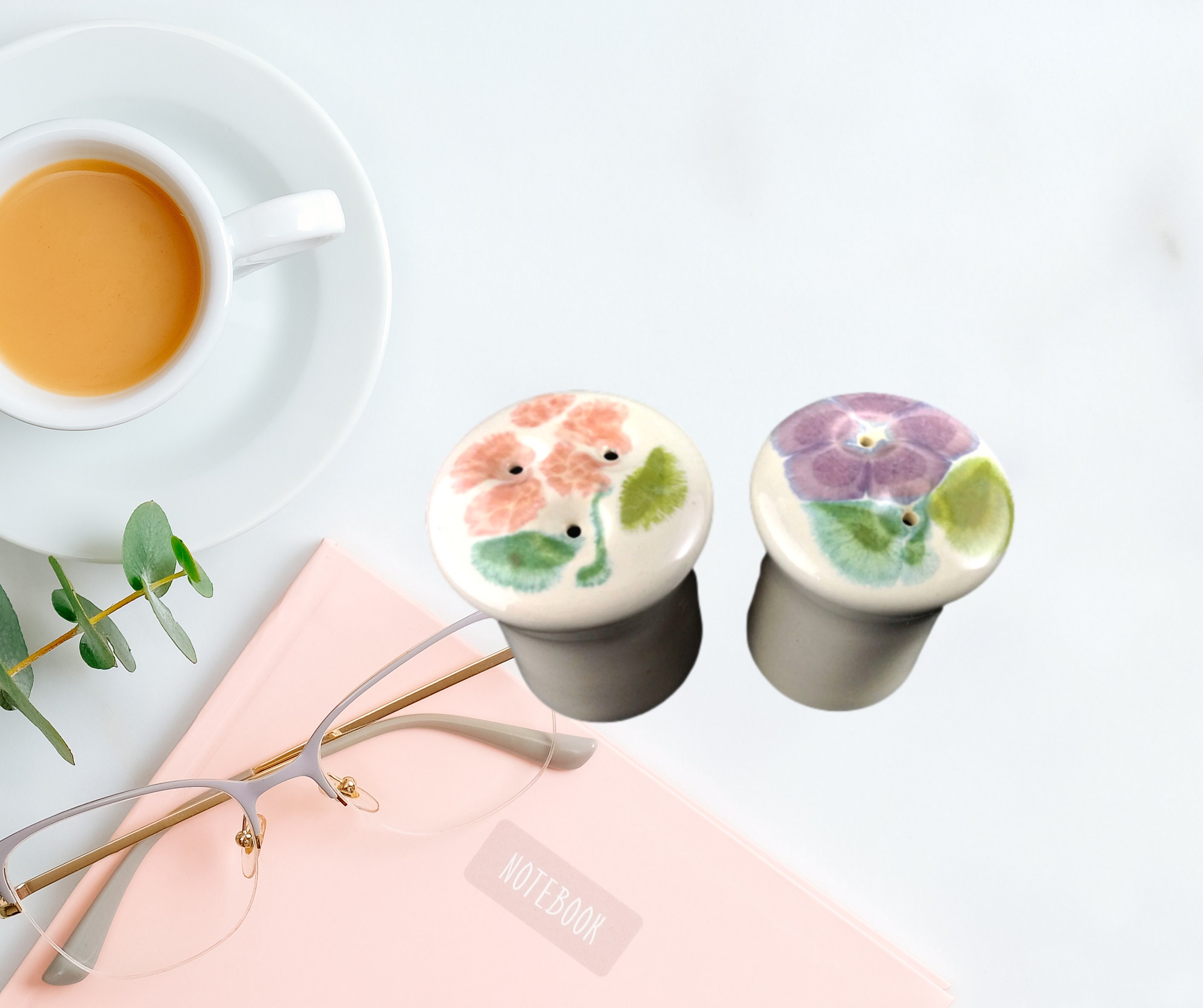 Now available vintage Franciscan earthenware floral salt pepper shakers. Add these mid century vintage kitchen shakers to your earthenware collection today! There are NO STOPPERS for this set of shakers.