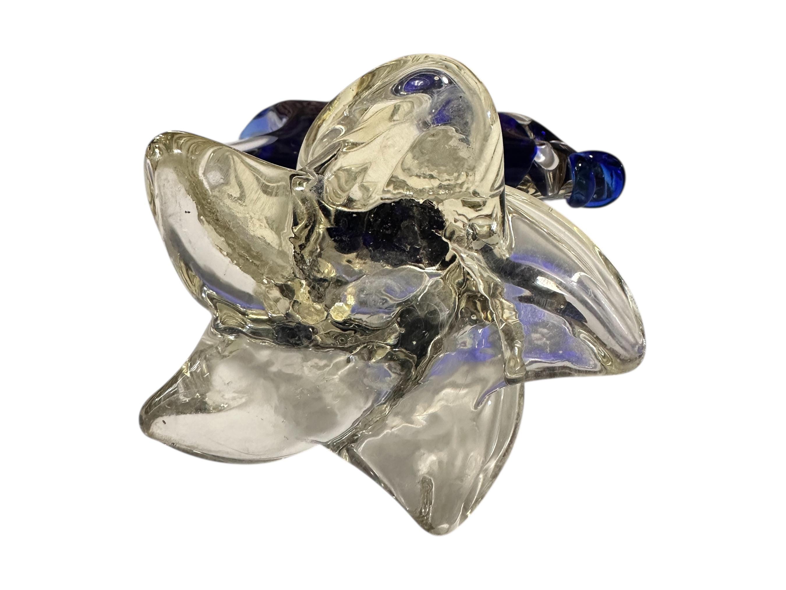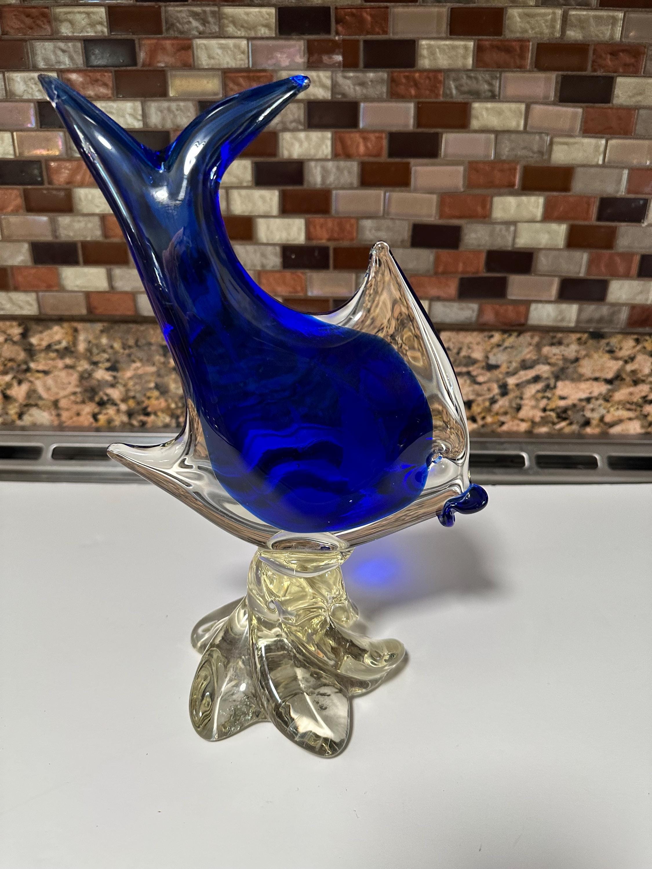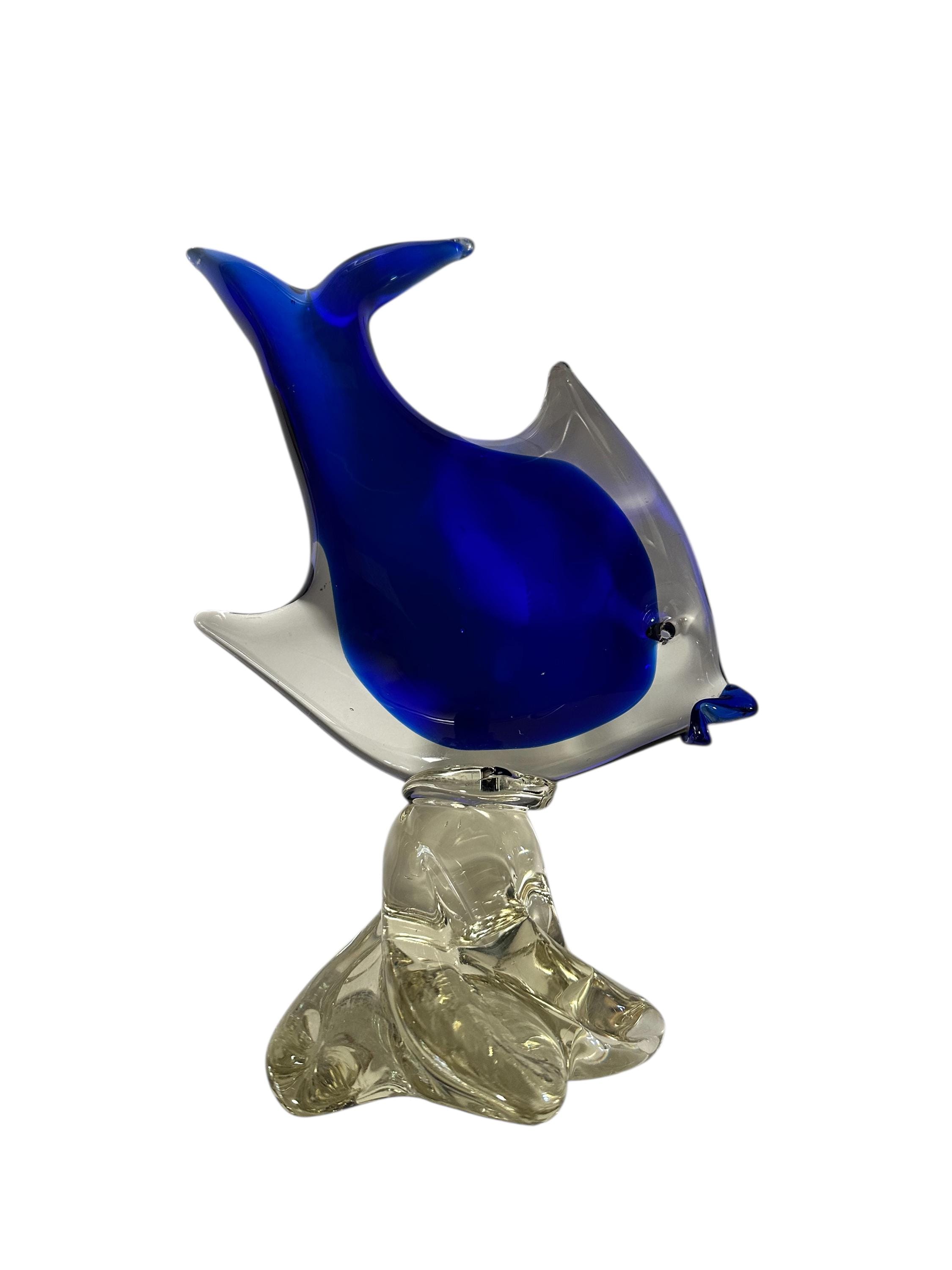 Crafted from authentic Murano glass, this sculpture measures approximately 6 inches in length, featuring rich blue tones and intricate details that highlight expert Venetian craftsmanship. Each piece is hand-blown, ensuring that no two sculptures are exactly alike. Its sturdy yet elegant design makes it a durable keepsake that brightens any shelf or office space.