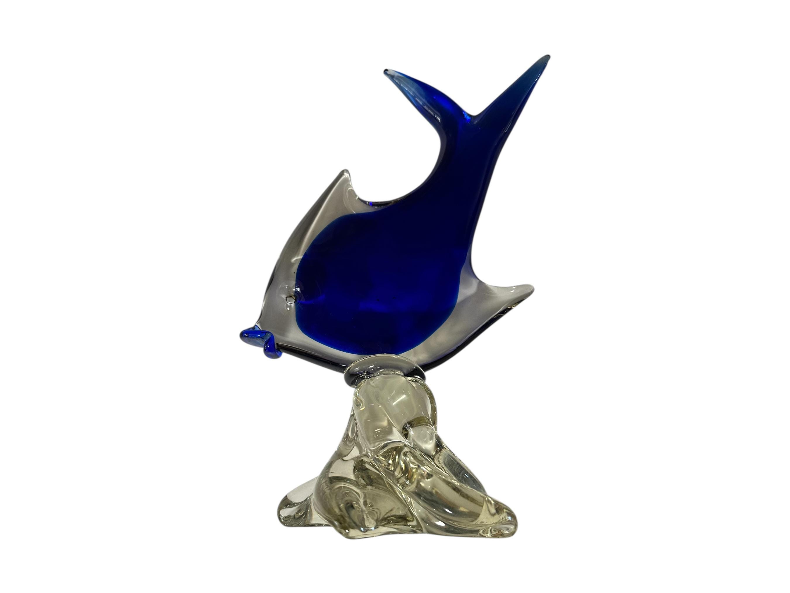 Hand Blown Murano Glass Blue Angel Fish Sculpture Venetian Glass Gift For Father's Day
