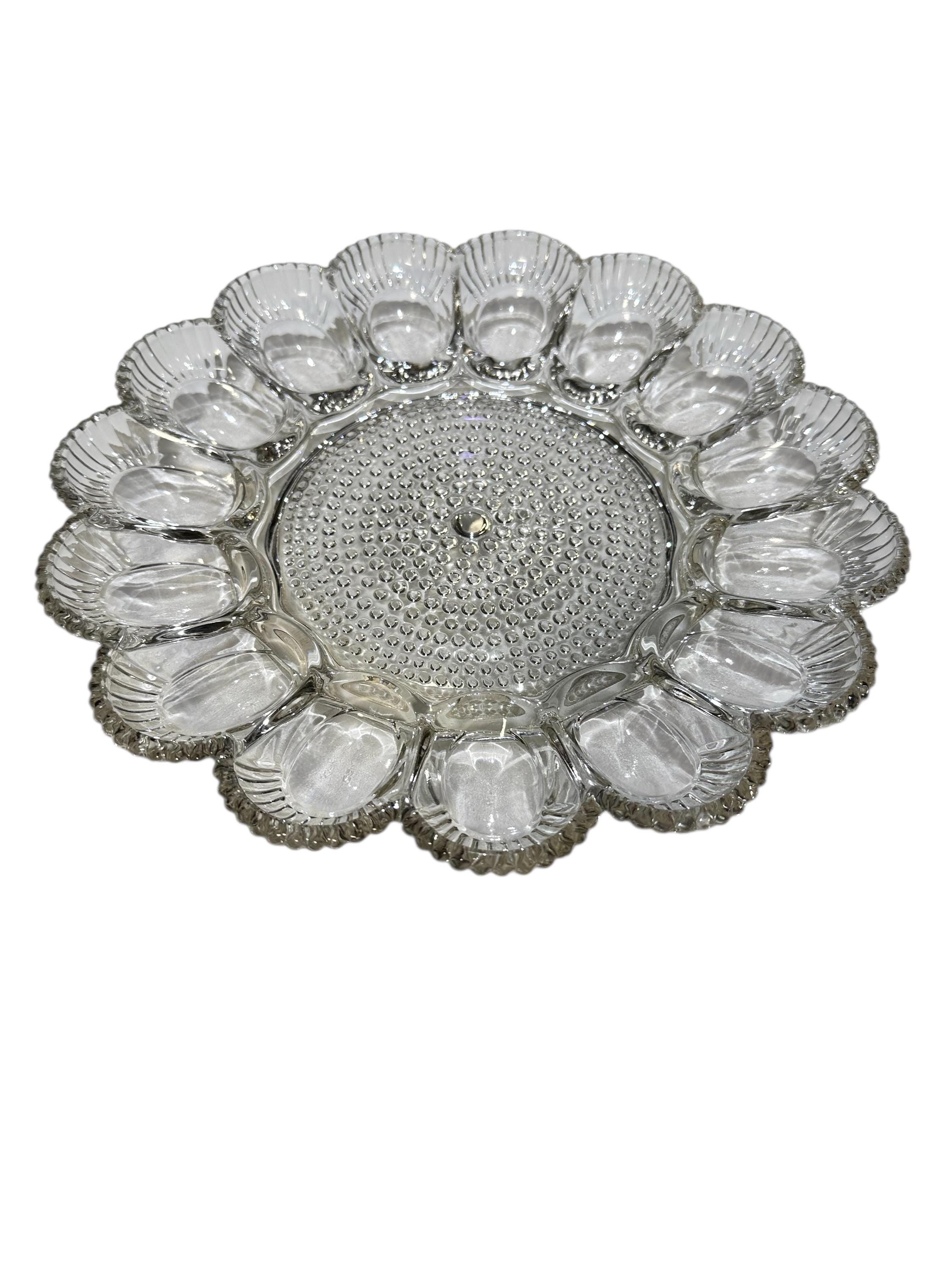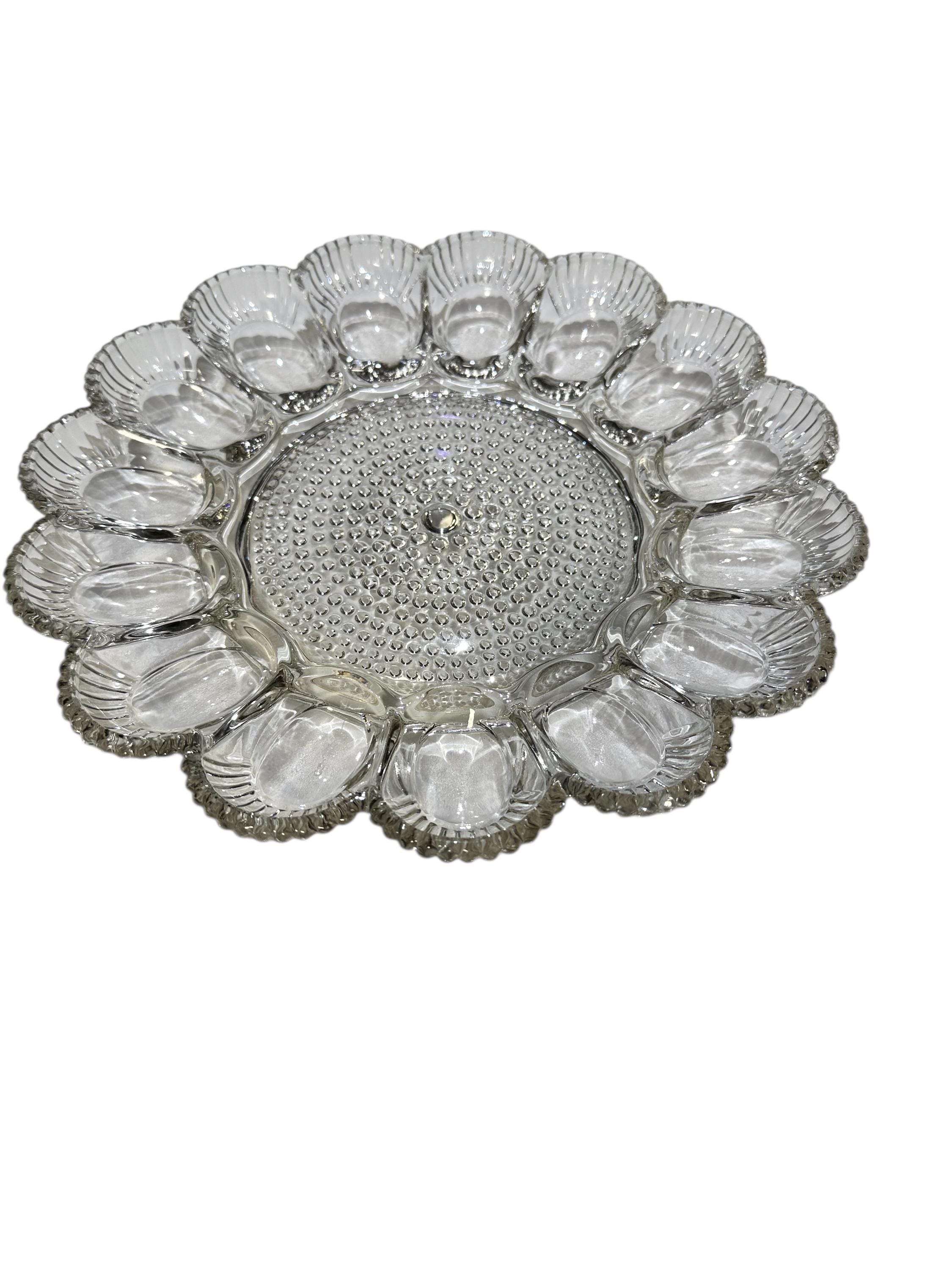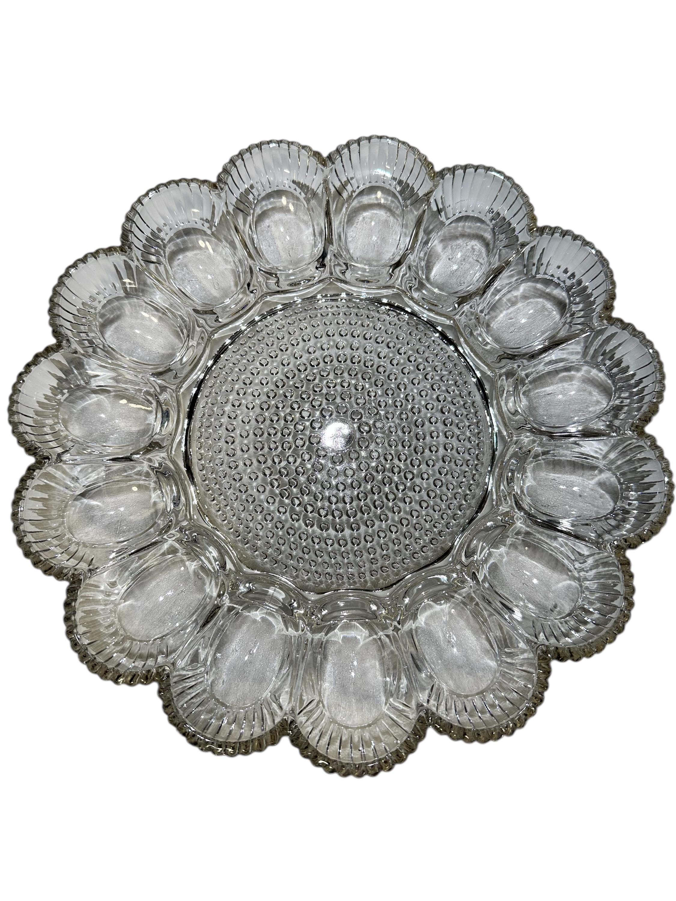 Indiana Pressed Glass Deviled Egg Platter 15 Egg Hobnail Round Server Vintage Relish Tray