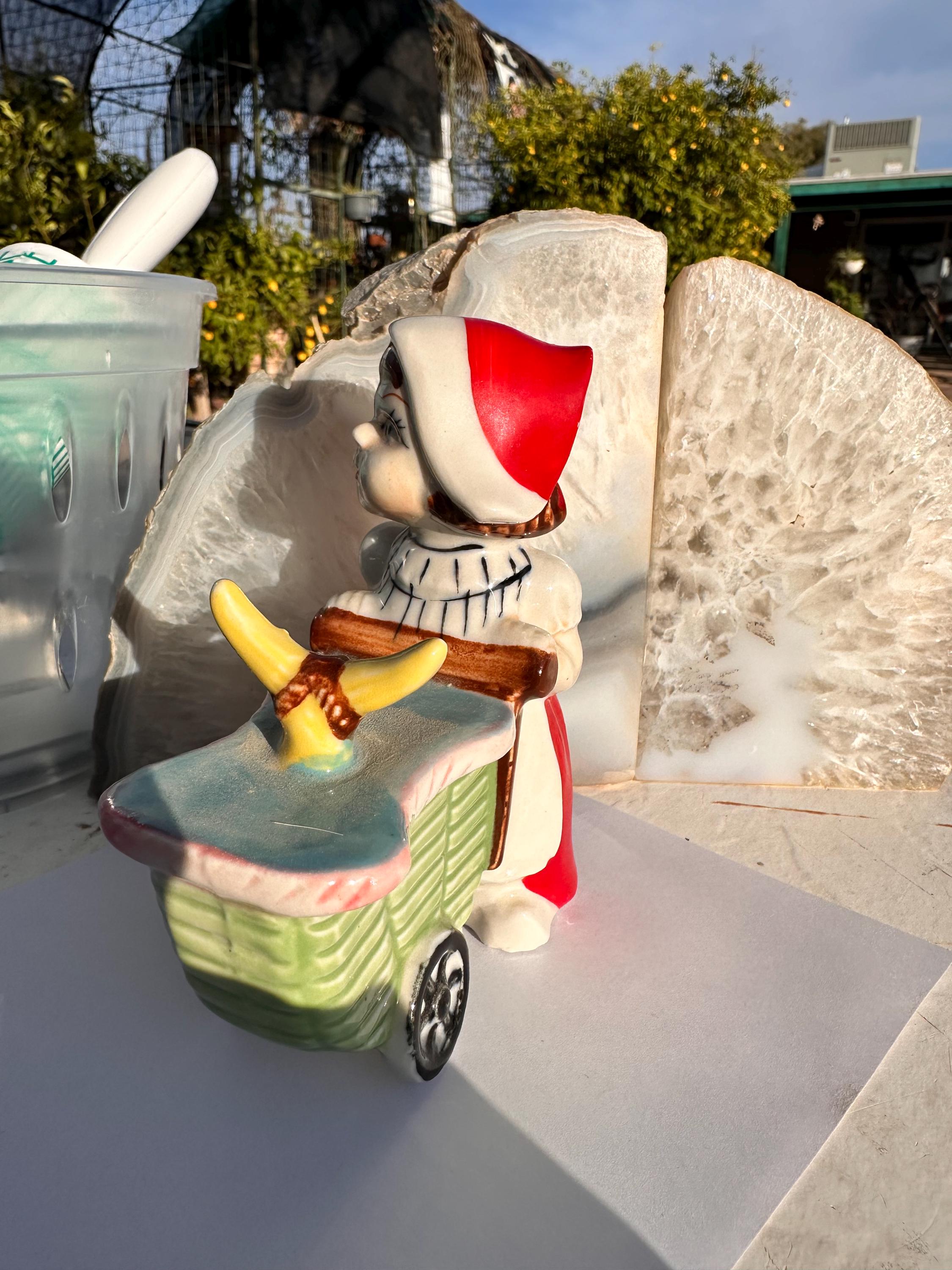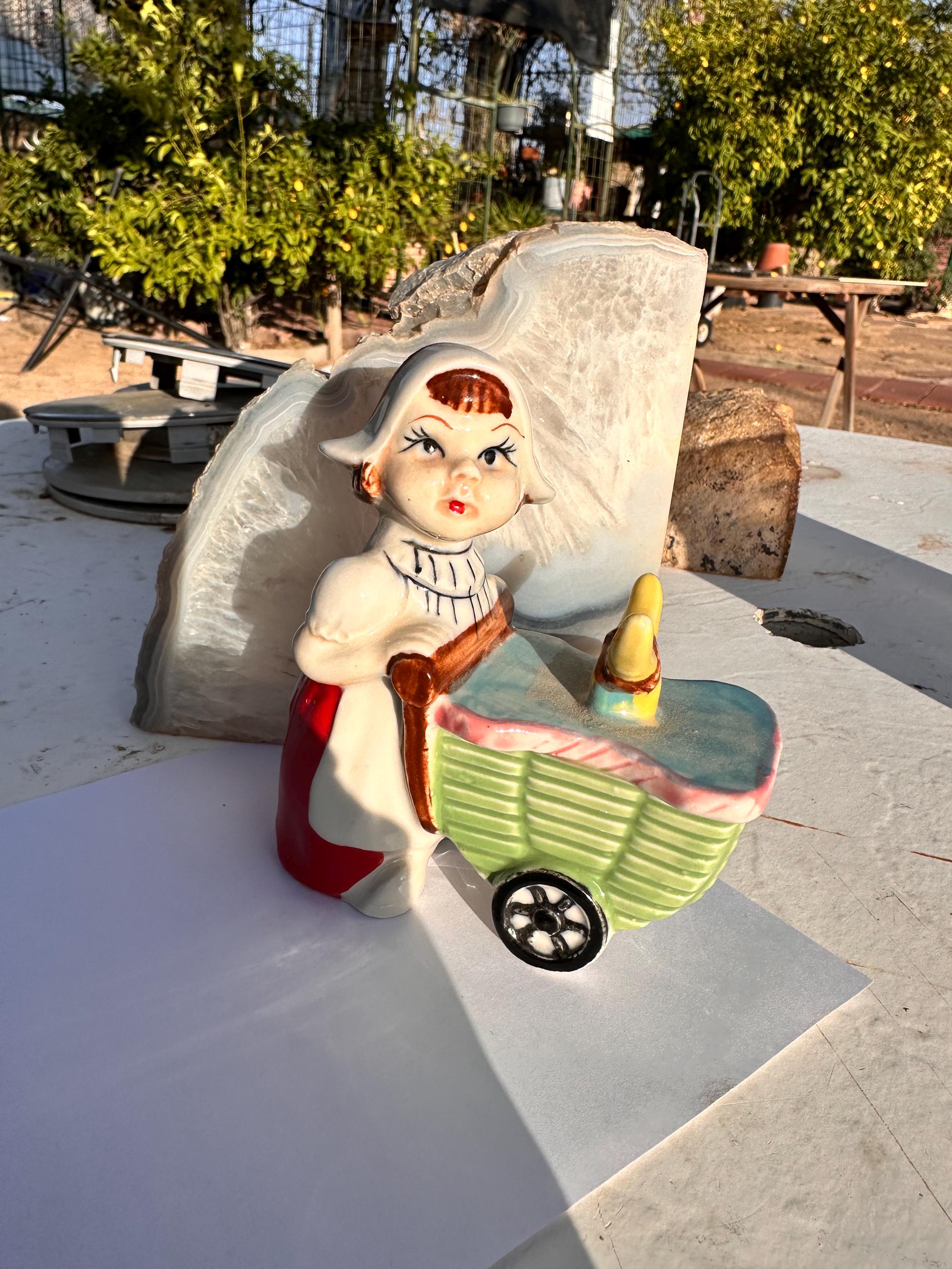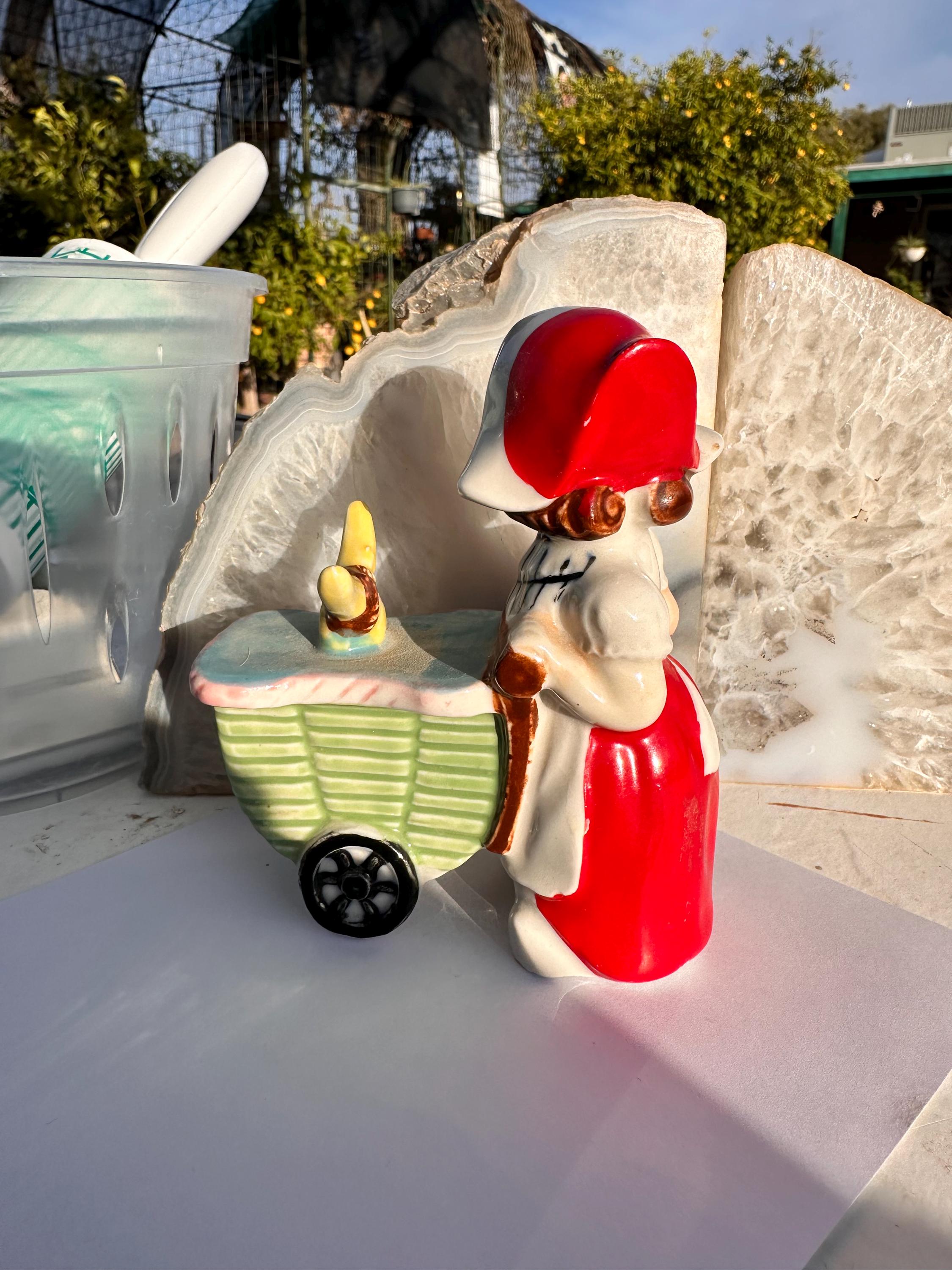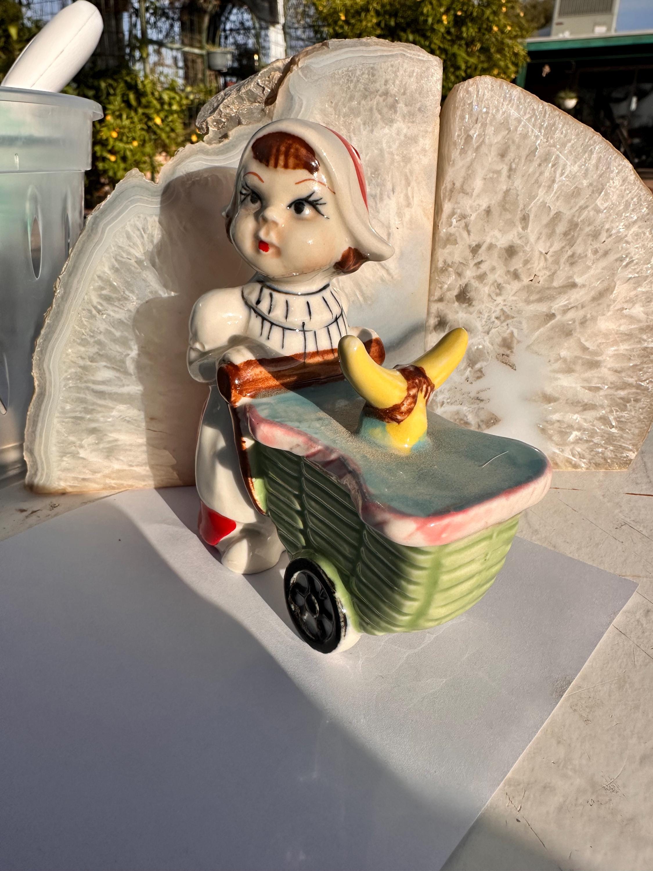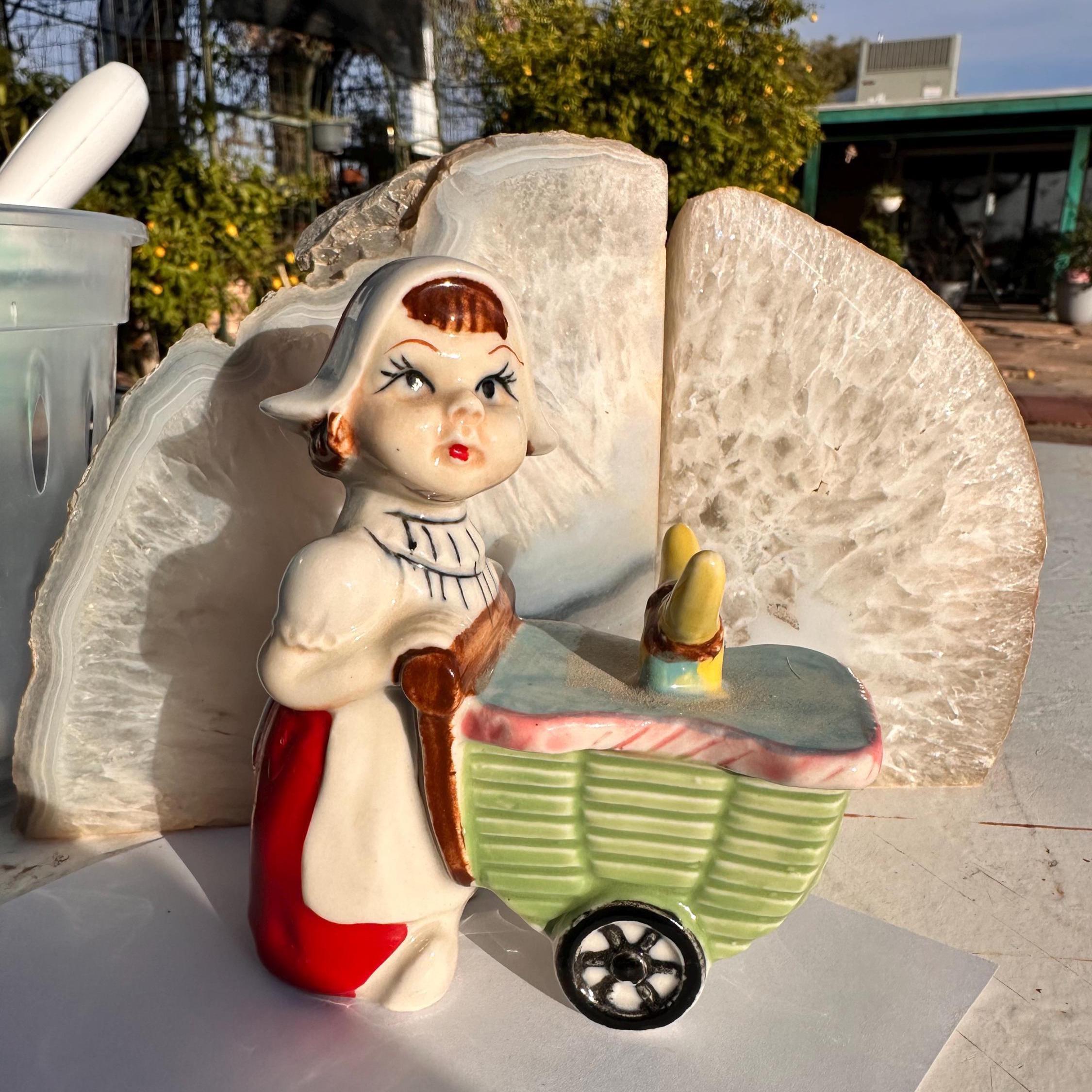Vintage Napco Dutch Girl Figurine: Mid-Century Ceramic Vendor Cart