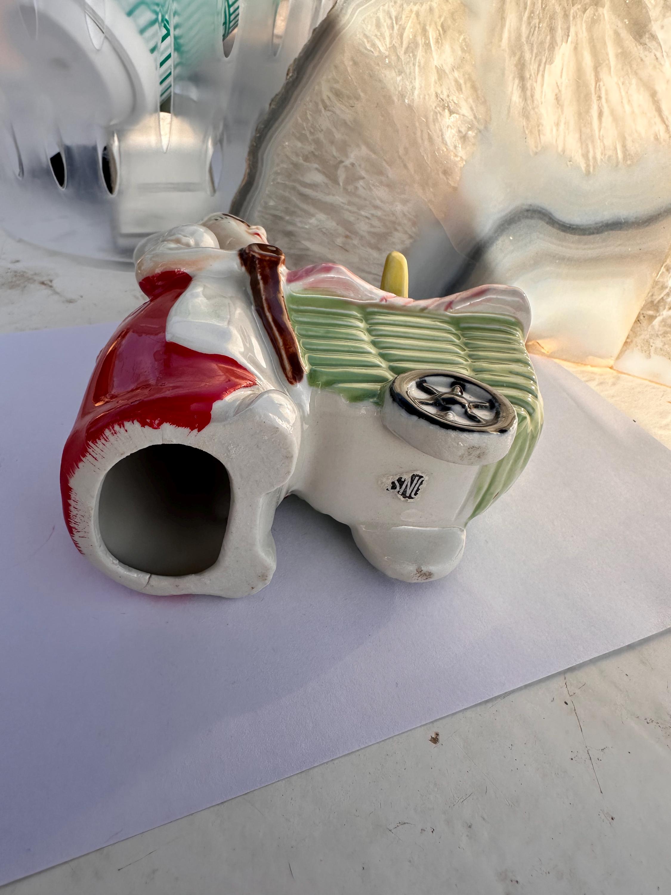 This charming Dutch girl figurine, crafted by Napco, captures a vintage mid-century aesthetic with delightful detail — from her traditional attire and hair to the quaint vendors cart she pushes. Perfect for collectors or as a thoughtful gift for her, this ceramic piece offers a unique blend of nostalgia and artistry that stands out in any decor.