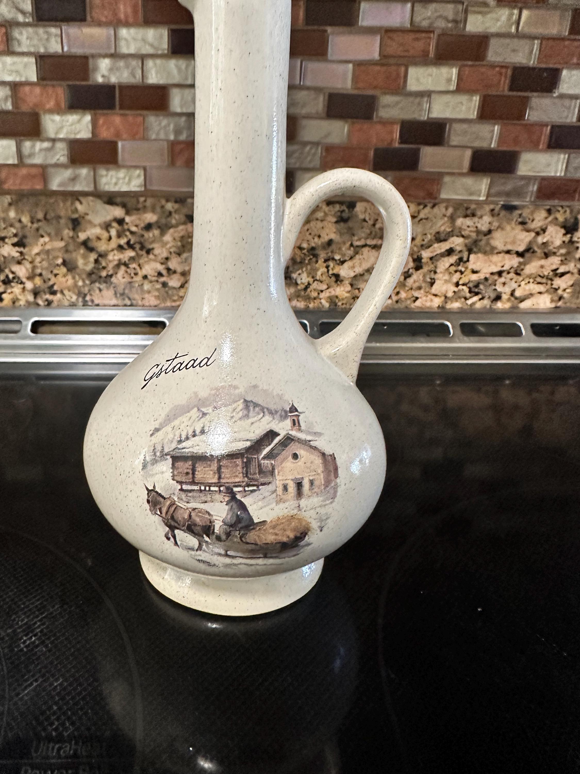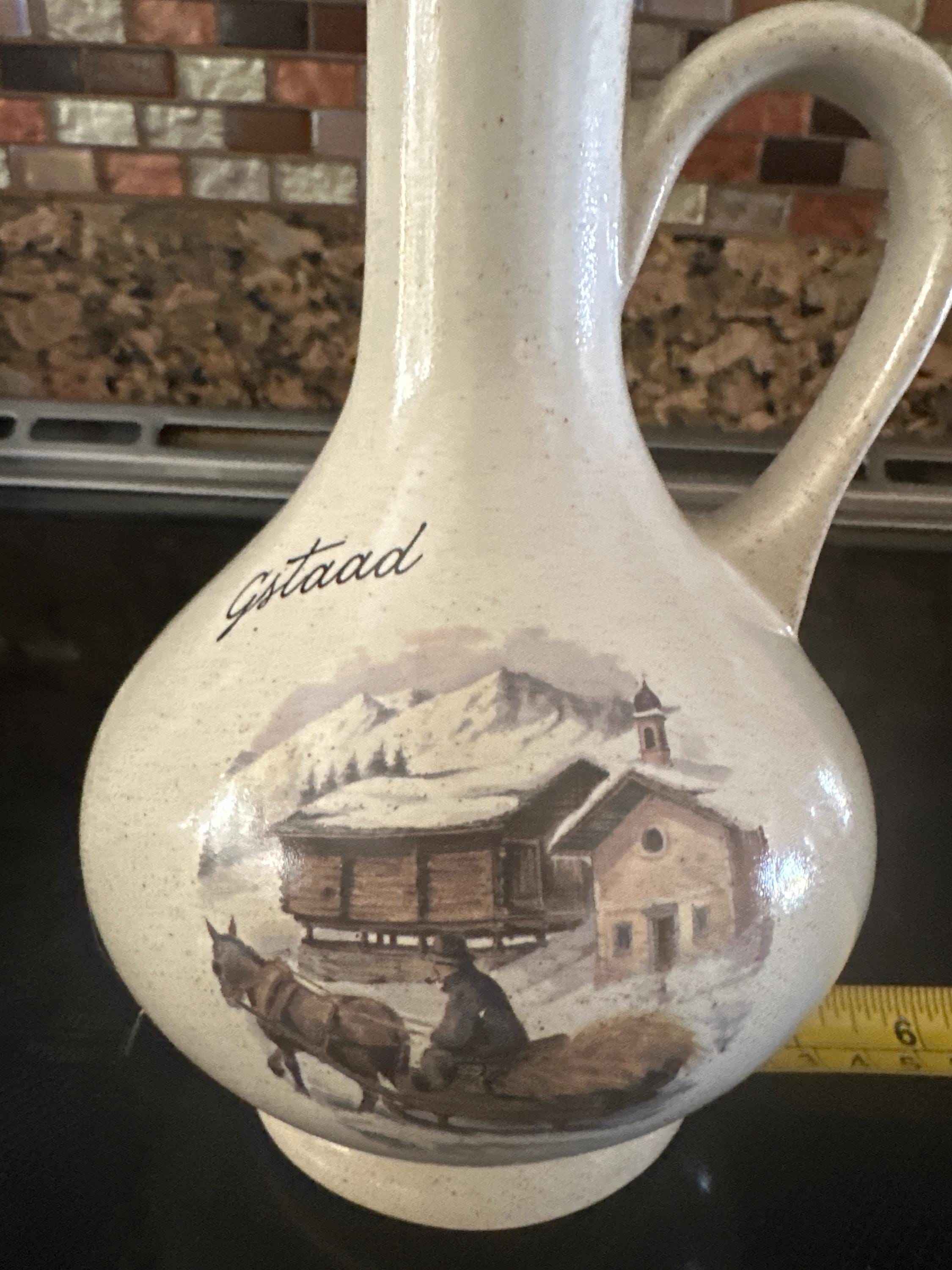 Add this authentic Swiss stoneware pitcher to your collection today—perfect as a gift or a seasonal accent. We offer careful packaging and responsive customer service to ensure your satisfaction. Limited quantities available, so don’t miss the chance to own a genuine piece of Swiss heritage.Gstaad Switzerland stoneware pitcher. Great decorative momento for you home decor. It measures 8" high x 4.5" wide. Excellent condition.