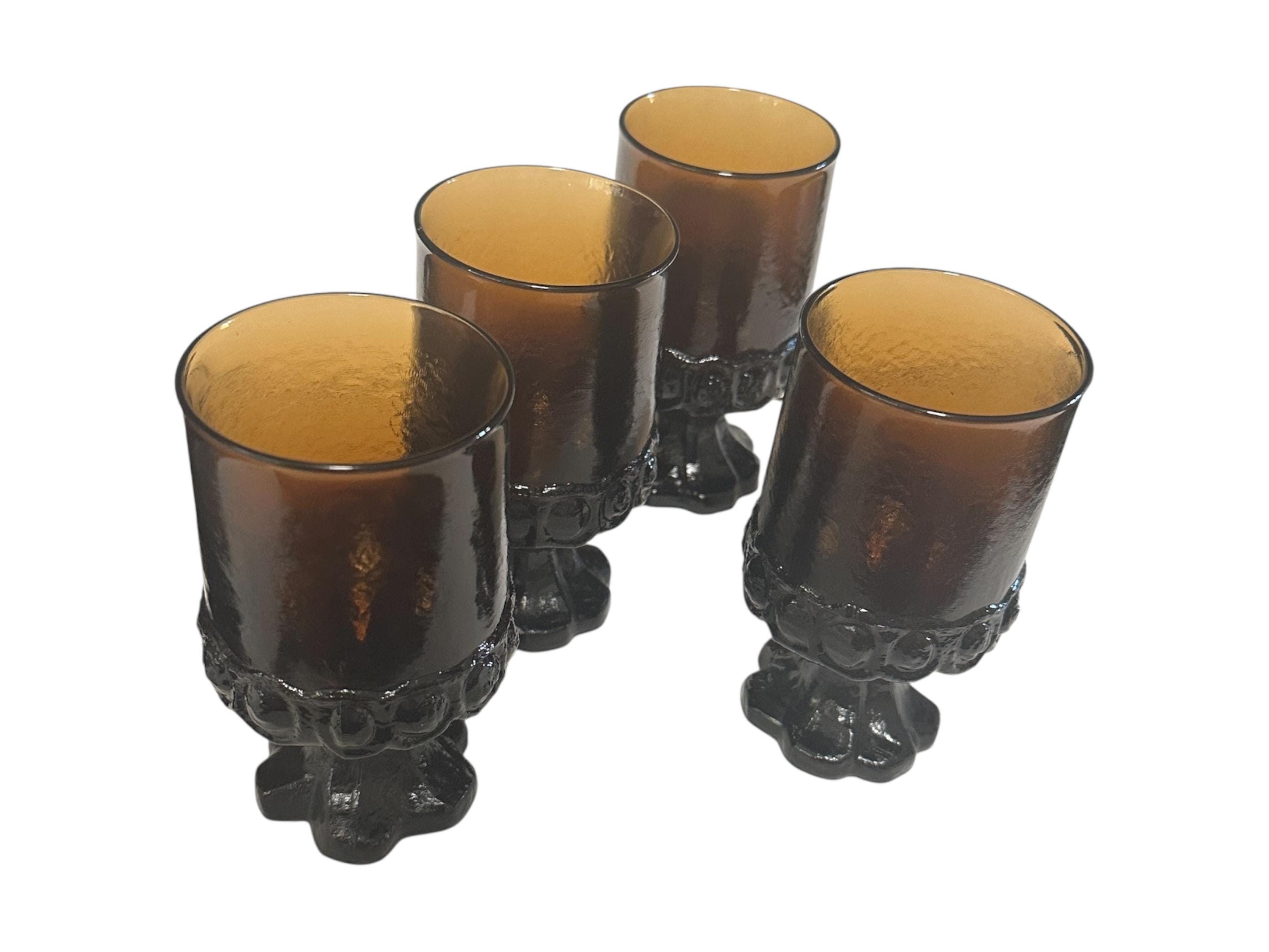 • Set of 2 Franciscan Madeira smoke brown glass tumblers from the 1970s
