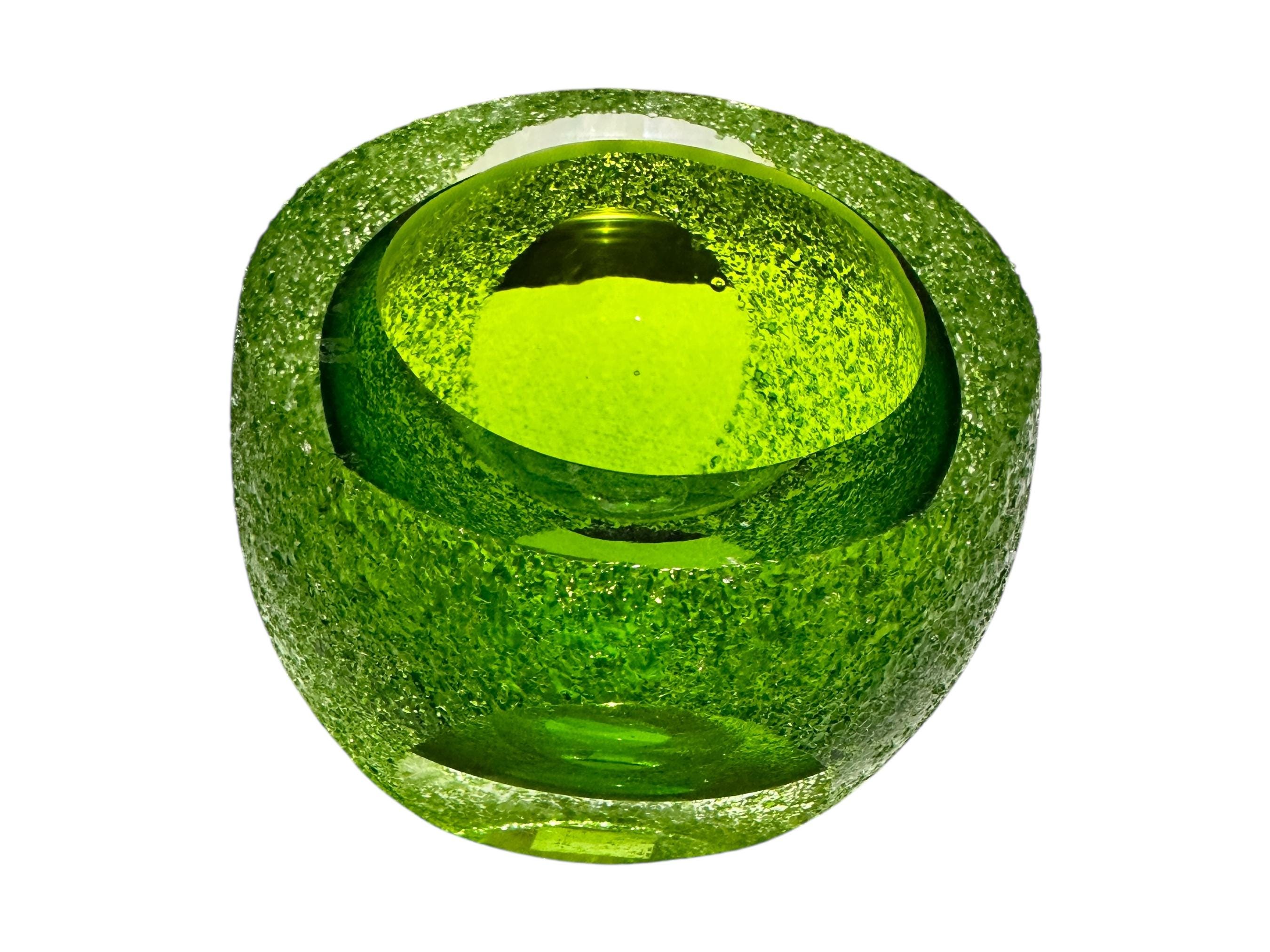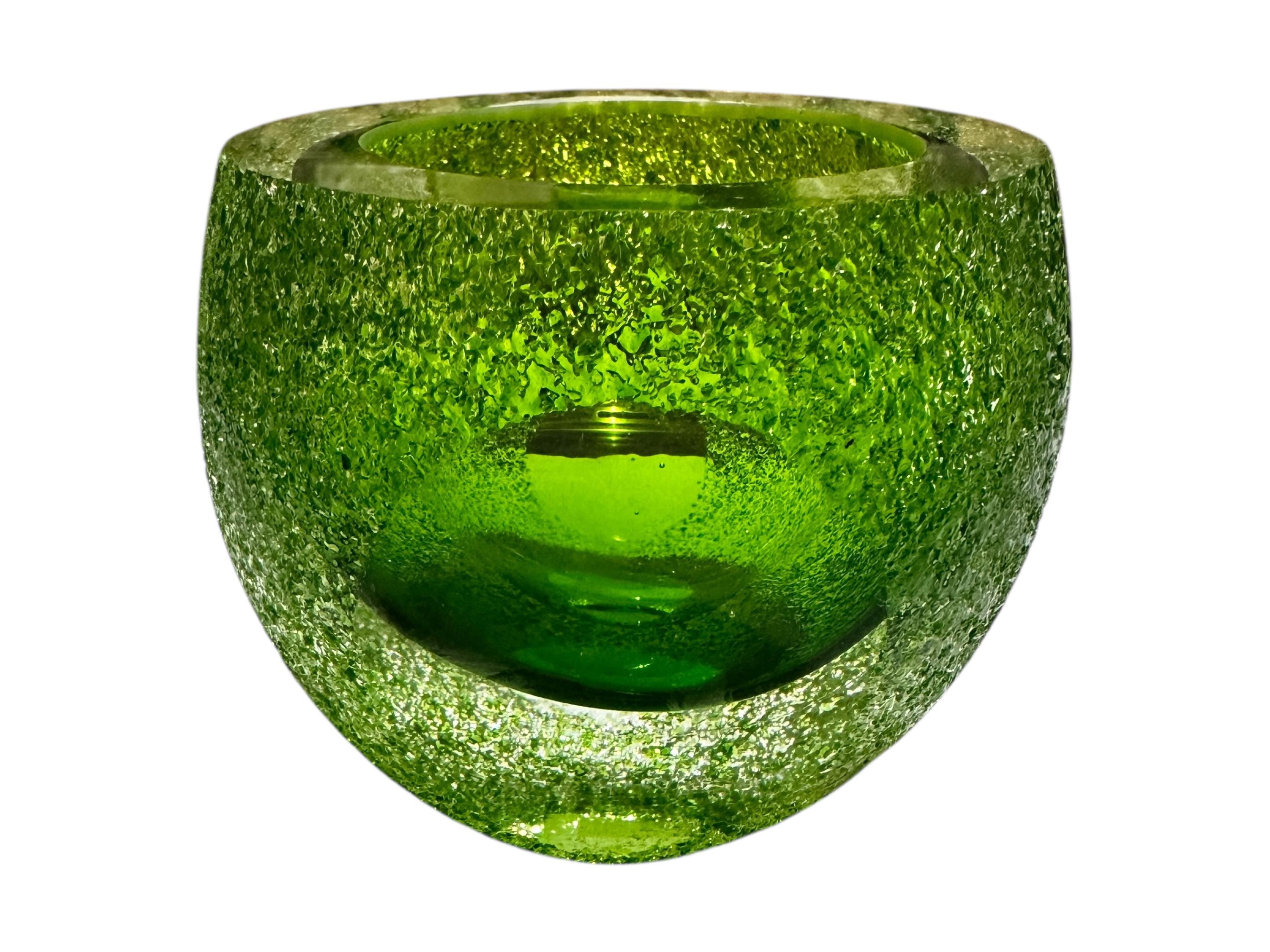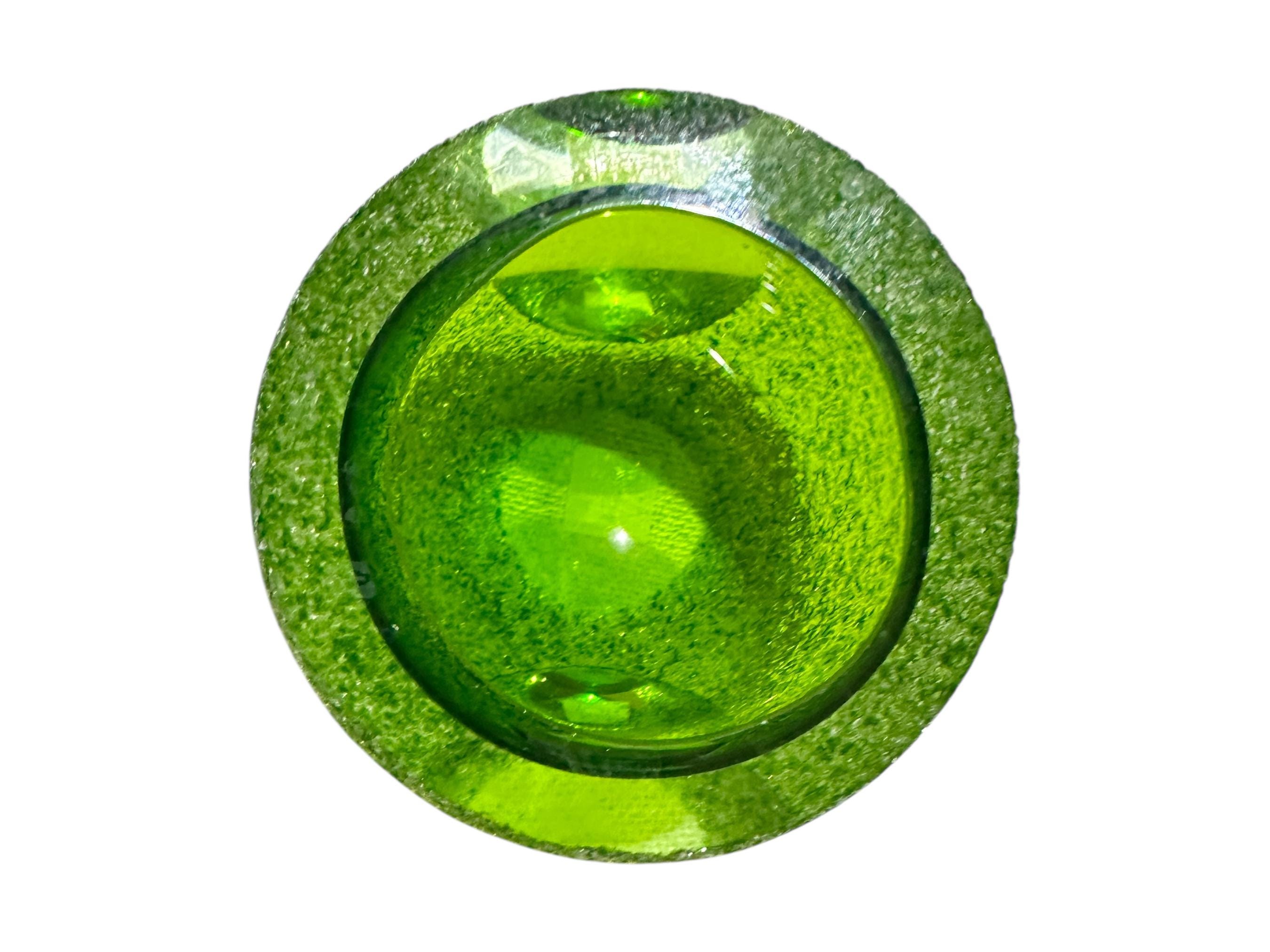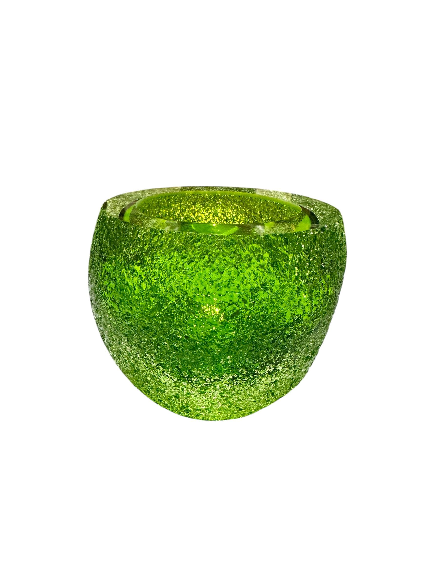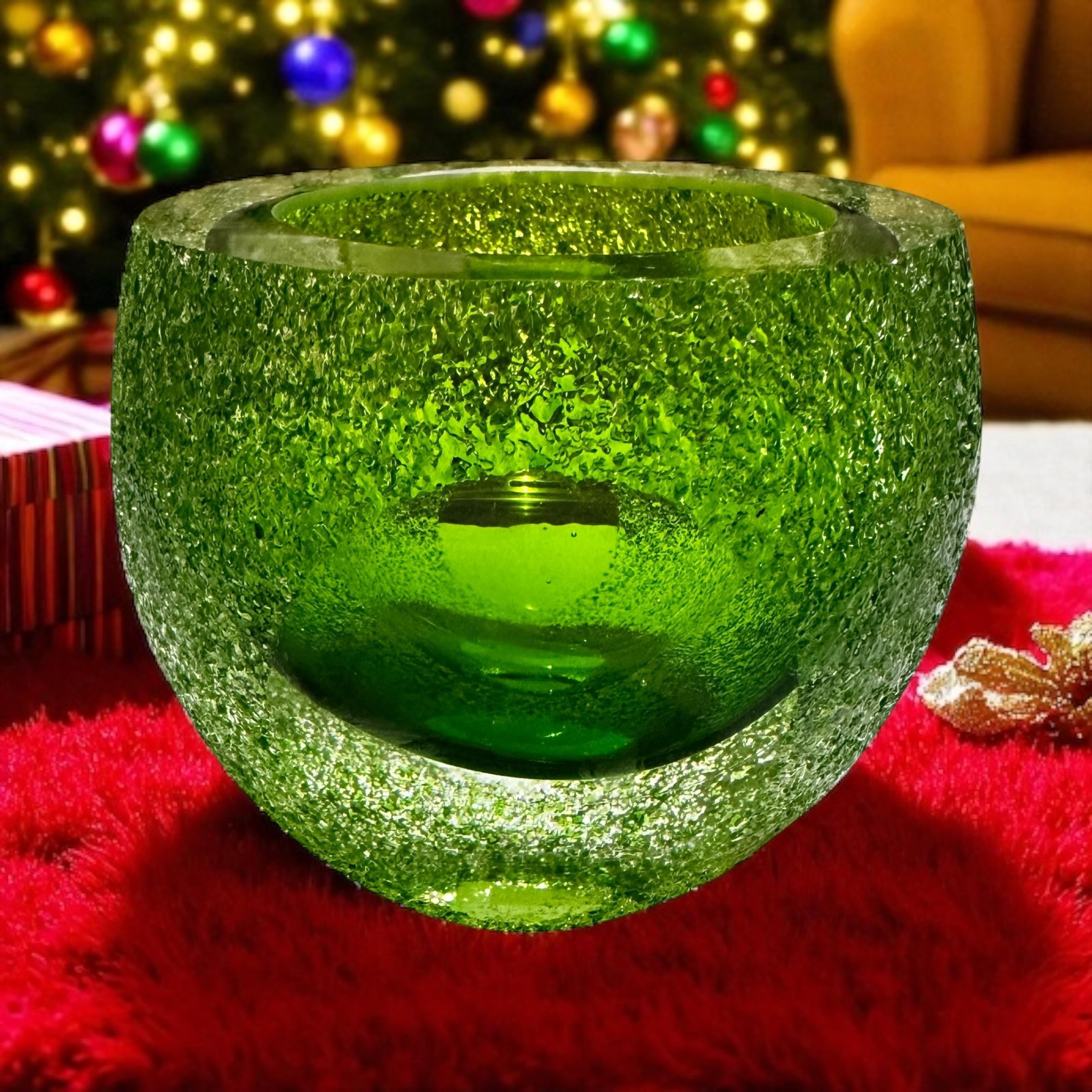 This is a Fifth Avenue Crystal frosted and sparkling green votive tea candle holder with the original sticker.
