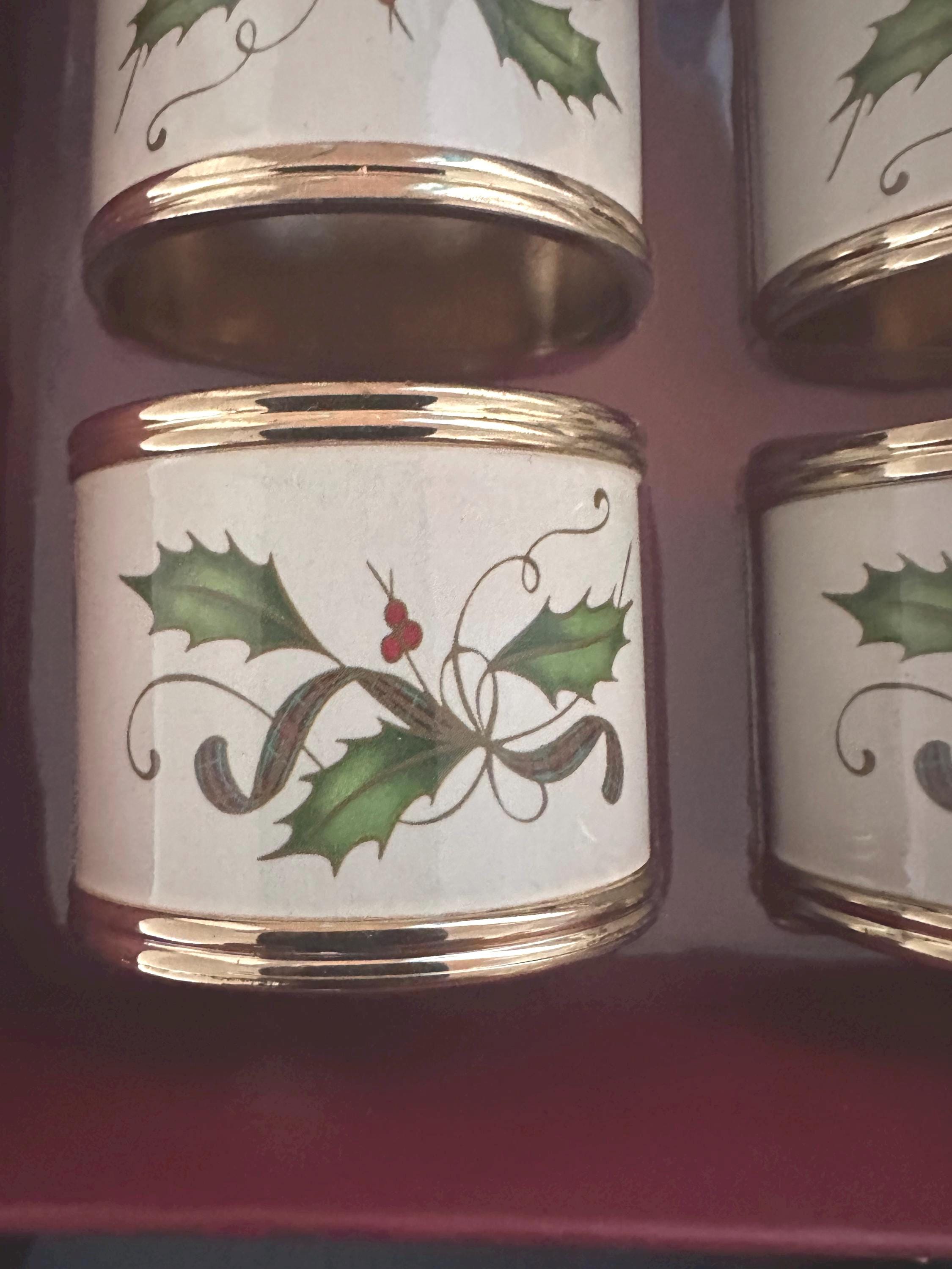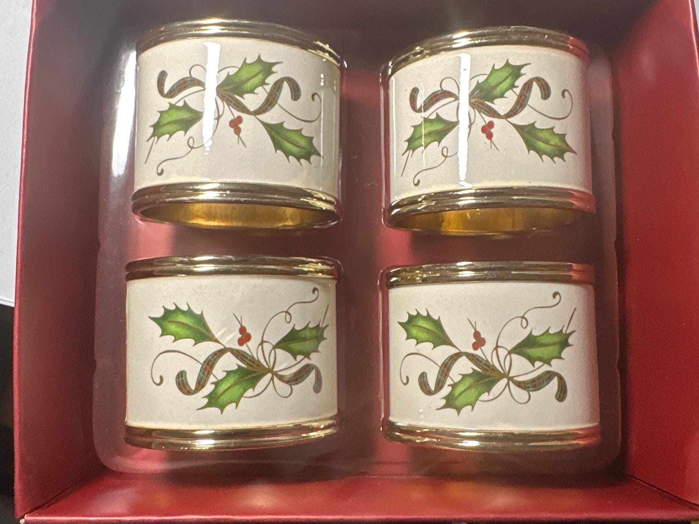 Vintage Lenox Holly Napkin Rings (Set of 4) - Christmas Table Decor