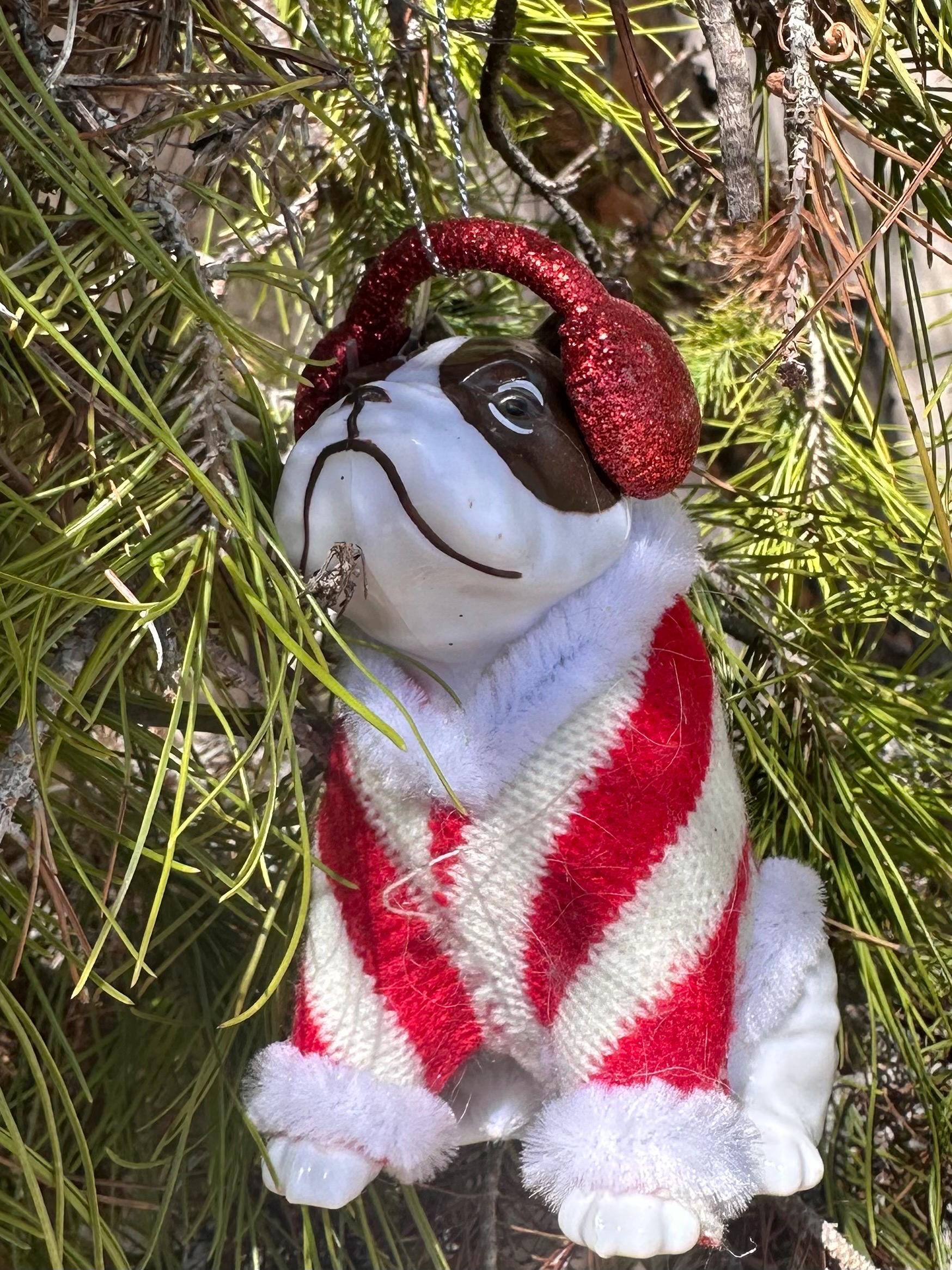 Whimsical Bulldog Christmas Ornament: Vintage Holiday Tree Decor
