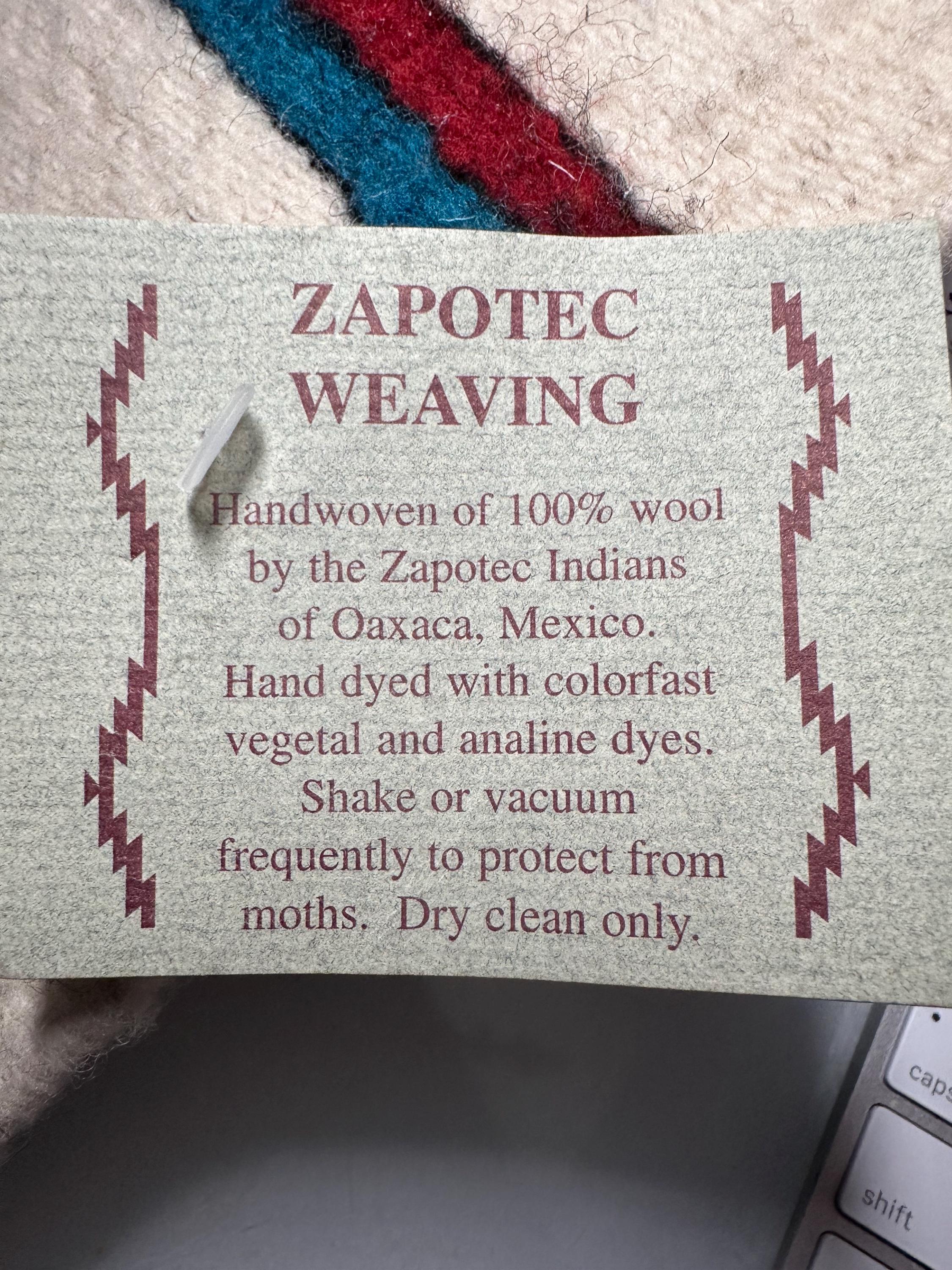 - Handwoven by Zapotec artisans in Oaxaca, Mexico