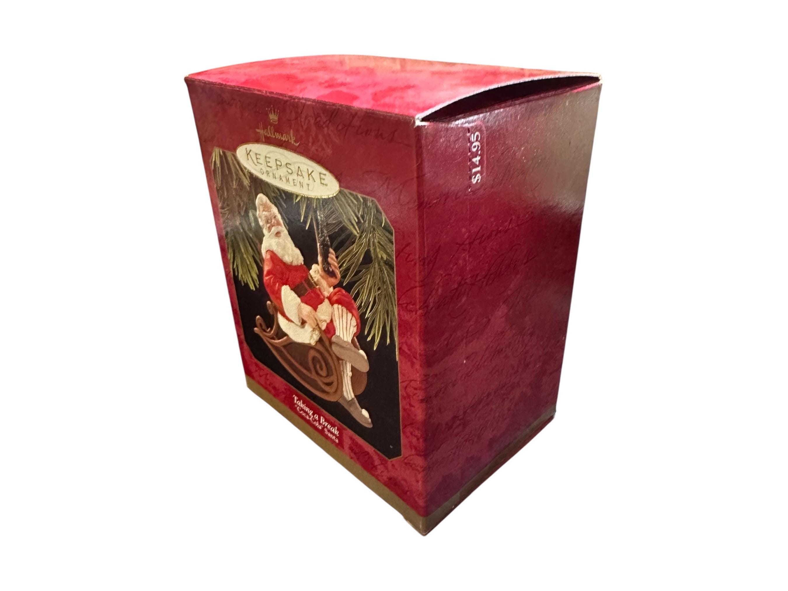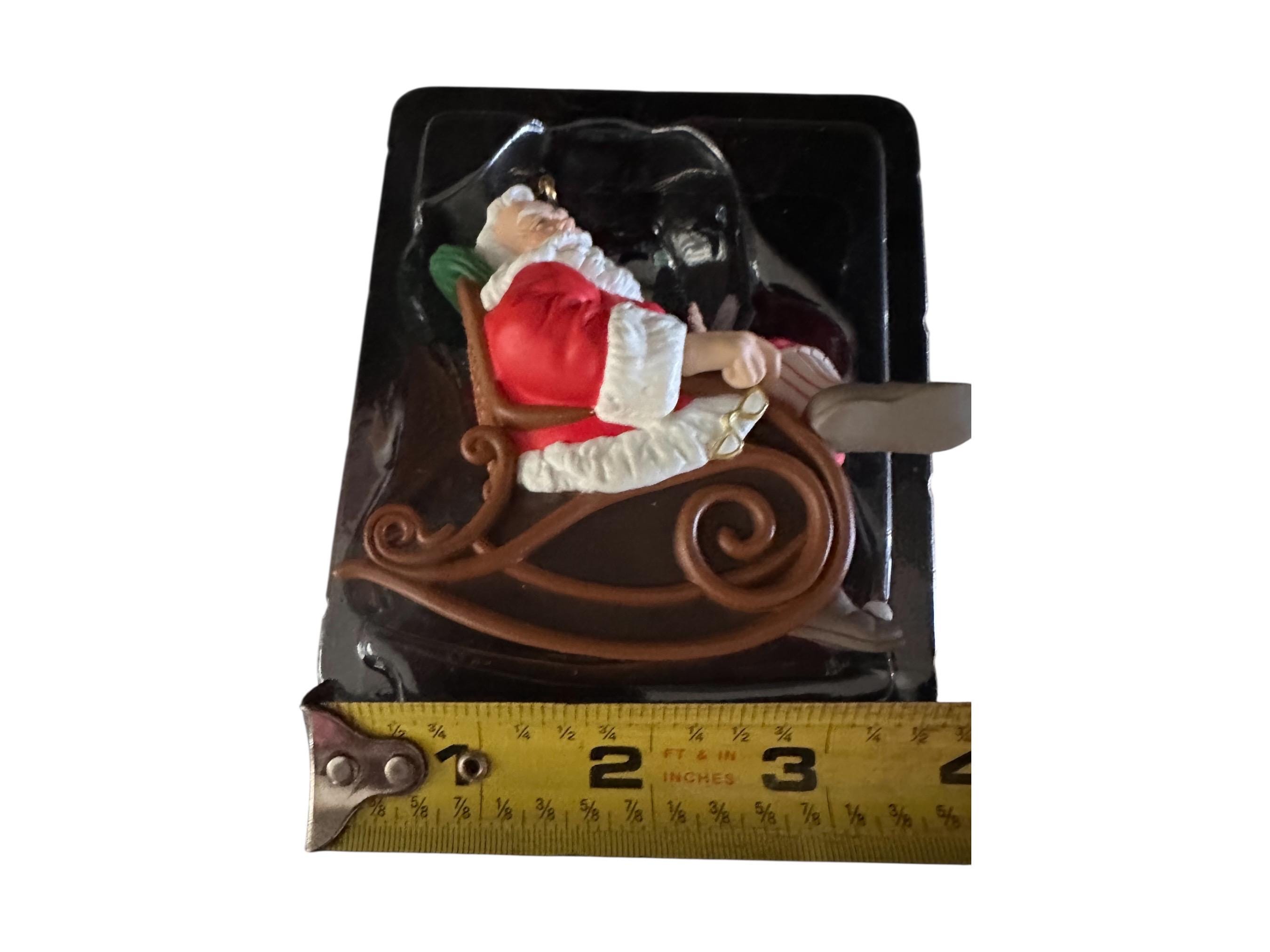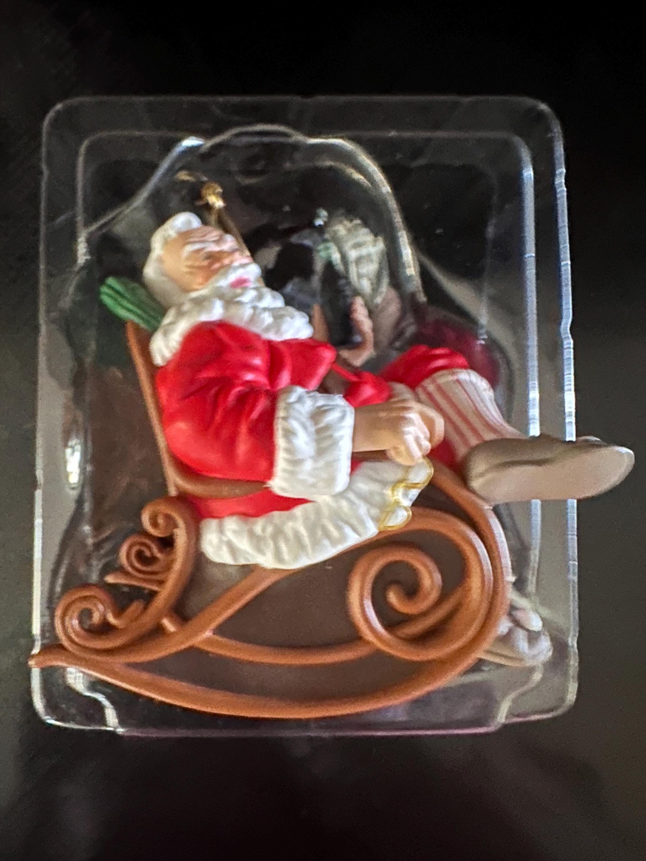 Celebrate the holiday season with this charming Christmas ornament featuring a vintage Coca Cola Santa taking a well-deserved break. A Hallmark collectible, this delightful holiday decor piece captures the nostalgic spirit of Christmas with its detailed craftsmanship and classic design. Perfect for adding a whimsical touch to your Christmas tree or holiday display, it brings warmth and cheer to any festive setting.