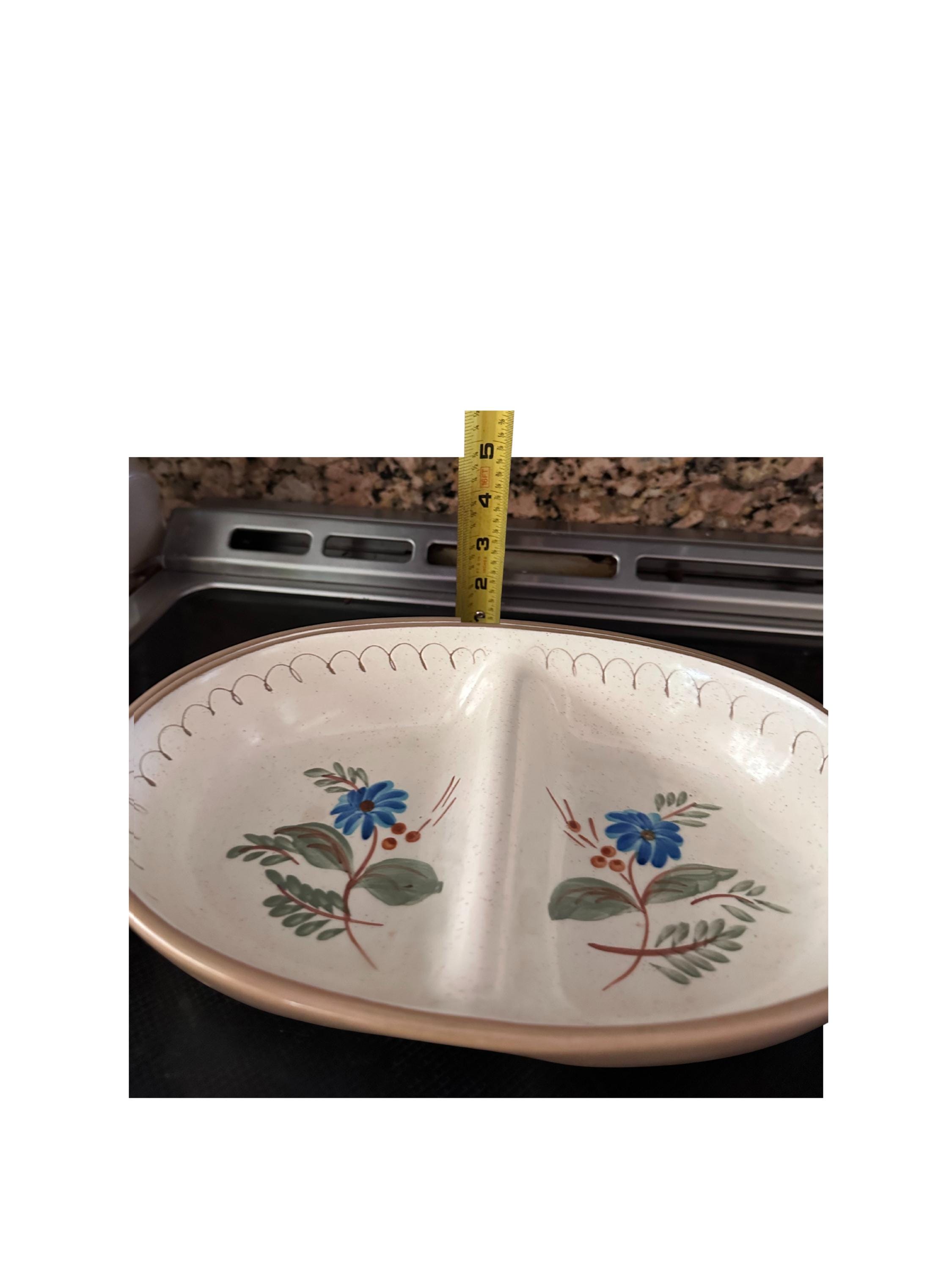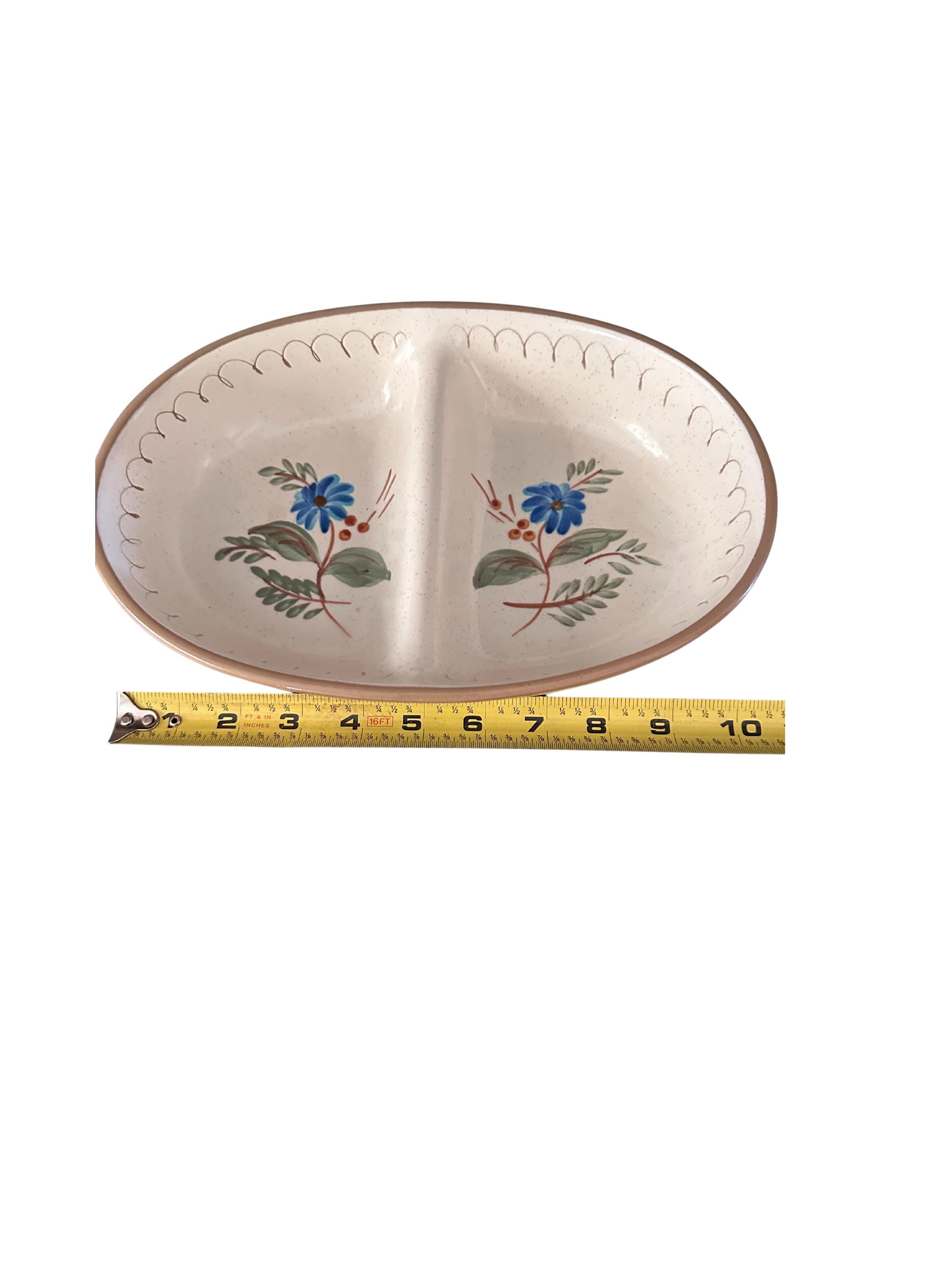 - Vintage Stangl Blue Daisy divided vegetable bowl
