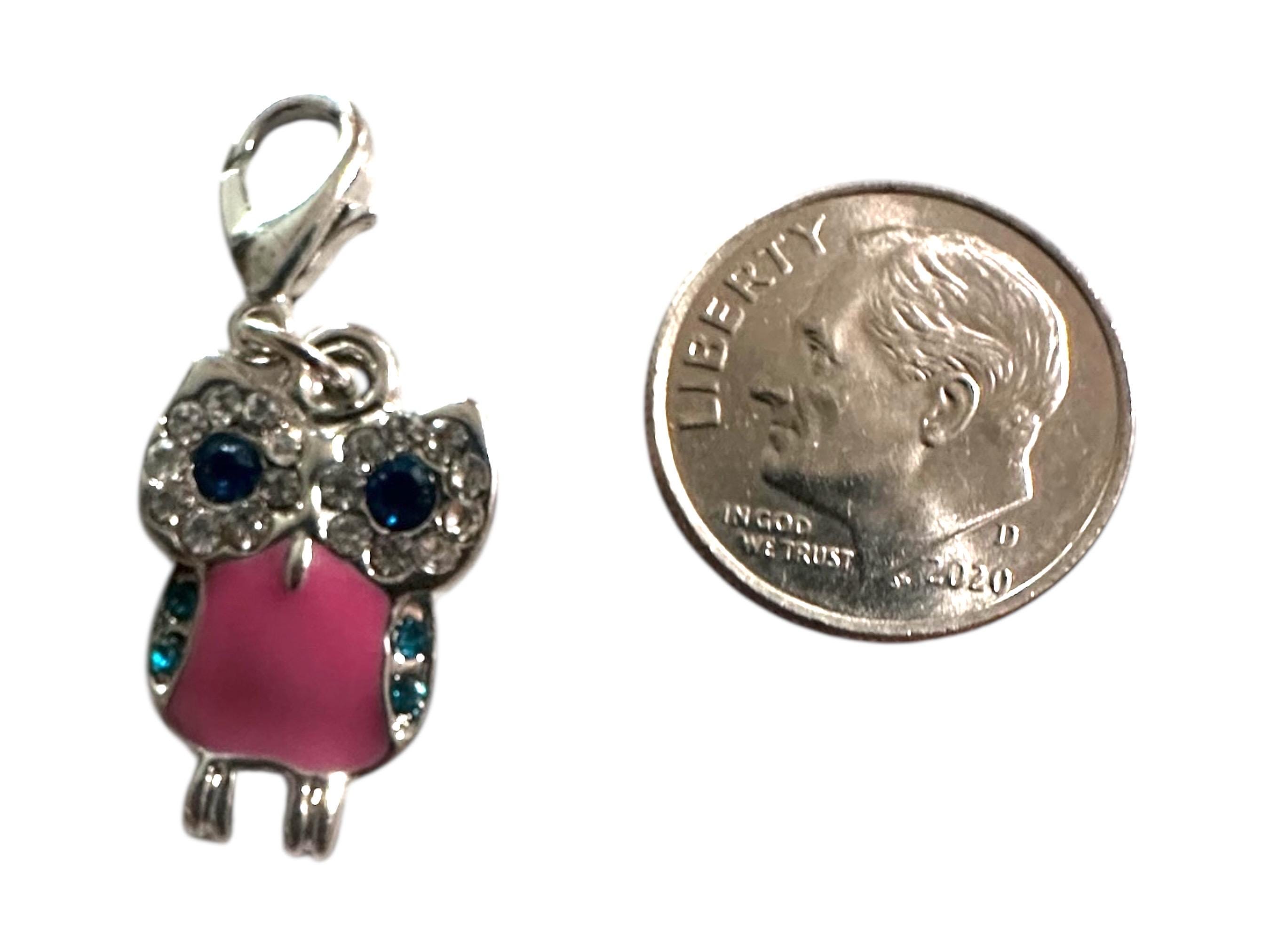 Pink Owl Pendant Charm Rhinestone Silver Tone Jewelry DIY Accessory Gift for Women
