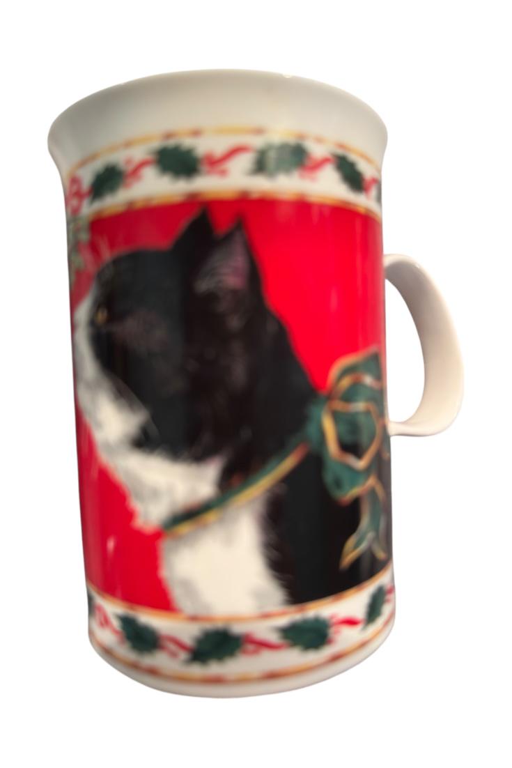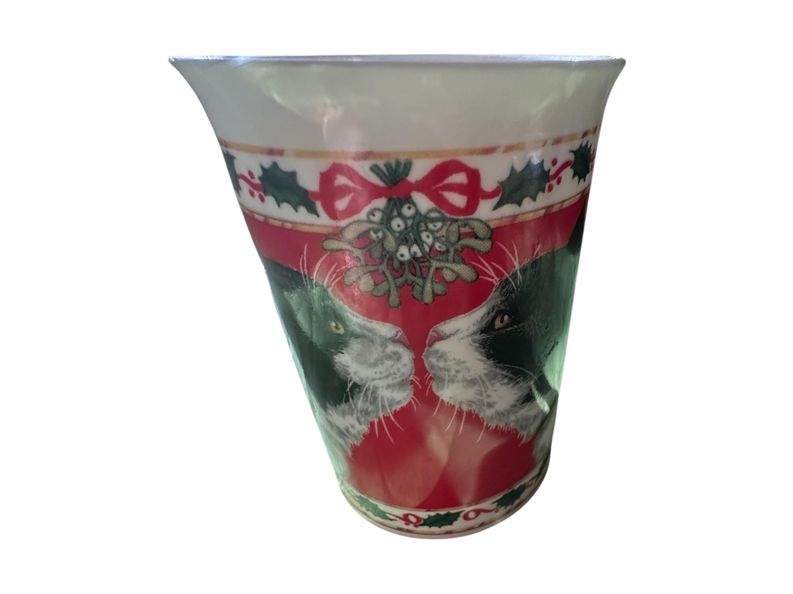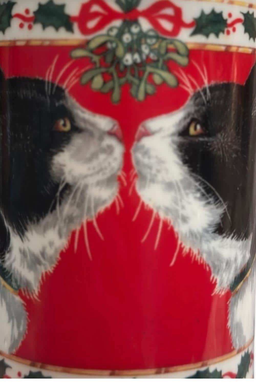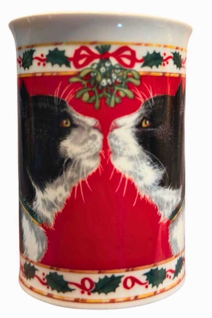 - Vintage Dunoon "Kissing Cats" design with festive mistletoe accents