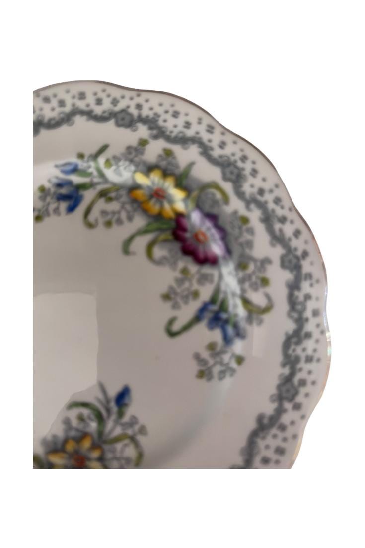 Transform your table setting with this exquisite blue china plate display featuring a vintage tea saucer design and elegant gem pattern. This stand-alone piece is perfect as part of a fine china tea set or as a striking dining table decor item, showcasing the timeless beauty of a Royal Albert bread plate.