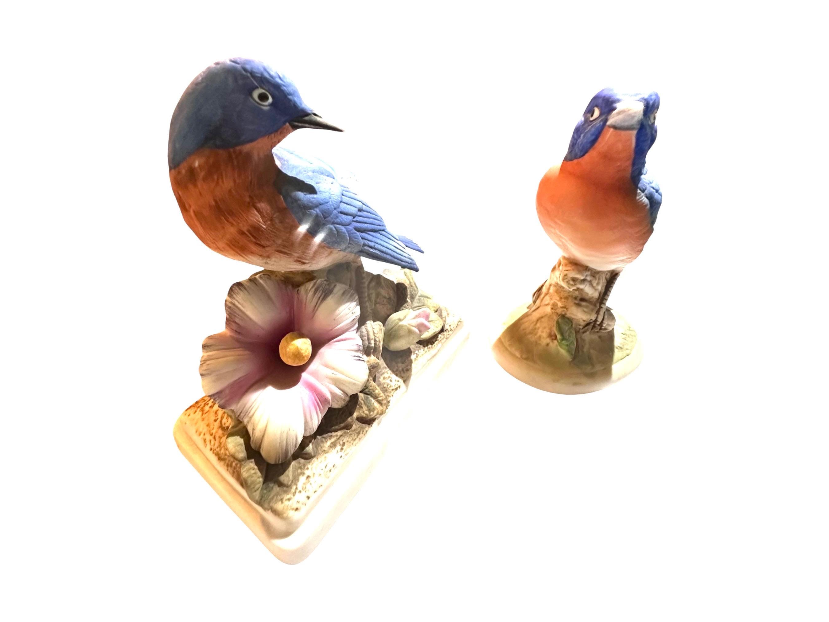 Set of 2 Blue Bird Figurines by Lefton China, Vintage Ceramic Bird Statues, Spring Decor, Collector’s Nature-Inspired Home Accent