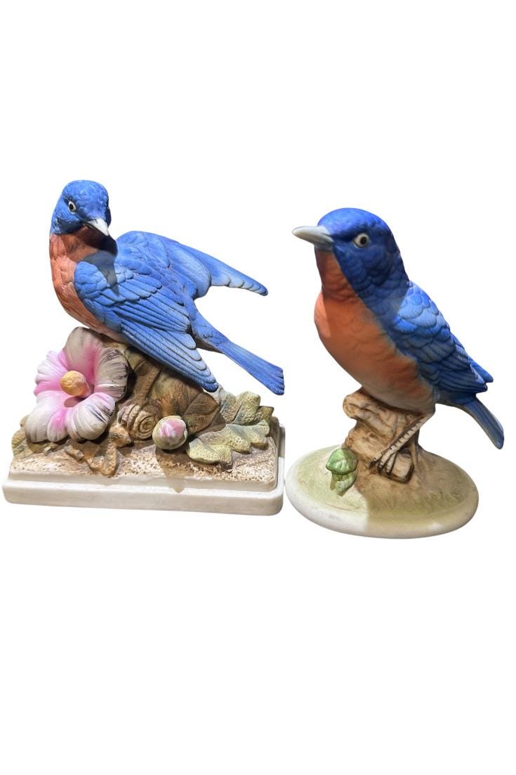 * Two delightful vintage bluebird figurines crafted from high-quality ceramic with hand-painted details