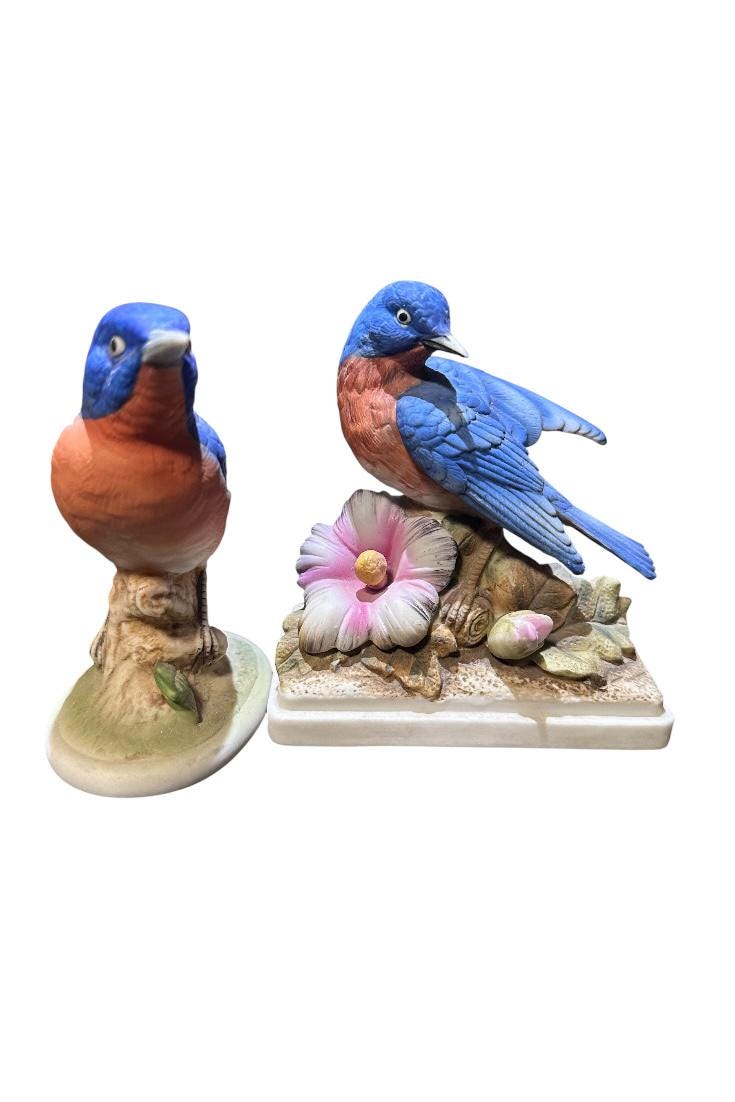 Vintage Bluebird Figurines Home Decor Shelf Display Cottage Core Blue Bird