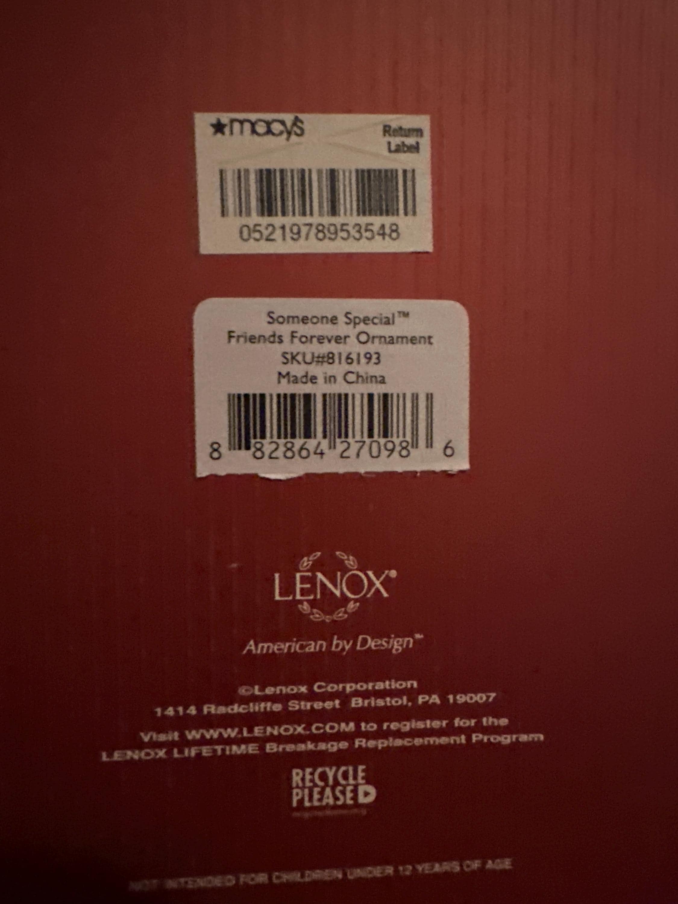* Authentic 2001 Lenox Christmas ornament in pristine condition, complete with original box (box shows some wear due to age)