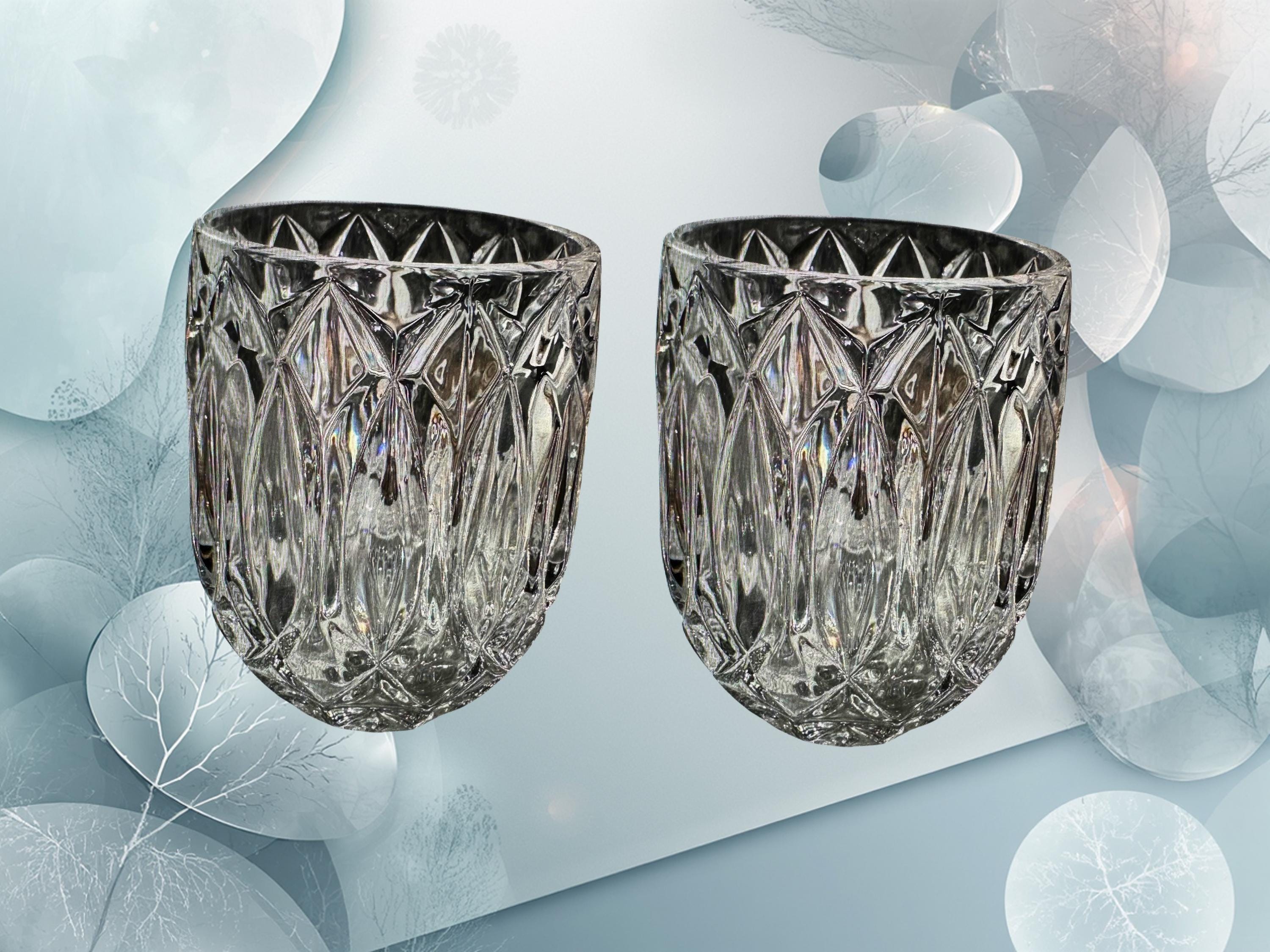 Elevate your bar experience with these vintage whiskey glass set that serve as stunning bar decor pieces for your home bar. These lowball rocks glasses belong to the Mikasa Saxon tumbler drink collection, showcasing classic barware design that makes them perfect gift ideas.