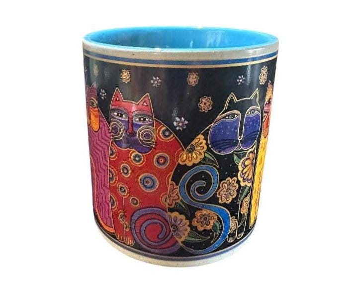 Start your mornings with a splash of color and feline charm with this Laurel Burch Porcelain Feline Cats Ceramic Coffee Mug. Perfect for cat lovers and fans of vibrant vintage designs, this adorable cat mug showcases Laurel Burch’s signature whimsical style and bold, lively colors. Whether you're sipping your favorite brew or looking for a unique gift for a coffee enthusiast, this mug is sure to brighten your day.