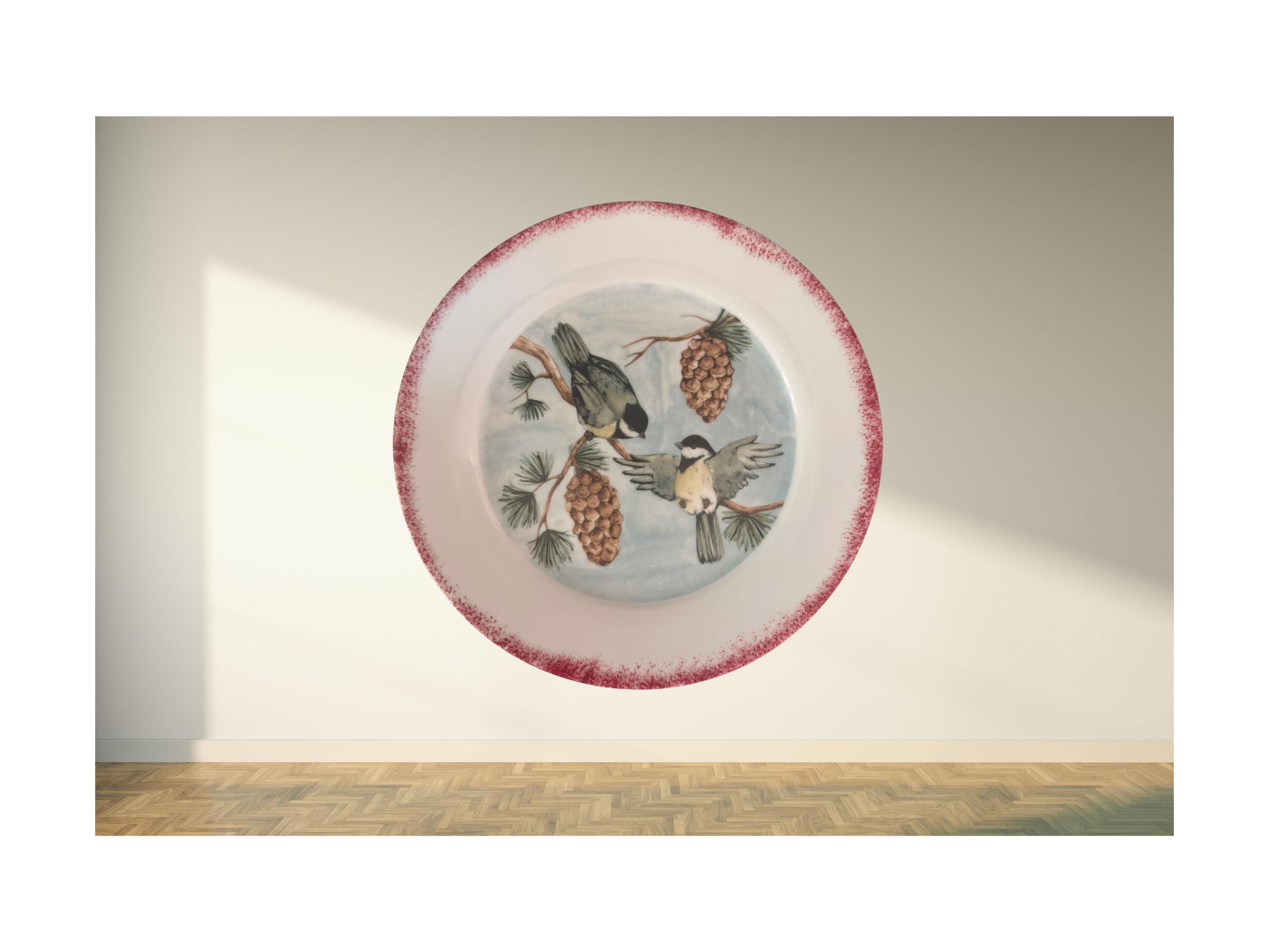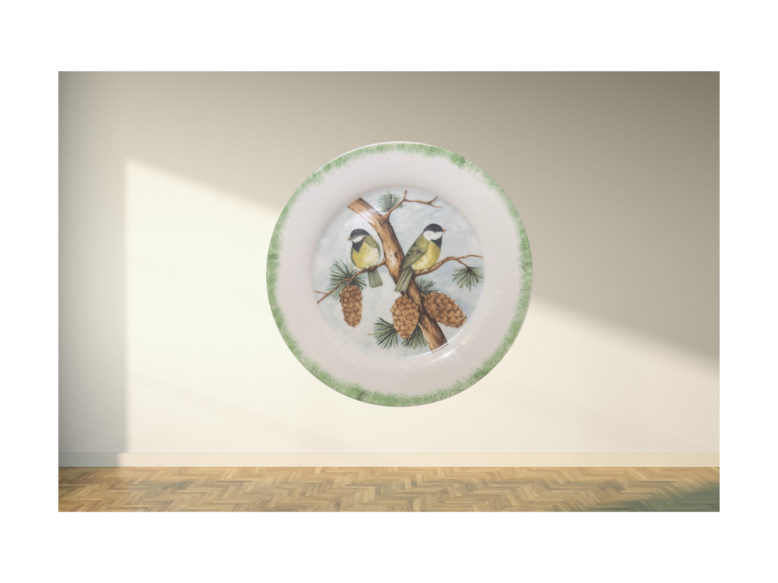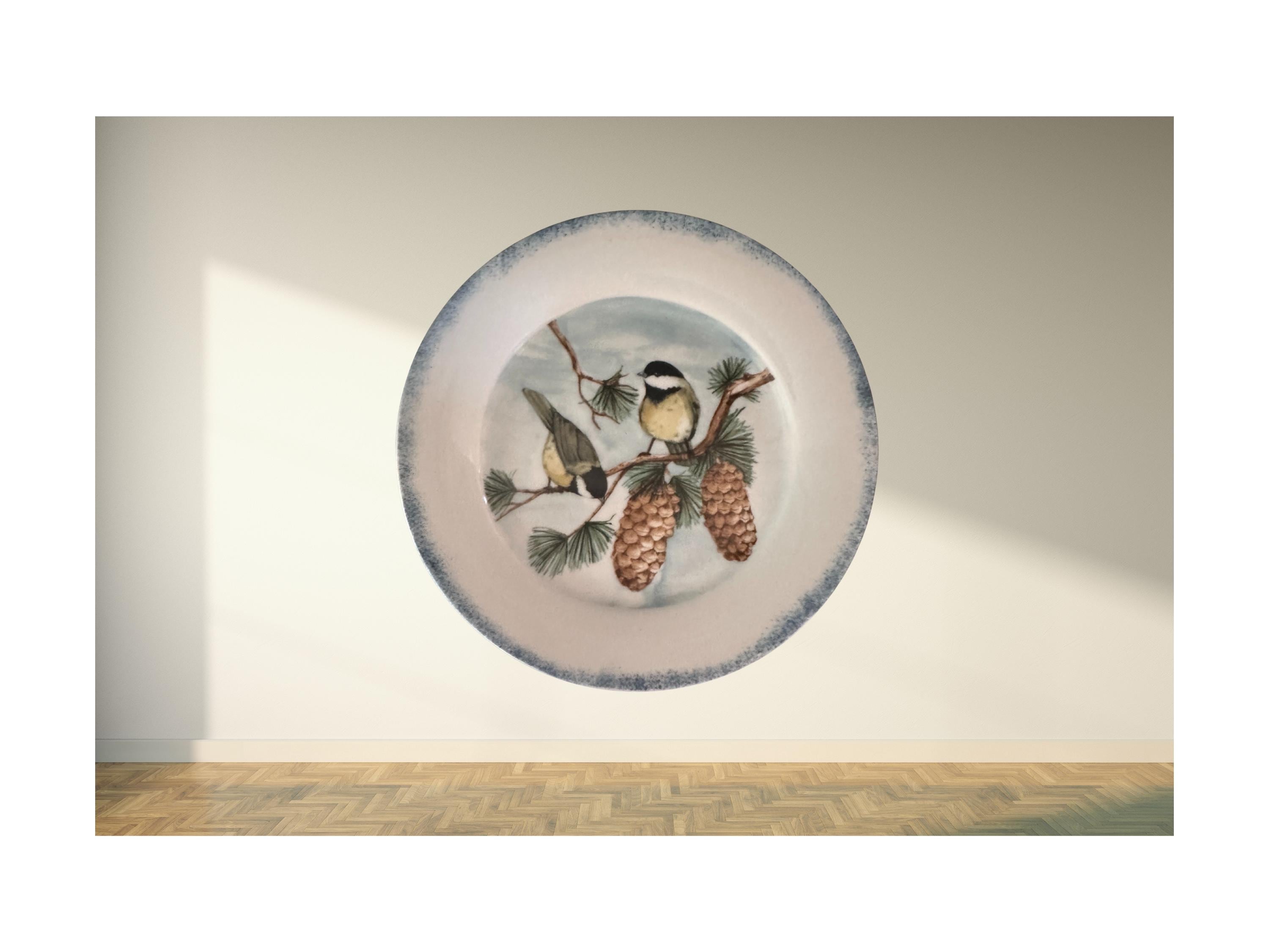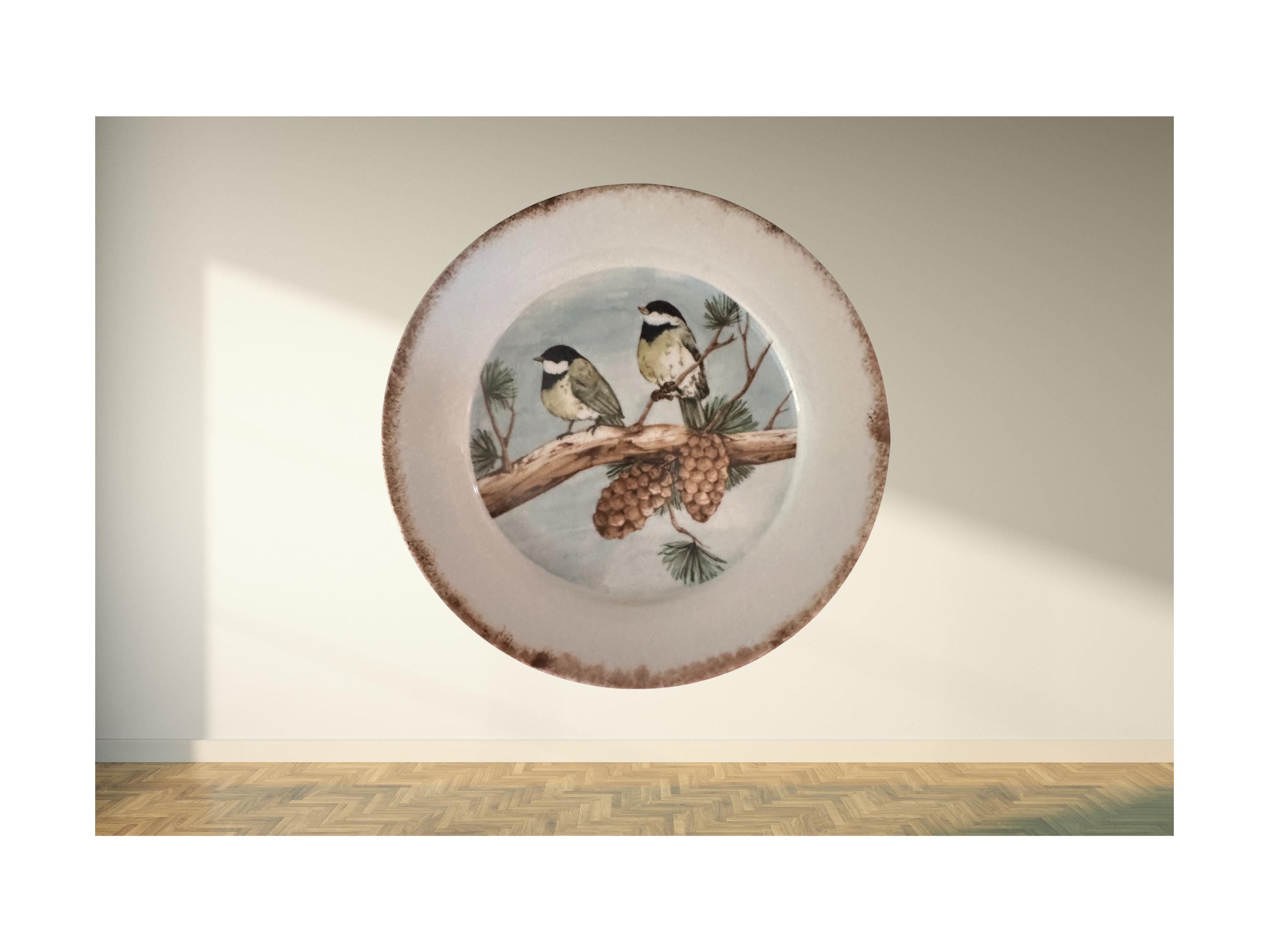 Add a touch of nature-inspired charm to your home decor with this beautiful set of four Chickadee Birds Porcelain Decorative Wall Plates. Perfect for bird lovers and those seeking a unique accent piece, these charming plates showcase hand-painted chickadee and finch birds amidst pinecones, capturing the delicate beauty of woodland wildlife.