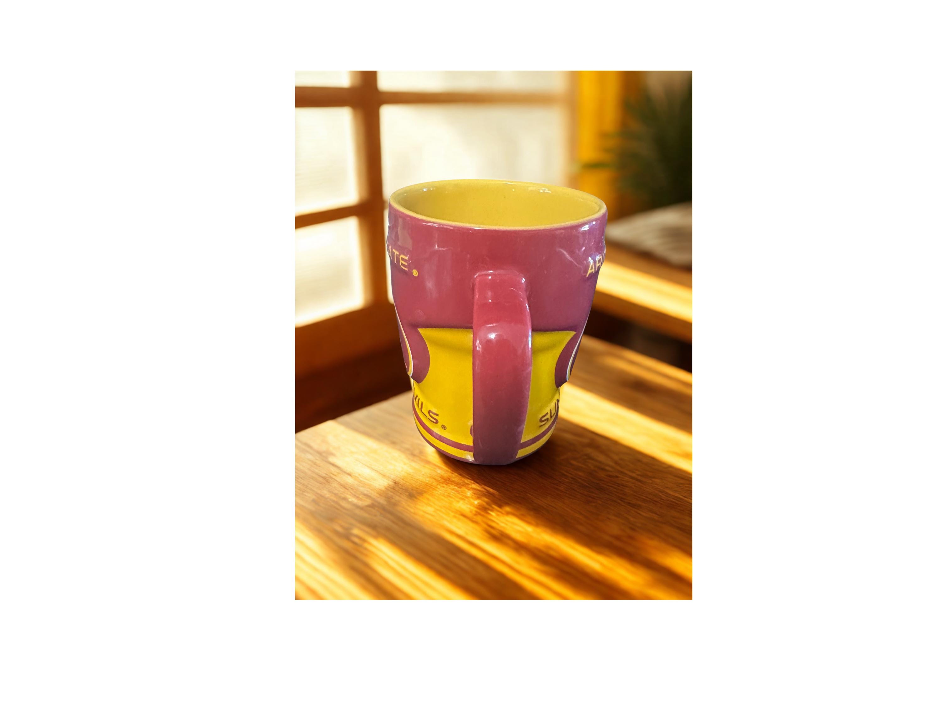 Crafted from high-quality ceramic, this mug is designed to withstand everyday use while showcasing your pride. The bright maroon and gold colors capture the spirit of the Sun Devils, making every sip a celebration of your alma mater or school pride.
