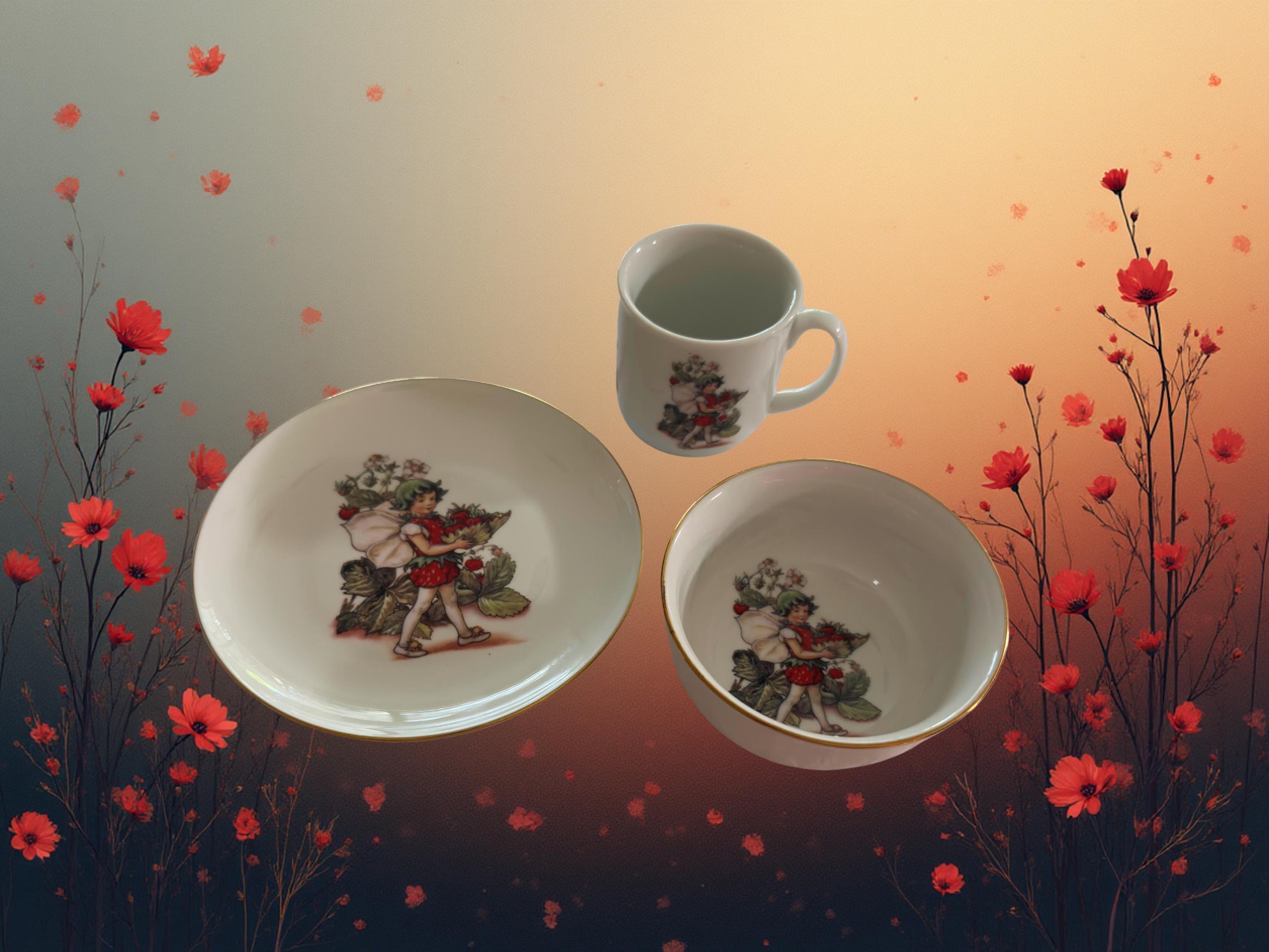 Reutter Porzellan Strawberry Flower Fairy Porcelain Set 3 Pieces