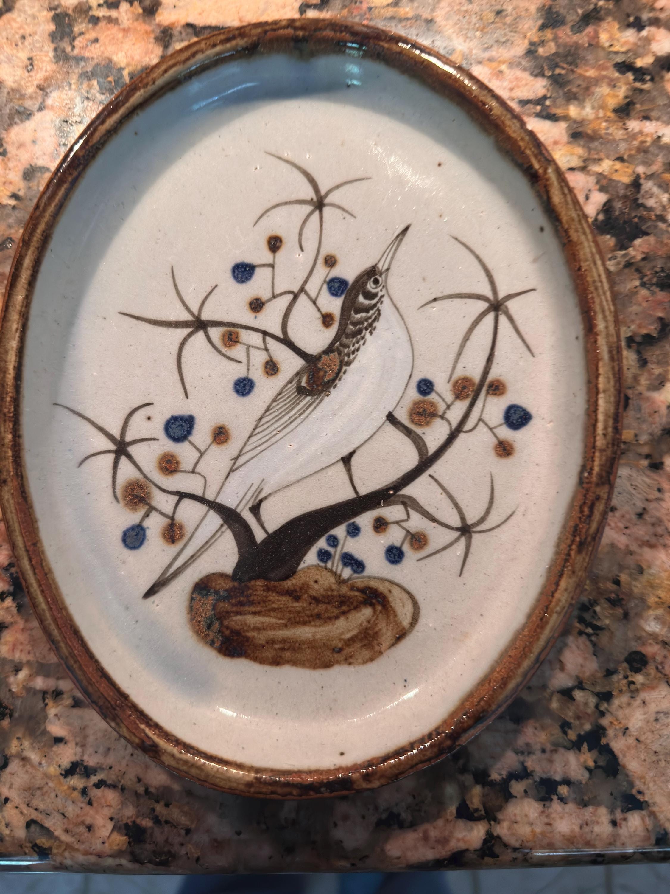 Talavera Mexican Folk Art Pottery Plate | Hand Painted Dish with a Bird