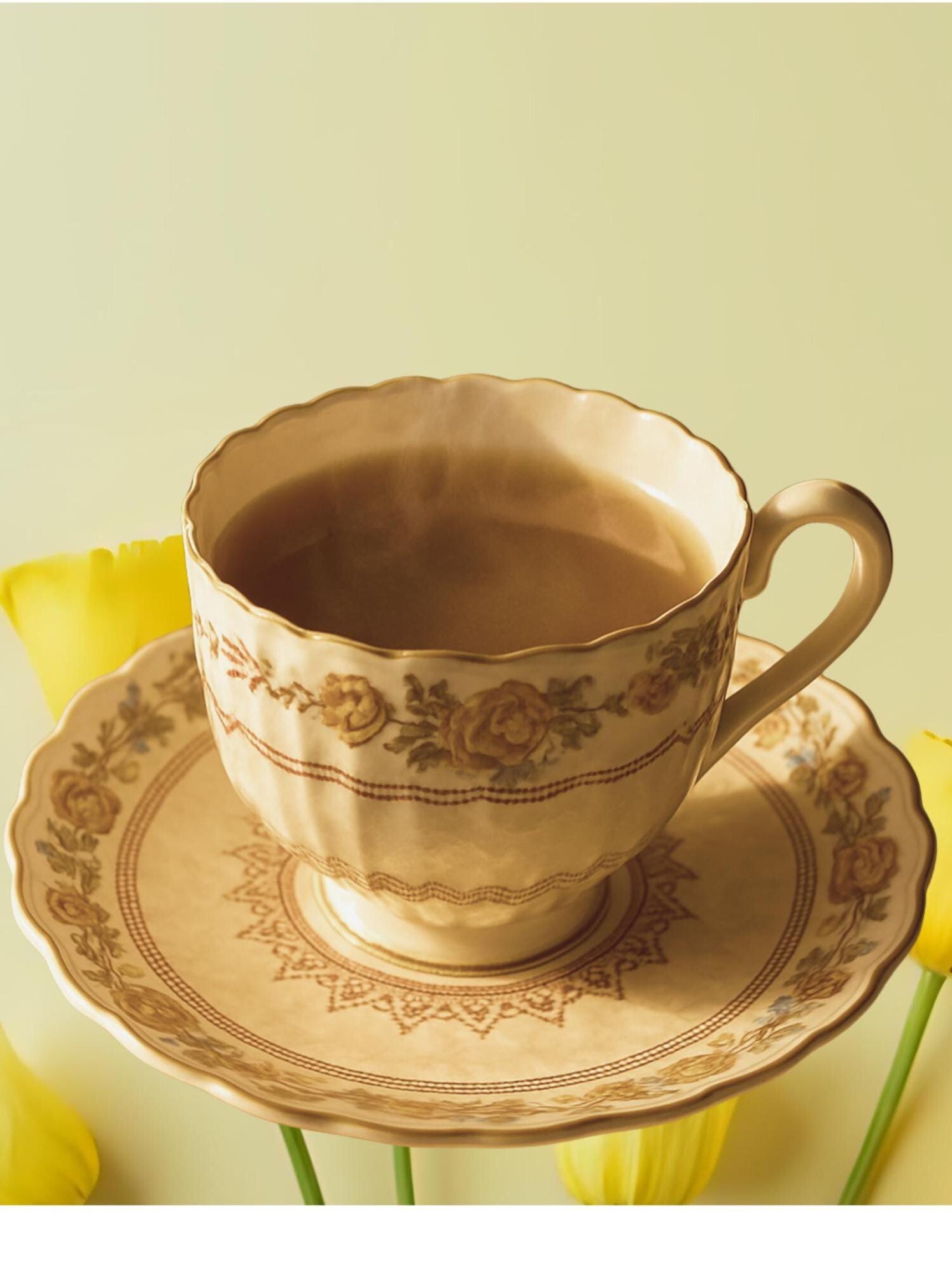 - Pattern: Buttercup design with floral motifs