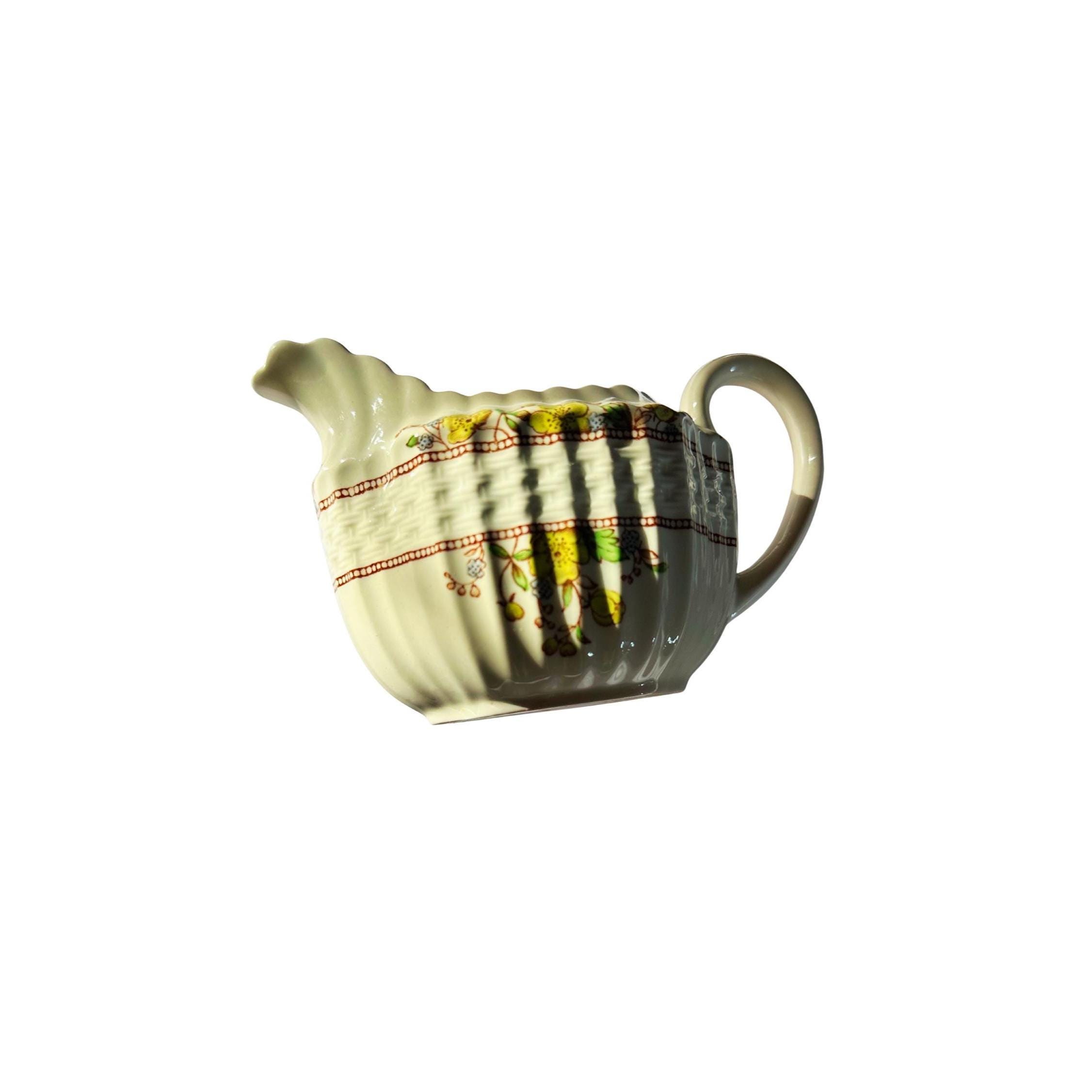 Add a touch of vintage charm to your collection with this exquisite Copeland Spode Buttercup Creamer featuring the iconic mid-century floral china design. Crafted from durable earthenware, this oval-shaped sugar bowl showcases the beloved Buttercup pattern with delicate buttercup flowers, complemented by fluted rims and an embossed wicker weave background that exudes timeless elegance. Perfect for serving your favorite sugars or as a charming decorative piece, this piece embodies classic mid-century style with a floral flair.