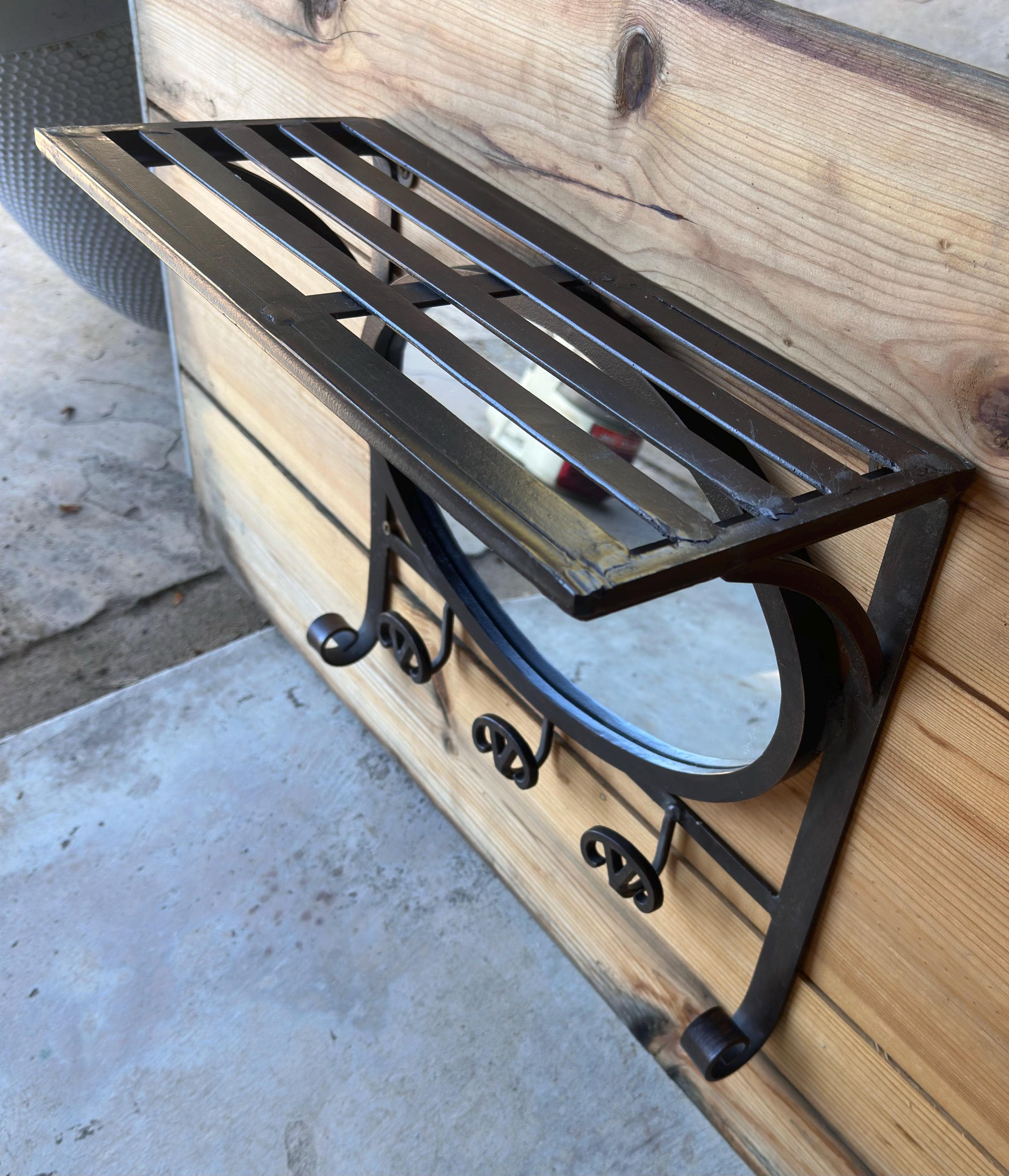 Steel Mirrored Hat Wall Hanger Rack Shelf with Hooks Vintage Western Style Rustic Metal