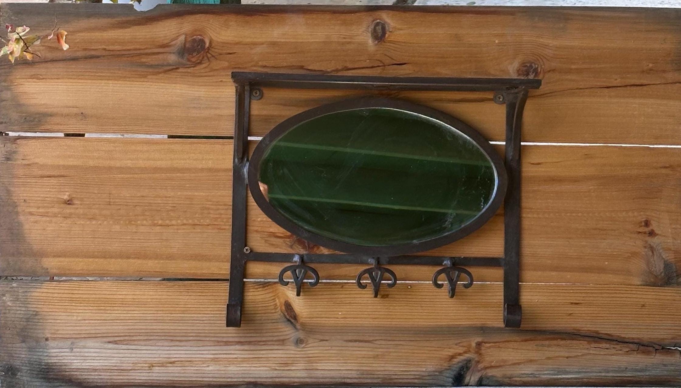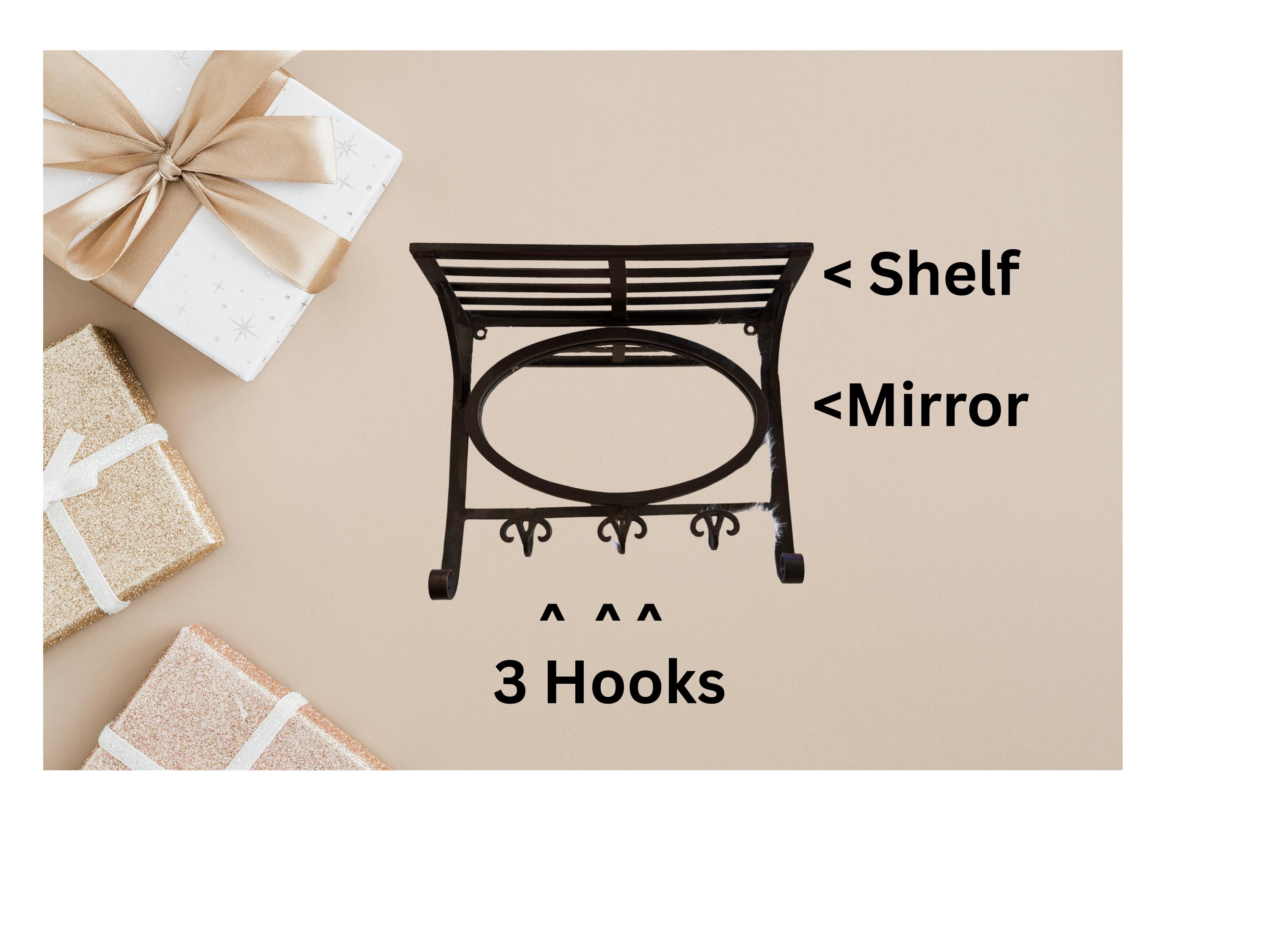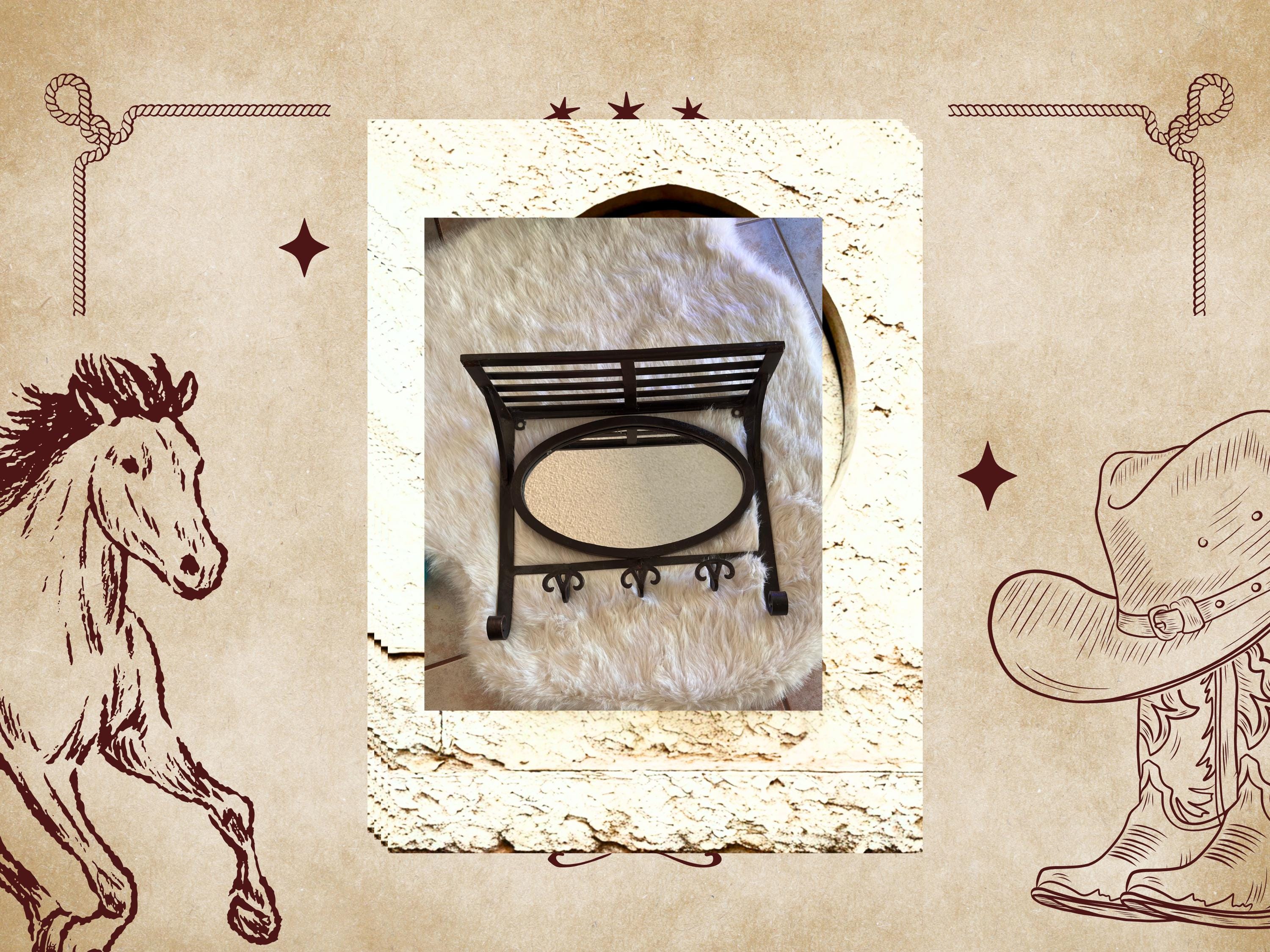 Made from durable steel with a rustic finish, this sturdy wall hanger offers an attractive and practical solution for your hat and accessory storage needs. Its vintage western design features a mirrored top shelf that adds a stylish touch, along with multiple hooks for hanging hats, coats, or other items. Whether you're decorating a rustic cabin or adding character to your entryway, this metal wall hanger is sure to be a statement piece.