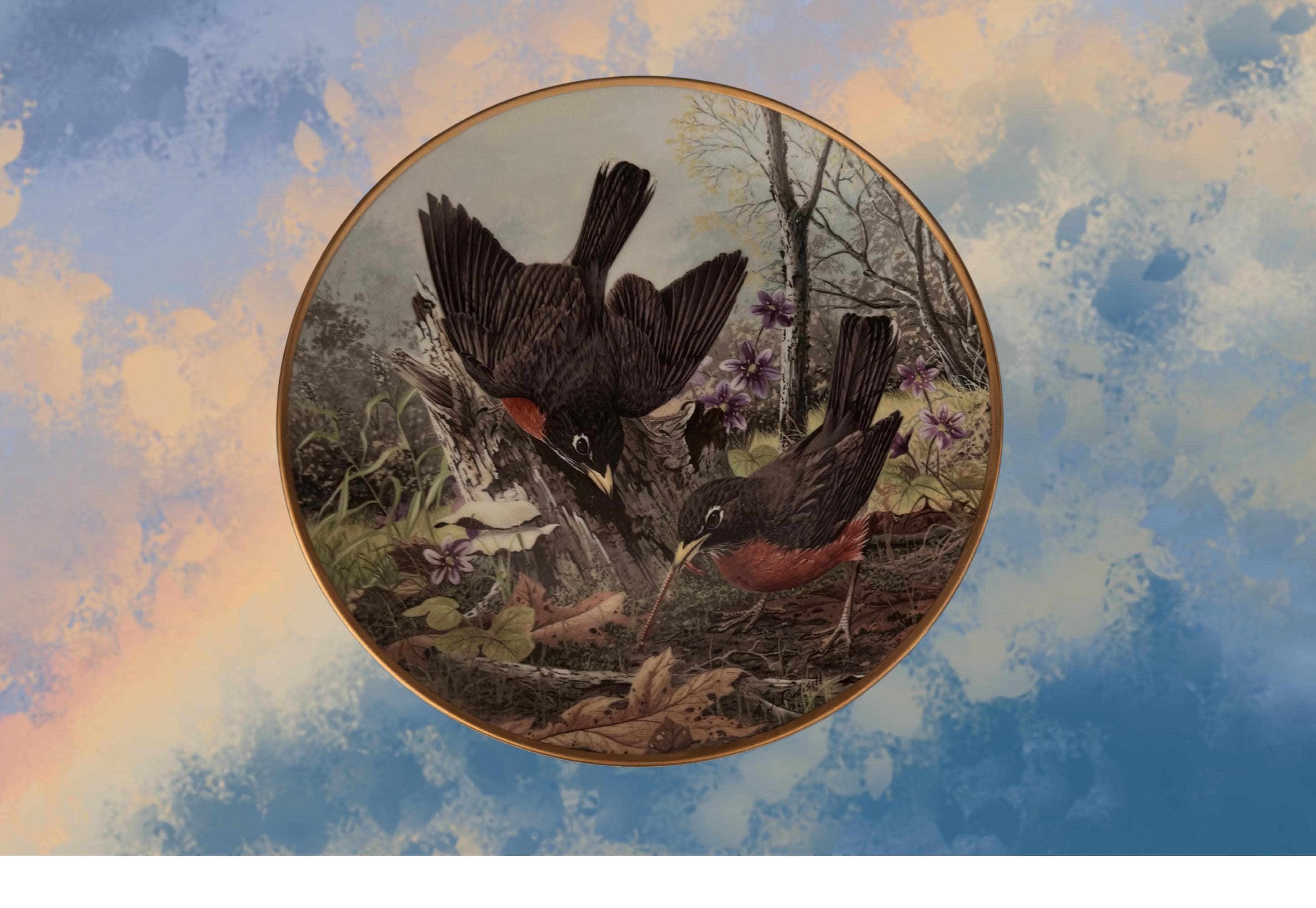 Celebrate the beauty of nature with this stunning Robin Bird Collector Plate featuring A. J. Rudisill artwork, proudly presented by the National Audubon Society. This intricately detailed plate captures a lively robin hunt for food, showcasing the vibrant energy of these beloved birds in their natural habitat. Perfect for bird enthusiasts, collectors, or as a charming decorative piece, this plate brings a touch of the outdoors into your home.