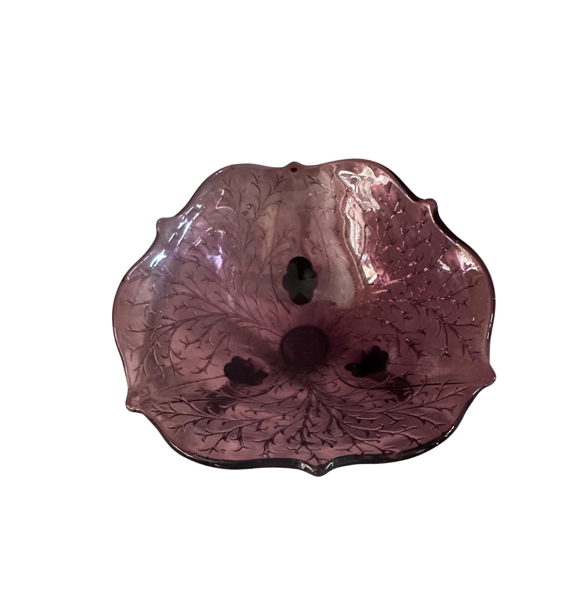 Fenton Art Glass Purple Amethyst Bowl Silvertone Wisteria