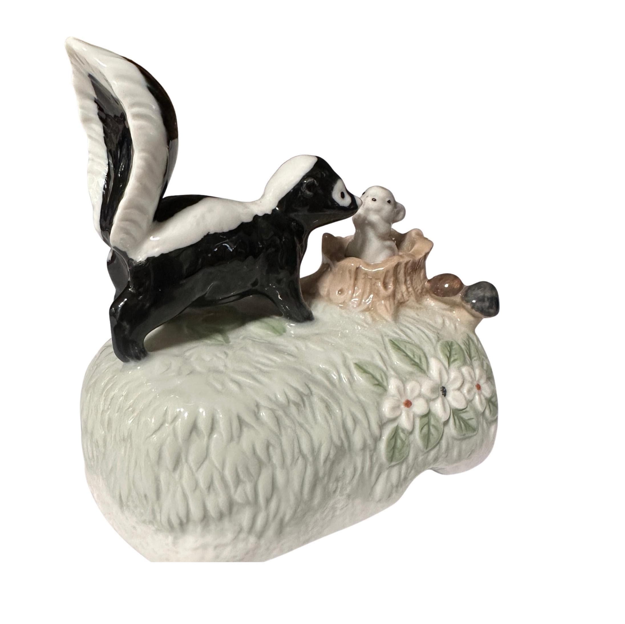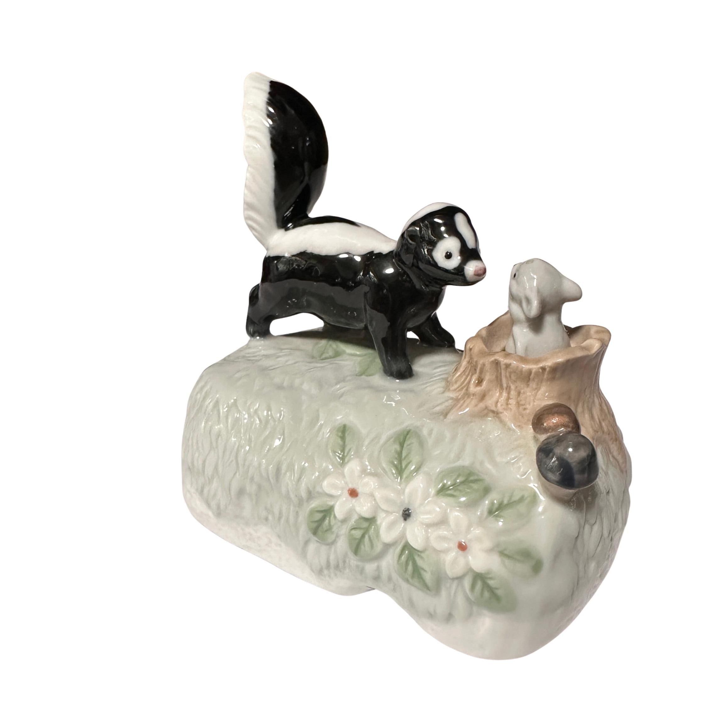 Otagiri Japan Ceramic Music Box Skunk and Mouse